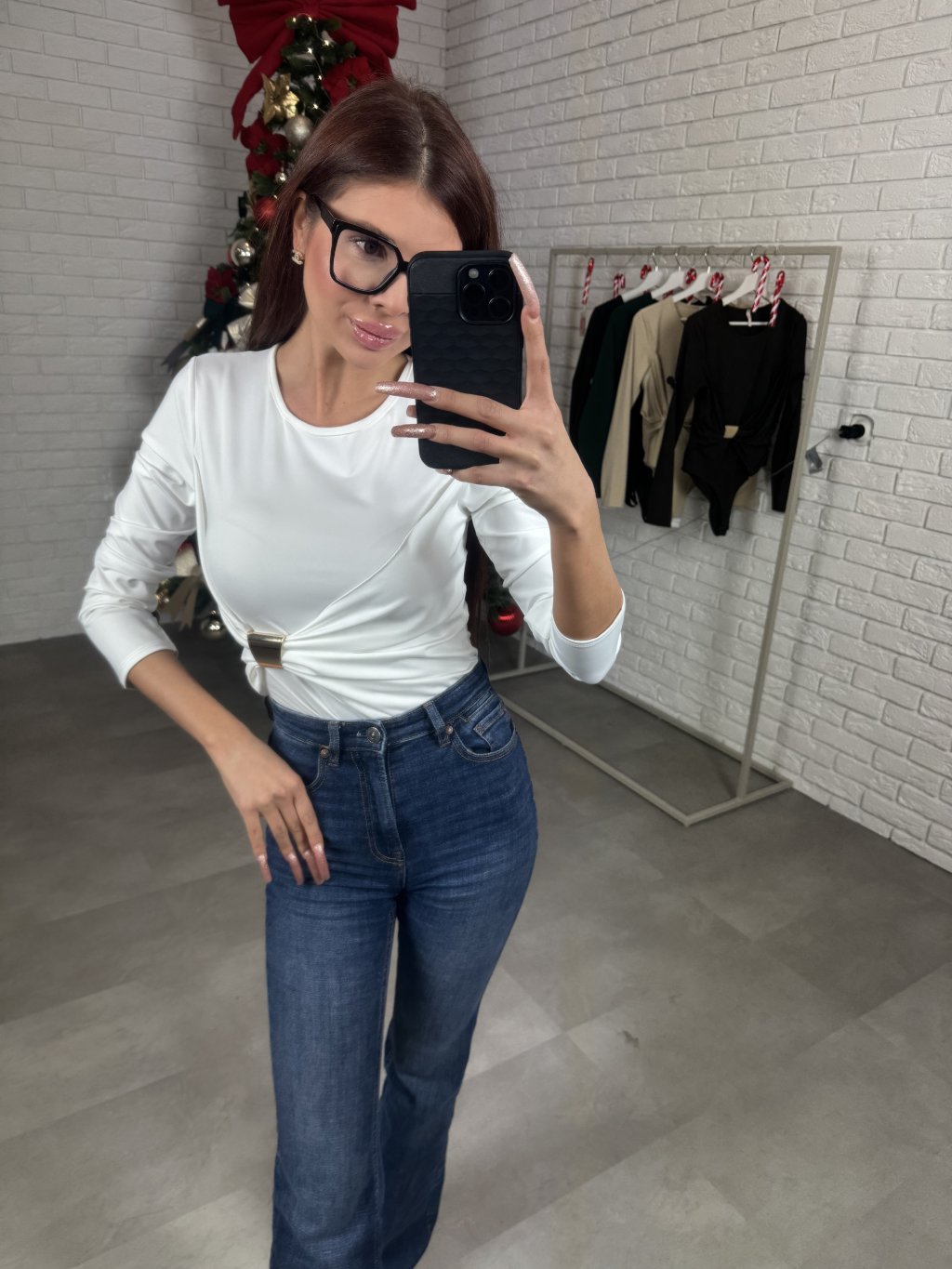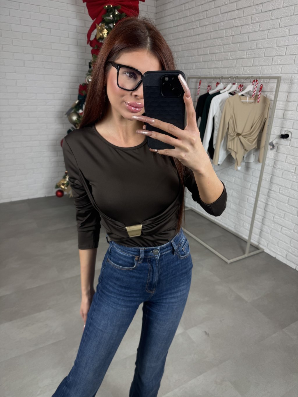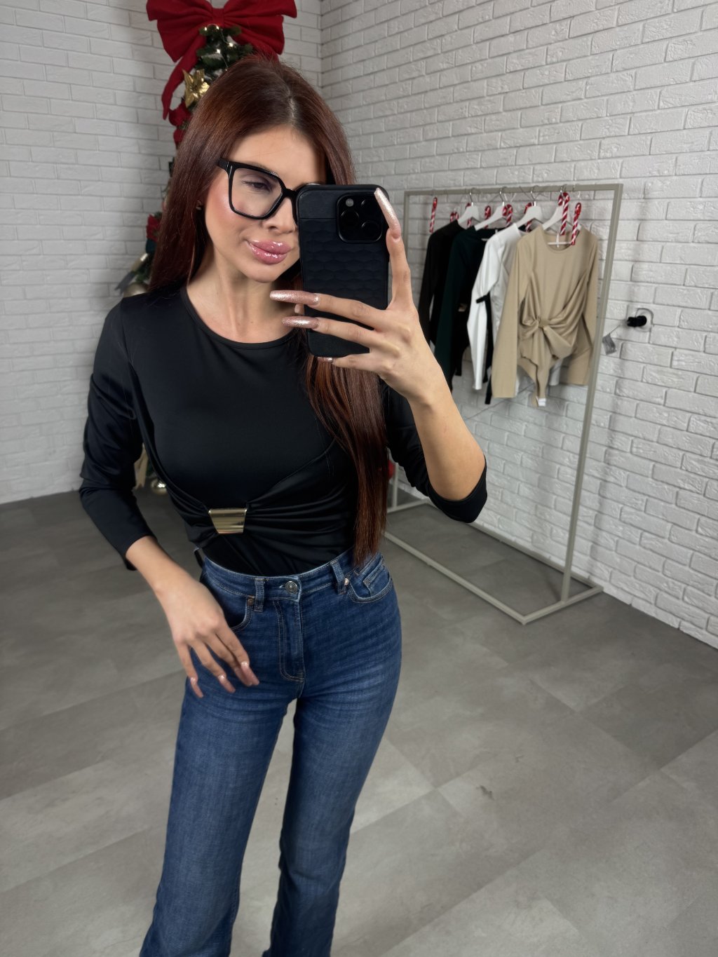 Body MEGI je univerzálny kúsok, ktorý vieš skombinovať do elegantného ale aj bežného štýlu. V páse má riasenie pripomínajúce mašličku, so zlatou aplikáciou. Je vyrobený z príjemného a elastického materiálu. Body ma na spodku zapínanie na háčiky. Sadne na konfekčnú veľkosť od XS po M, po výšku 175 cm.