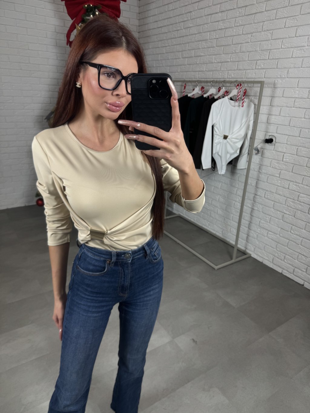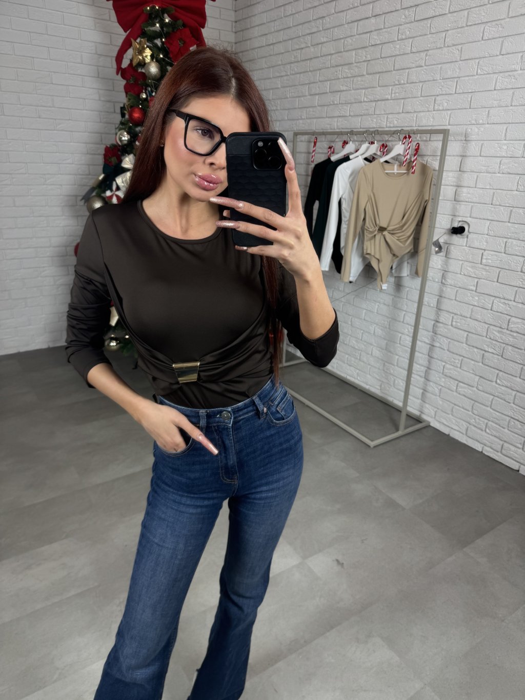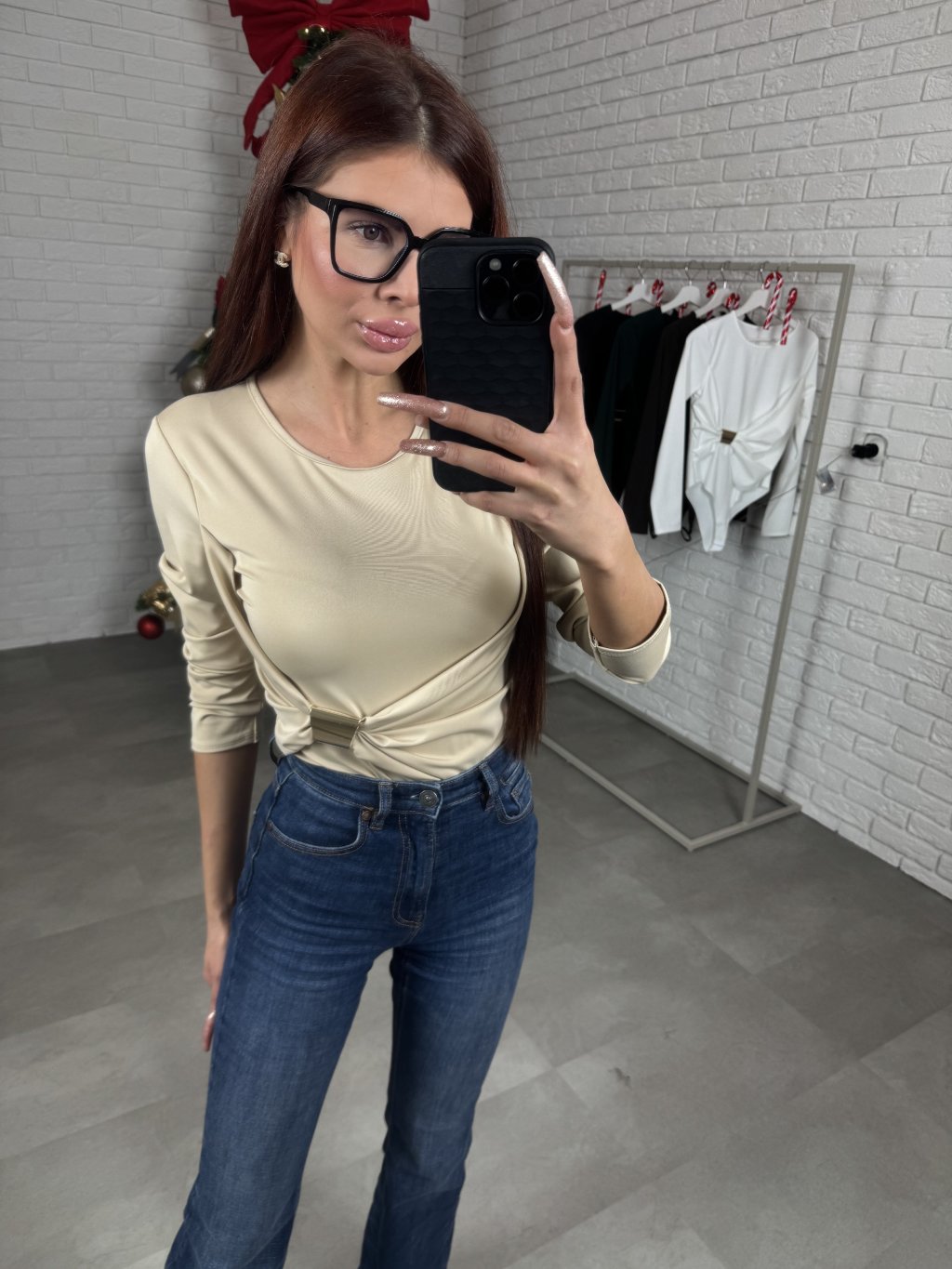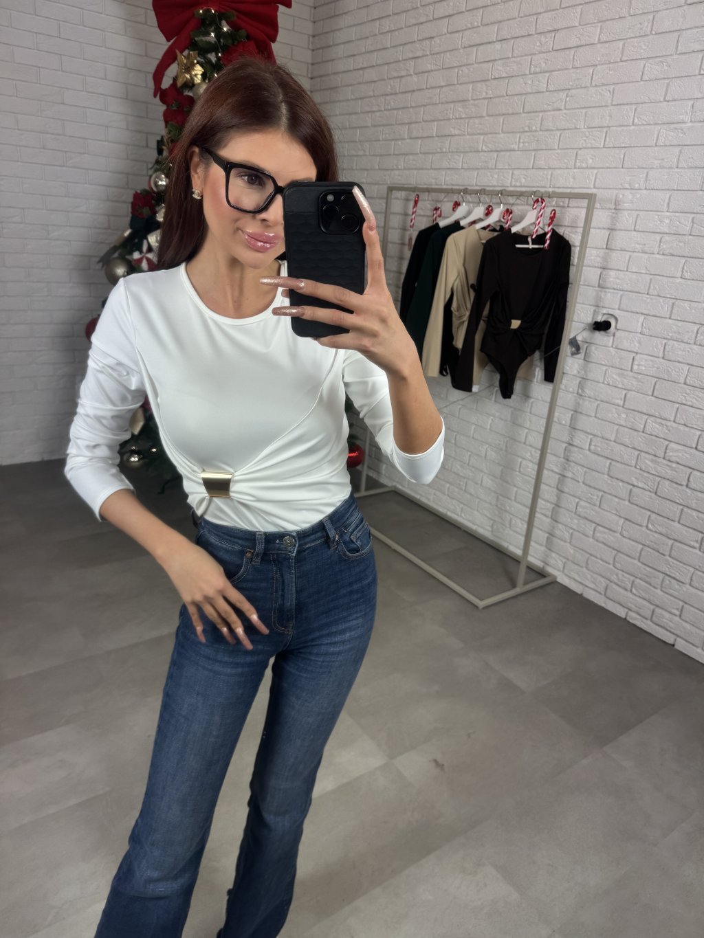 Body MEGI je univerzálny kúsok, ktorý vieš skombinovať do elegantného ale aj bežného štýlu. V páse má riasenie pripomínajúce mašličku, so zlatou aplikáciou. Je vyrobený z príjemného a elastického materiálu. Body ma na spodku zapínanie na háčiky. Sadne na konfekčnú veľkosť od XS po M, po výšku 175 cm.