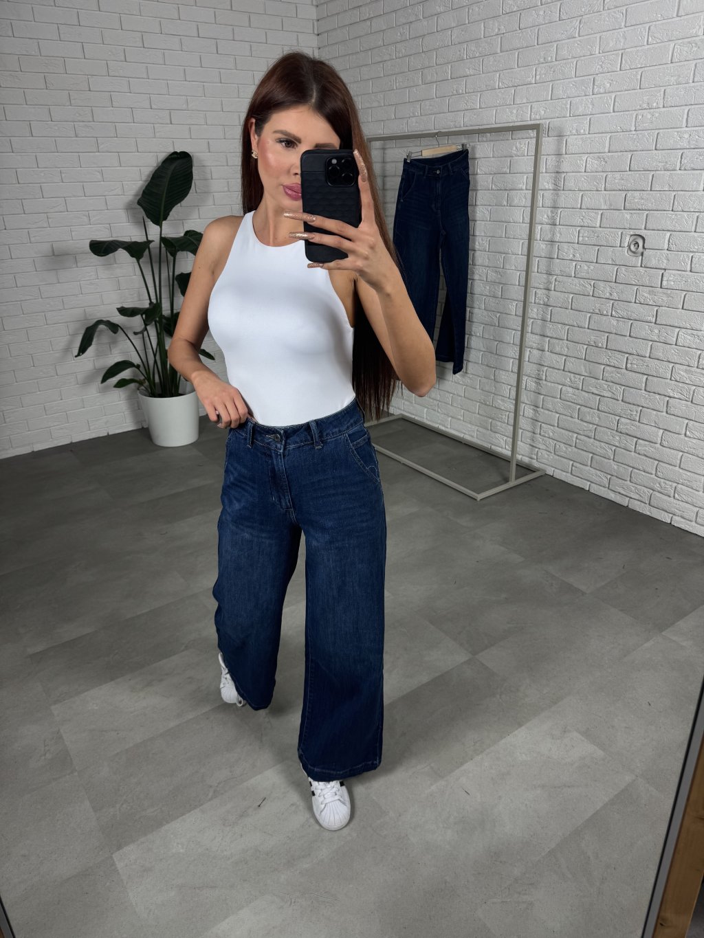Jeansy PAMAL, ktoré sú rozšíreného strihu, sadnú na každú postavu po 180 cm, majú vysoký pás, dole sú rozšírené a hore zase obtiahnuté, dokonalo sedia na zadku, jemne vyšúchaná rifľovina.