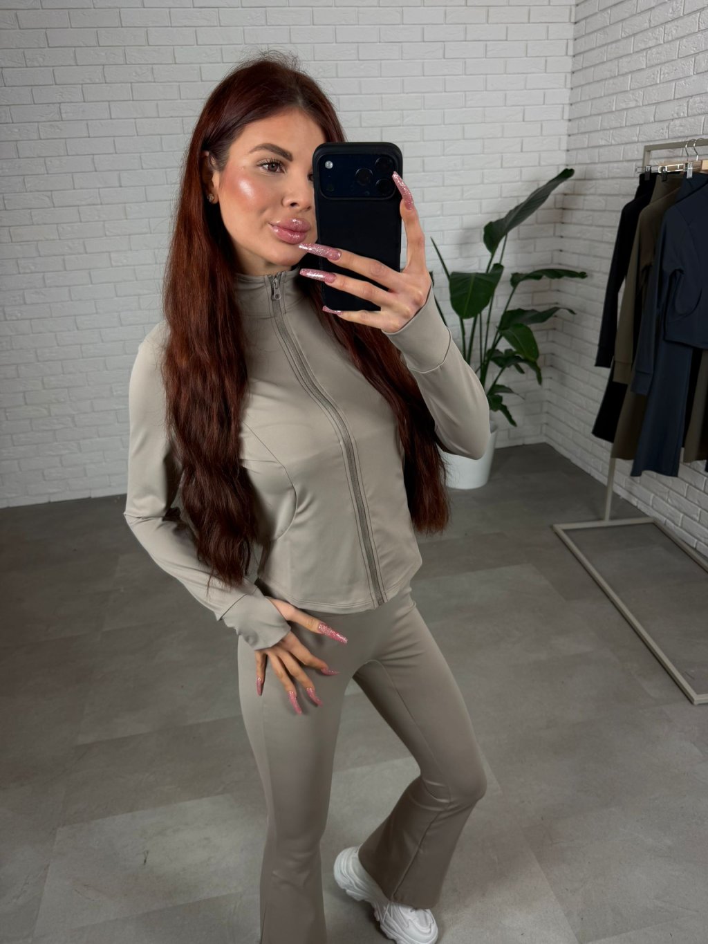 Jógový set NAMBIA je výnimočný kombináciou pohodlia, funkčnosti a elegantného dizajnu. Vrchný diel má praktické rukávy s otvorom na palec, ktoré jemne zakrývajú časť dlane a zabraňujú vyhŕňaniu počas pohybu. Po bokoch sa nachádzajú nenápadné vrecká na drobnosti a set je vhodný pre postavy do výšky približne 175 cm. Legíny majú elastický pás, ktorý sa krásne prispôsobí postave a pohodlne sadne aj na tehotenské bruško. Spodná časť nohavíc je zakončená jemne rozšíreným strihom, ktorý pôsobí žensky a opticky predlžuje nohy. Set je dostupný vo veľkostiach S/M a L/XL a je ideálny na jogu, relax aj bežné nosenie.