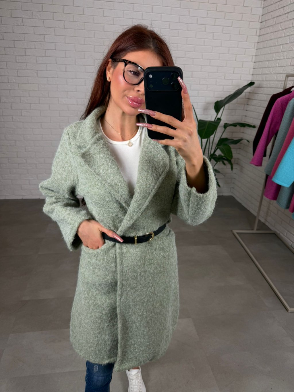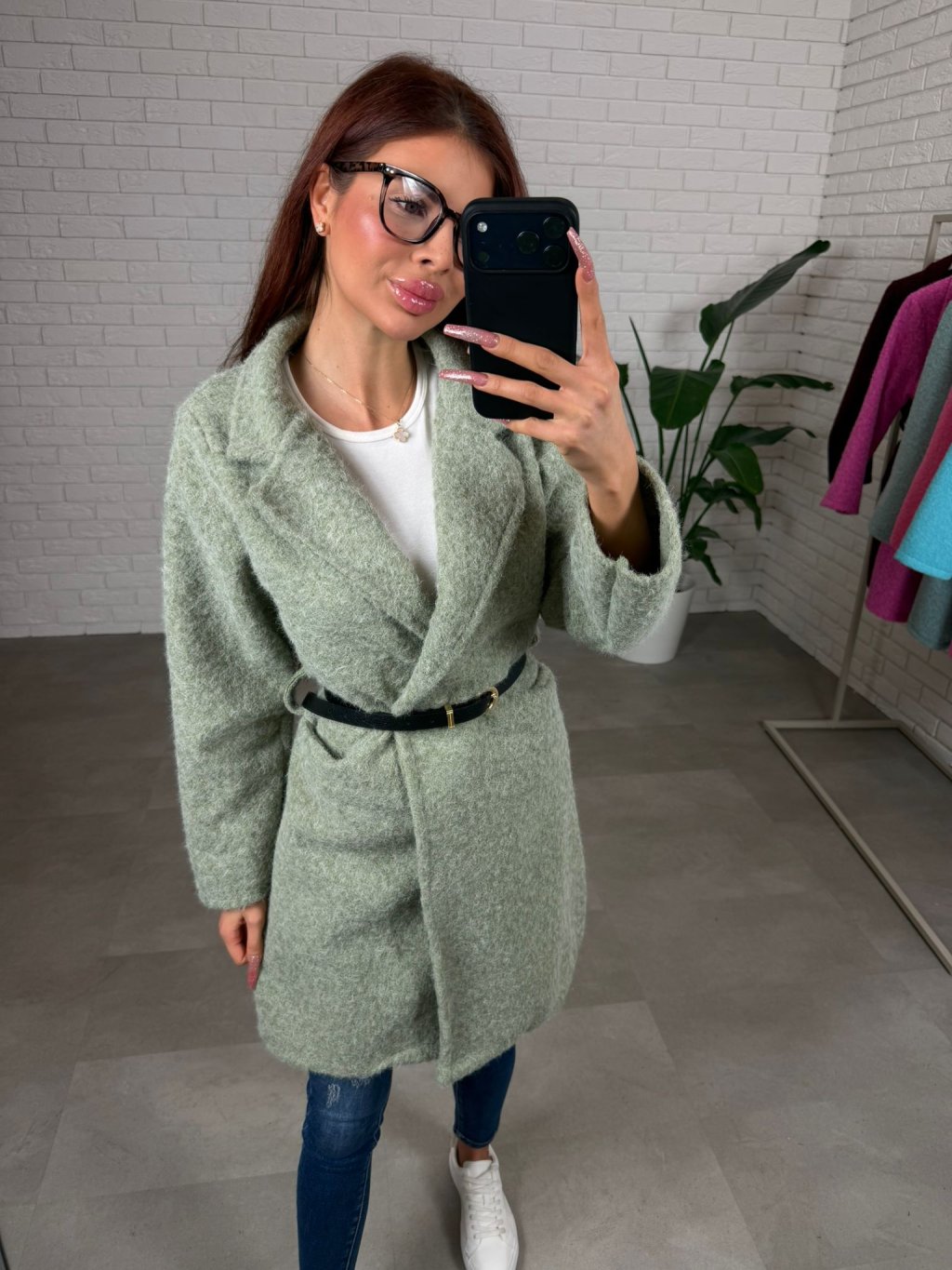 Zavinovací kabát NOMER je vyrobený z teplučkého mäkkučkého koberčekového materiálu, po bokoch má hlboké vrecká. Kabátik je ideálny kúsok na bežné nosenie. Okrem gombíka na zapínanie má v páse aj opasok. Sadne na konfekčné veľkosti od S po XL.