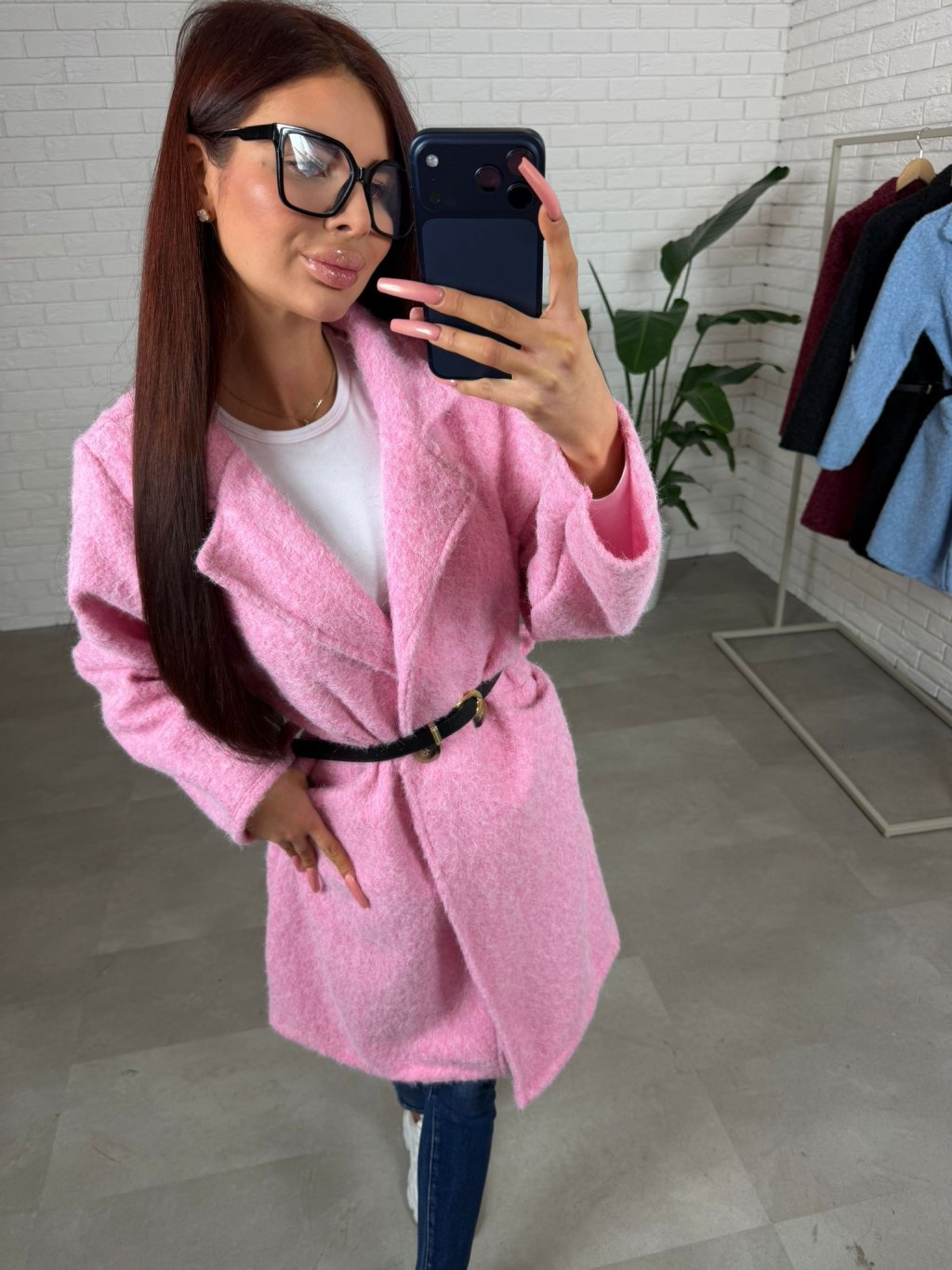 Zavinovací kabát NOMER je vyrobený z teplučkého mäkkučkého koberčekového materiálu, po bokoch má hlboké vrecká. Kabátik je ideálny kúsok na bežné nosenie. Okrem gombíka na zapínanie má v páse aj opasok. Sadne na konfekčné veľkosti od S po XL.