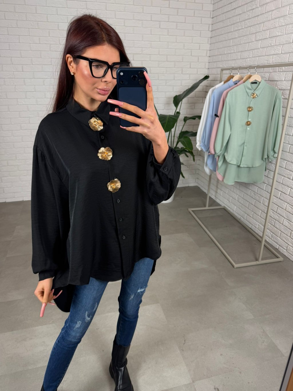 Košeľa ADAM predĺžená s ozdobnými kvietkami, ktoré sa dajú aj odopnúť. Košeľa je v prémiovej kvalite. Vo voľnom rozšírenom strihu. Zadná časť predĺžená, asymetrický strih. Vhodné aj na vyššie kočky. Veľmi nadčasový kúsok, ktorý nesmie chýbať v tvojom šatníku. Sadne na konfekčnú veľkosť od XS po XL.