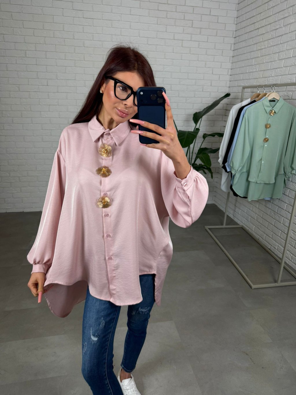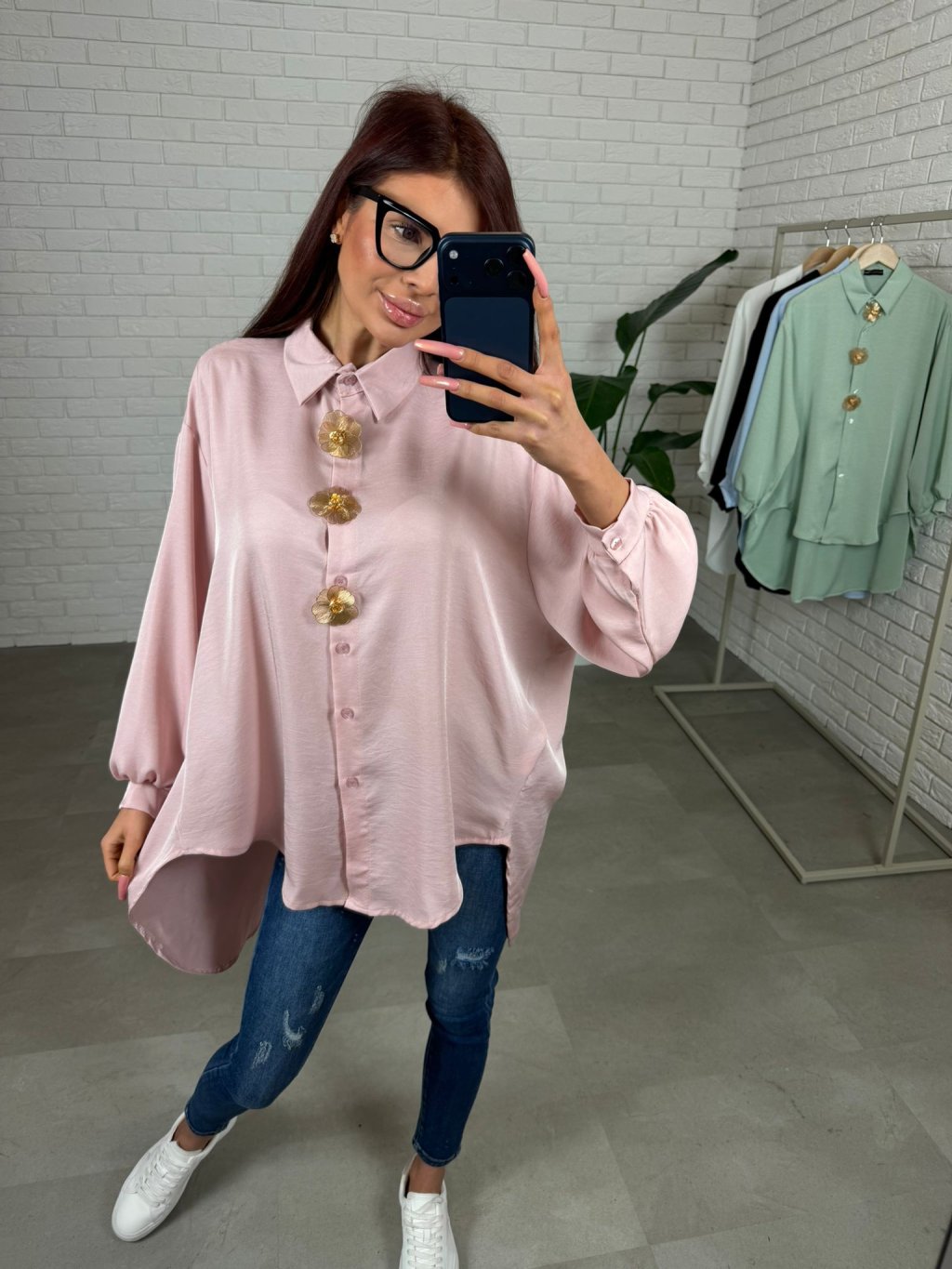Košeľa ADAM predĺžená s ozdobnými kvietkami, ktoré sa dajú aj odopnúť. Košeľa je v prémiovej kvalite. Vo voľnom rozšírenom strihu. Zadná časť predĺžená, asymetrický strih. Vhodné aj na vyššie kočky. Veľmi nadčasový kúsok, ktorý nesmie chýbať v tvojom šatníku. Sadne na konfekčnú veľkosť od XS po XL.