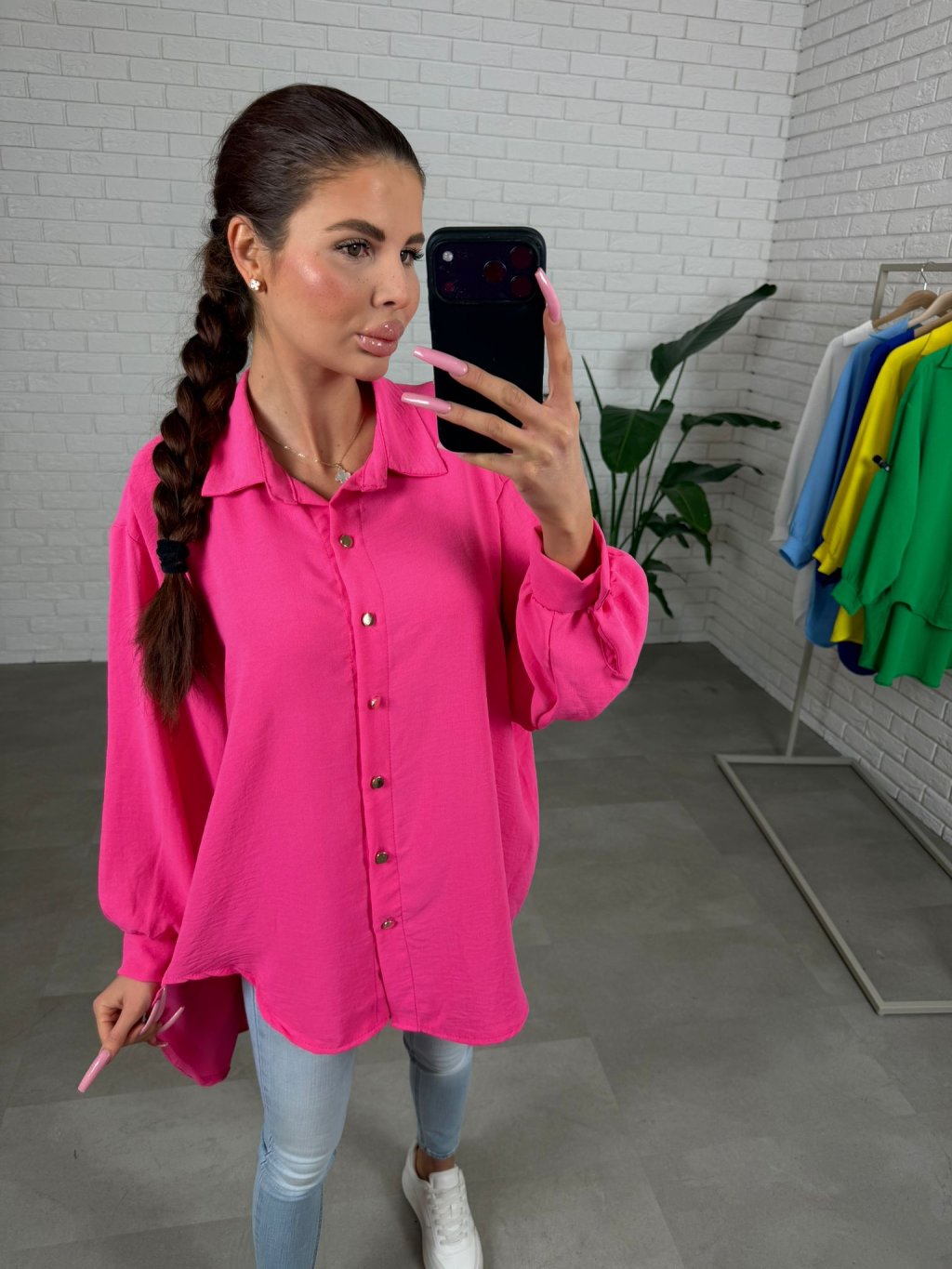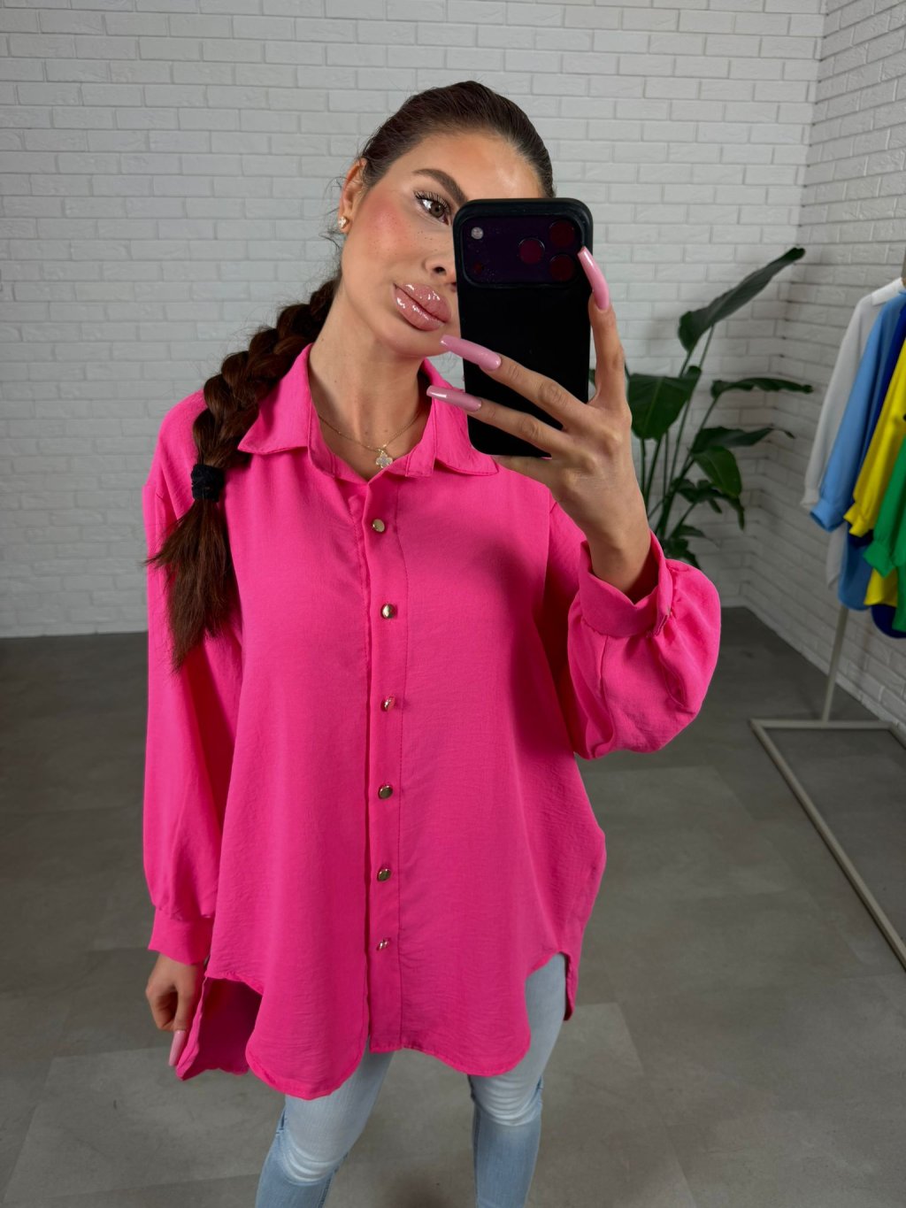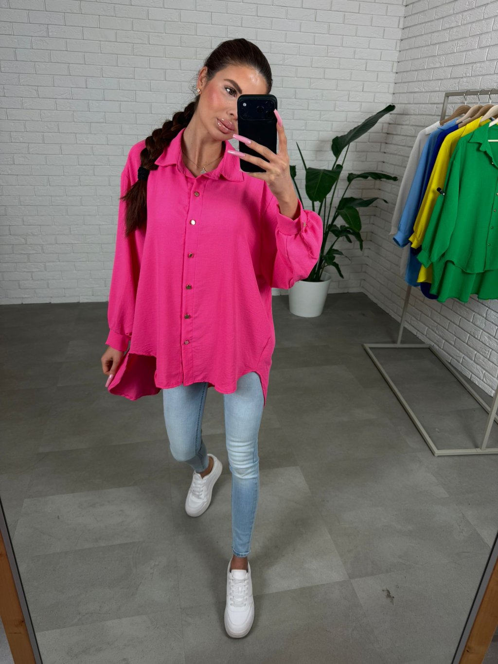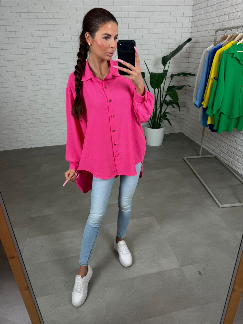 Košeľa AIVA je rýchla záchrana na dni, keď chceš vyzerať upravene bez námahy. Má voľný, padavý strih a výrazné farby, ktoré na postave krásne vyniknú, najmä v konfekcii L a XL. Materiál sa vôbec nekrčí, takže aj po celom dni vyzerá stále sviežo. Rukávy sú voľnejšie, na spodku zúžené s gombíkom, ktorý sa prispôsobí každému obvodu ruky, a zlaté gombíky dodajú košeli elegantný detail. Vpredu je kratšia a vzadu predĺžená, preto sa skvelo nosí aj čiastočne zastrčená. Veľkostne sedí od S po XL.