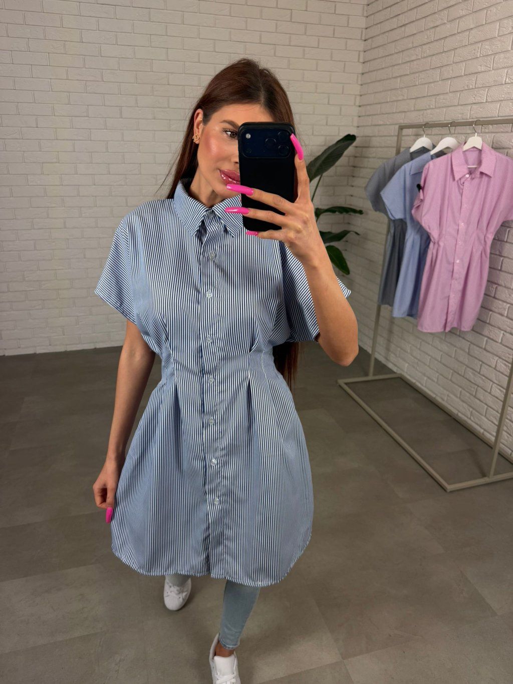 Krátky rukáv je širší a pohodlný, prispôsobí sa každej ručičke bez pocitu obmedzenia. Ak máš výšku do približne 170 cm, môžeš košeľu pokojne nosiť aj ako šaty.