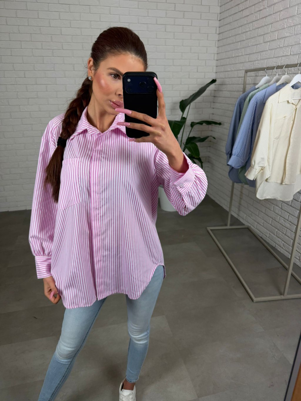 Asymetrický strih s kratším predkom a predĺženou zadnou časťou pôsobí moderne a zároveň je veľmi praktický, najmä v kombinácii s legínami alebo úzkymi džínsami. Rukávy sú voľnejšie, zakončené manžetou so zapínaním na gombík, takže si ich môžeš jednoducho vyhrnúť podľa potreby. Košeľový golier a náprsné vrecko dopĺňajú klasický vzhľad, ktorý sa ľahko kombinuje a vyzerá skvelo aj zastrčený do nohavíc. Veľkostne sadne na konfekčné veľkosti S až L.