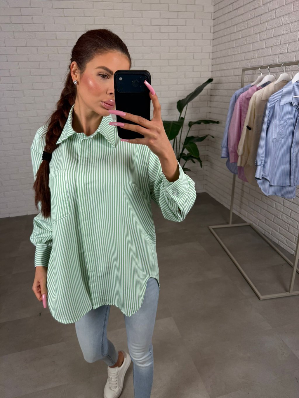 Zvislé pruhy opticky zoštíhľujú a predlžujú siluetu, vďaka čomu pôsobí outfit upravene a žensky bez námahy. Rukávy sú výrazne voľné a zakončené jemnou elastickou gumičkou, ktorá vytvára pekný objem a zároveň zabezpečí pohodlie pri nosení. Vďaka svojej dĺžke je košeľa ideálna nielen ku legínam alebo džínsom, ale môžeš ju nosiť aj samostatne ako ľahké letné šaty. Veľkostne sadne na konfekčné veľkosti M až XL.