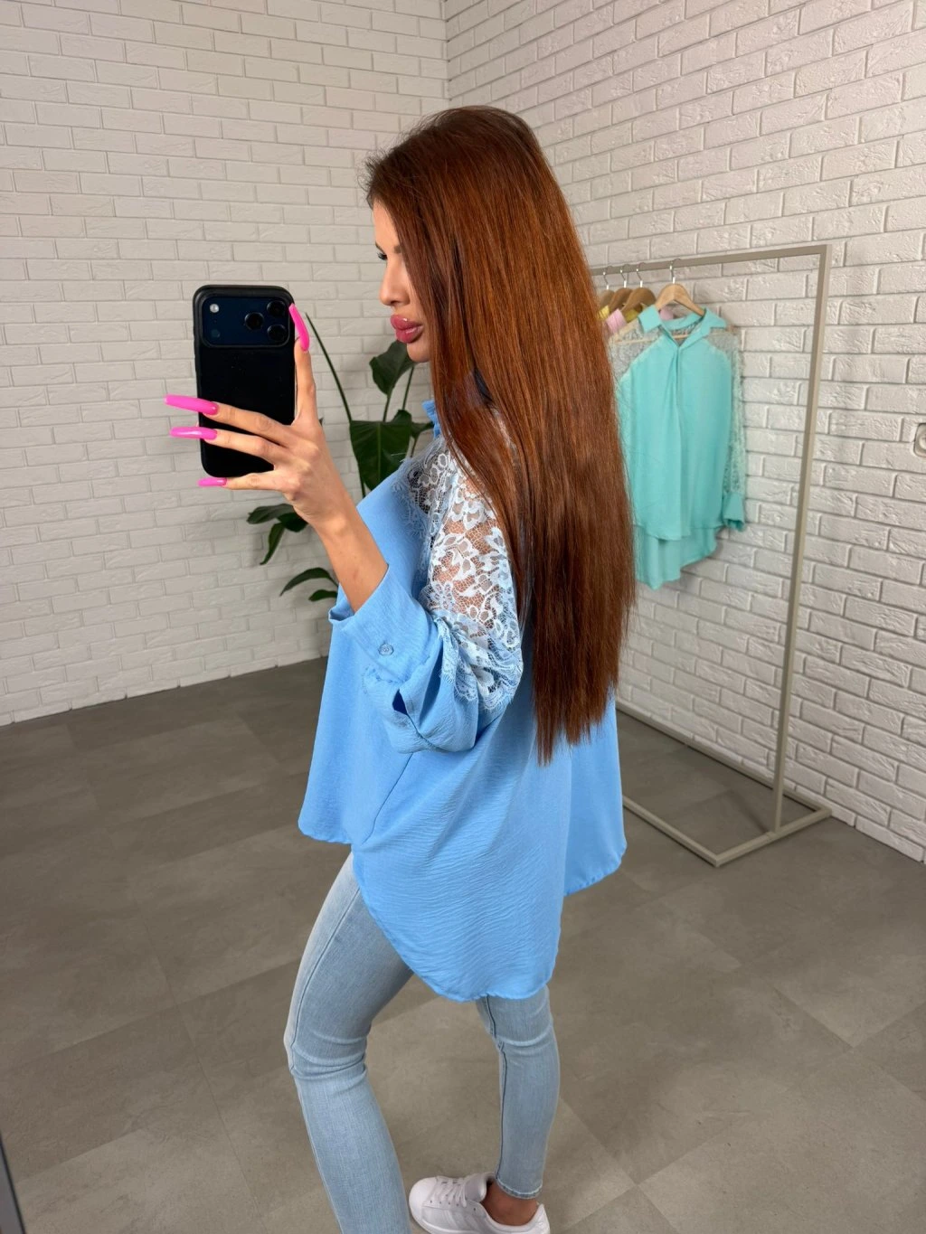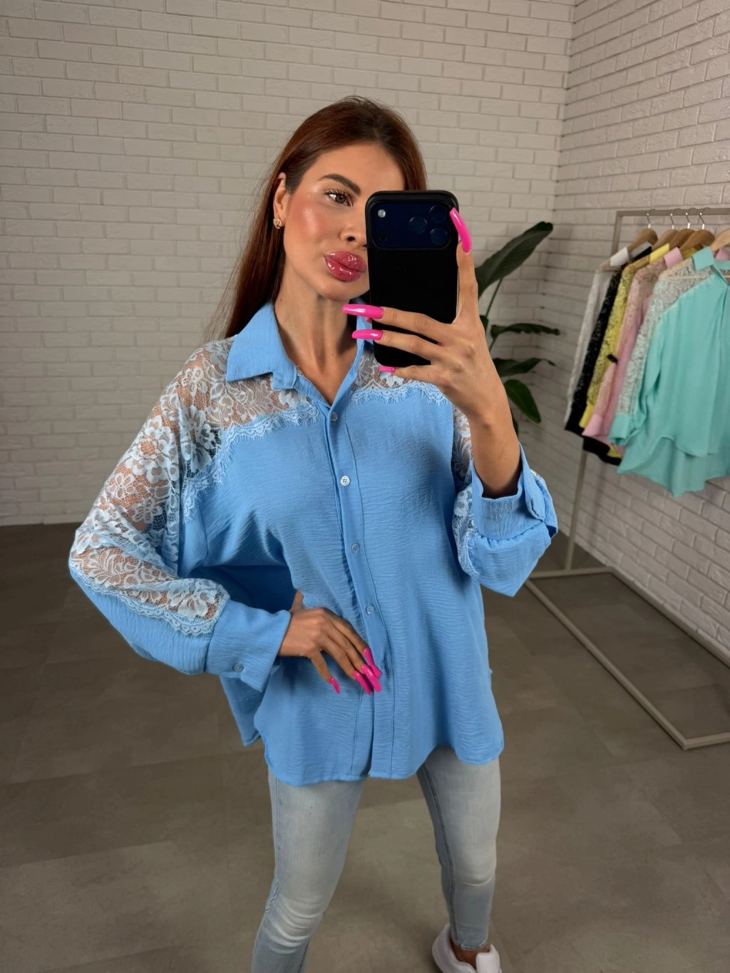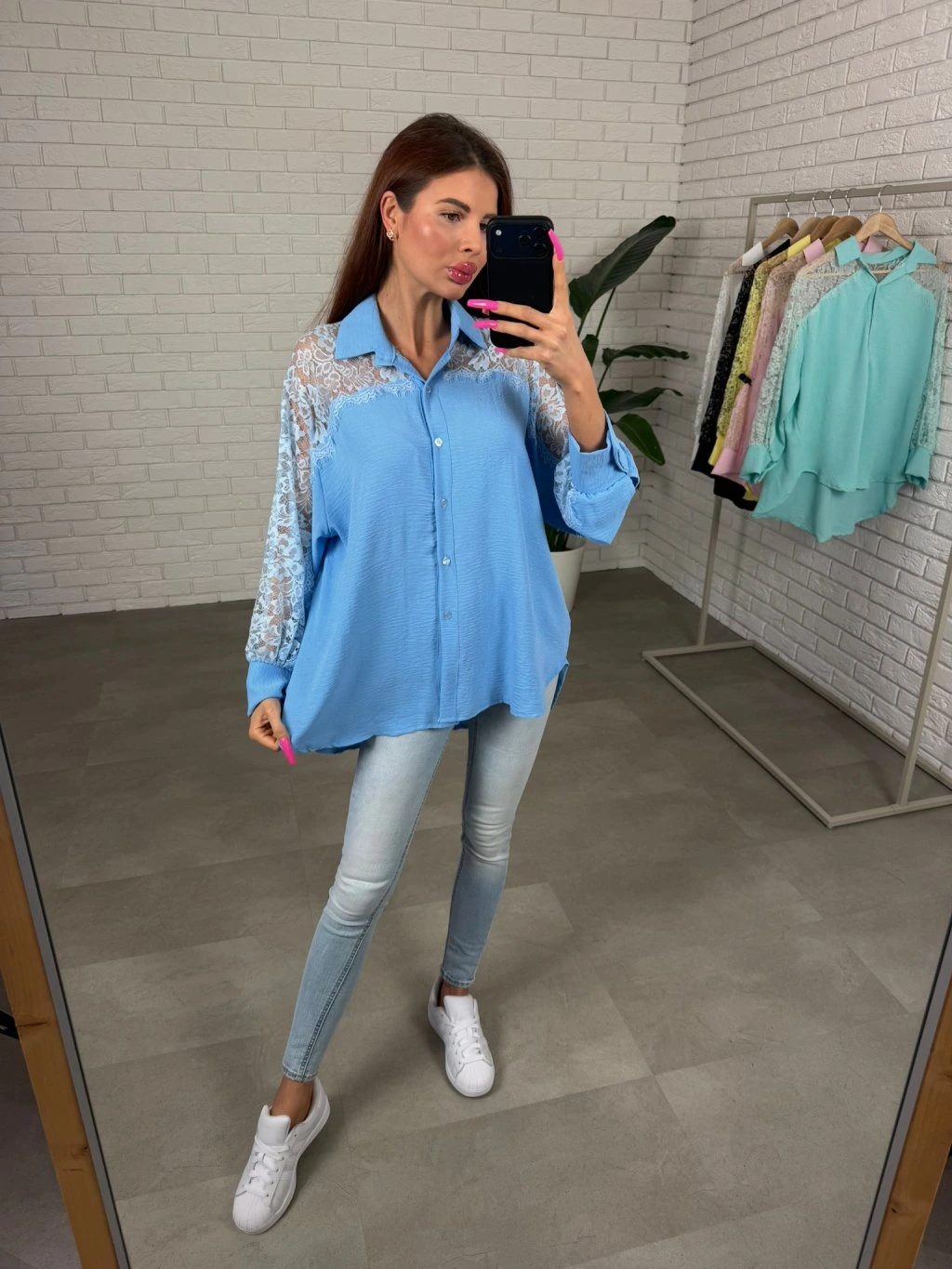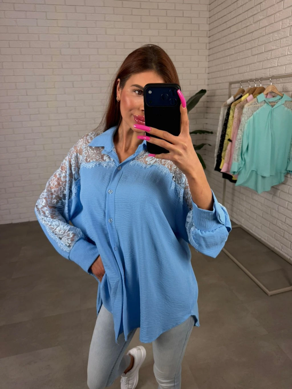 Košeľa LUAN je navrhnutá v uvoľnenom ležérnom strihu, ktorý pôsobí nenútene a príjemne sa nosí počas celého dňa. Voľne splýva na postave a vďaka predĺženej zadnej časti poskytuje viac krytia aj v oblasti zadku. Jemné polopriesvitné čipkované detaily na rukávoch dodávajú košeli ženský a elegantný nádych, vďaka čomu pôsobí zaujímavo aj v jednoduchých outfitoch. Rukávy sú veľmi voľné a pohodlné, takže sa prispôsobia každej ručičke bez pocitu obmedzenia. Košeľa sa skvelo kombinuje s rifľami, nohavicami aj legínami a vytvára upravený, no stále pohodlný look na každý deň. Sadne na postavy s konfekčnou veľkosťou od S po XL.