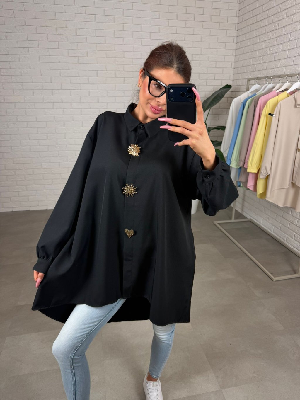 Košeľa OTILIA je presne ten typ kúsku, ktorý pôsobí luxusne už na prvý pohľad. Vzdušný nekrčivý materiál je príjemný na dotyk a postará sa o to, že budeš vyzerať upravene aj po celom dni. Predĺžený strih krásne splýva a v zadnej časti siaha až ku kolenám, takže vytvorí elegantnú líniu a zároveň jemne zakryje oblasť bruško aj boky. Voľné rukávy pôsobia veľmi žensky a lichotivo, sú pohodlné a opticky zjemnia paže. Ozdobné brošne na gombíkoch dodajú košeli výnimočný detail a keď budeš chcieť minimalistickejší look, jednoducho ich odopneš a nosíš košeľu aj bez nich. OTILIA sa dá nosiť ako predĺžená košeľa k rifliam, legínam, aj ako elegantná tunika na bežný deň či do práce. Veľkostne sedí pre kočky od M po XL.