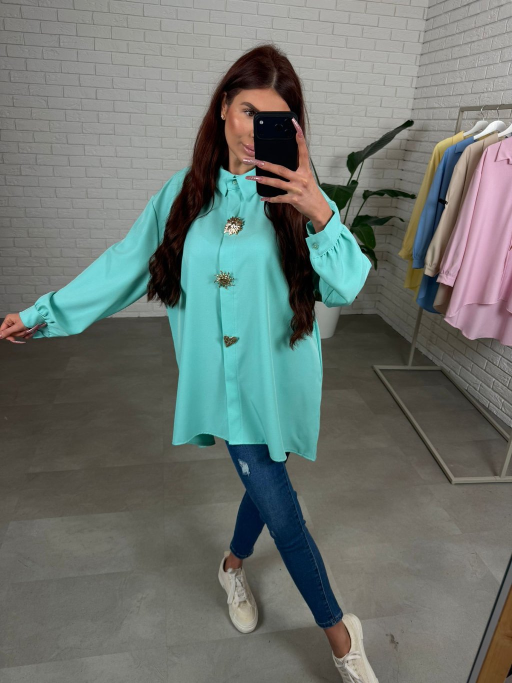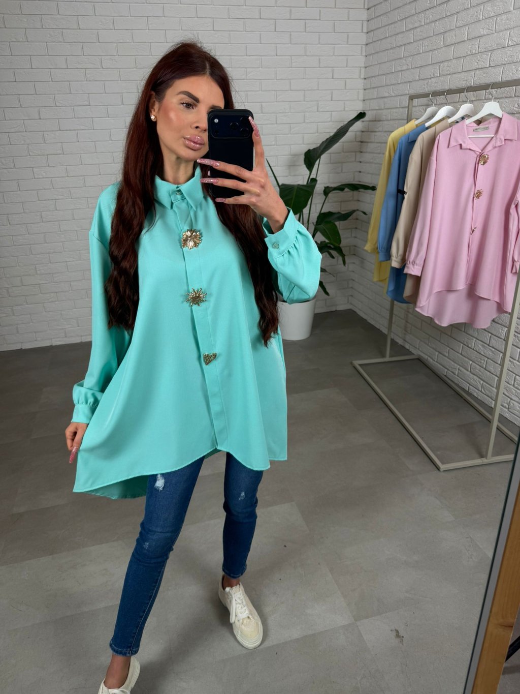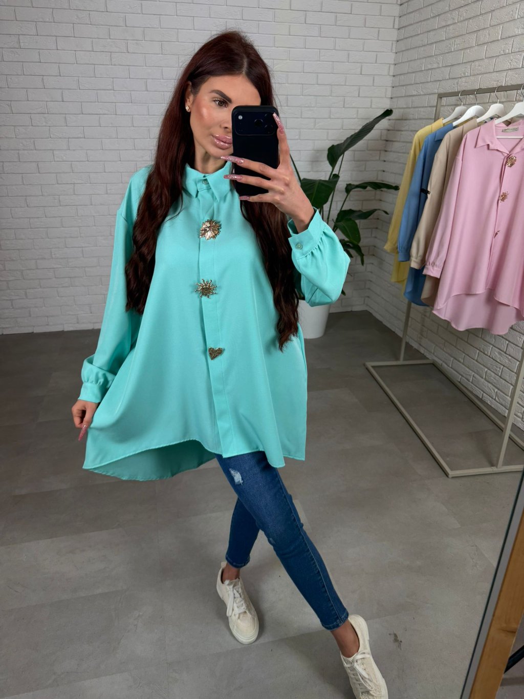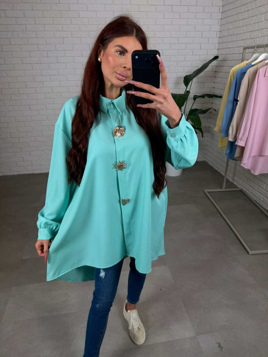 Košeľa OTILIA je ideálnou voľbou pre dámy vo veľkostiach M – XL. Vzdušný a nekrčivý materiál zabezpečuje pohodlie počas celého dňa, zatiaľ čo predĺžený strih krásne splýva a vzadu siaha až ku kolenám. Voľné rukávy pôsobia lichotivo a jemne maskujú paže. Ozdobné brošne na gombíkoch (možno ich odopnúť) dodávajú košeli elegantný nádych a umožňujú variabilné nosenie.