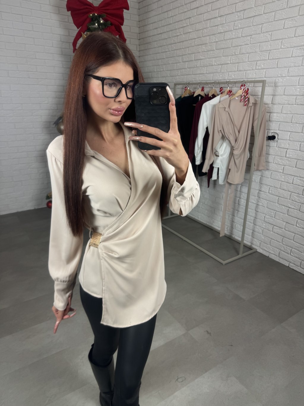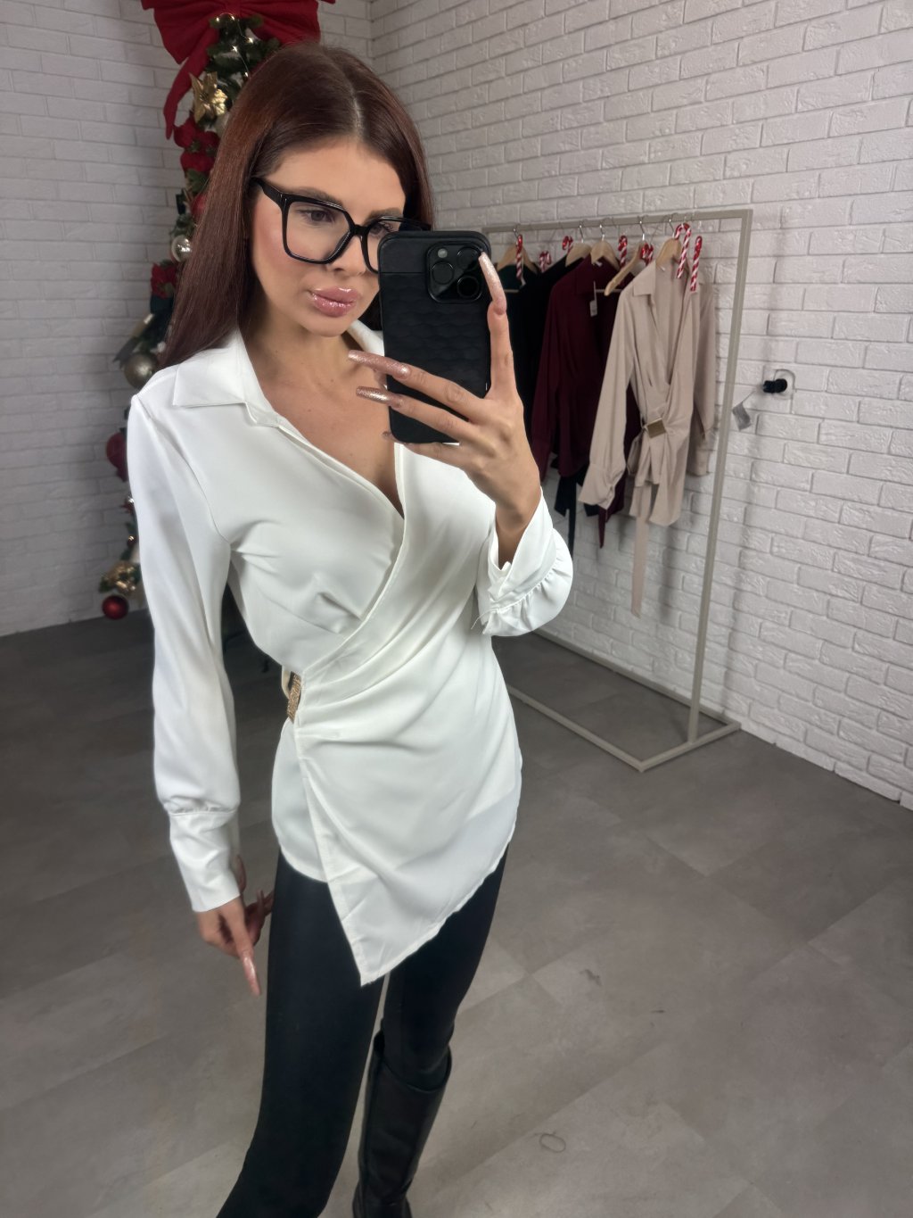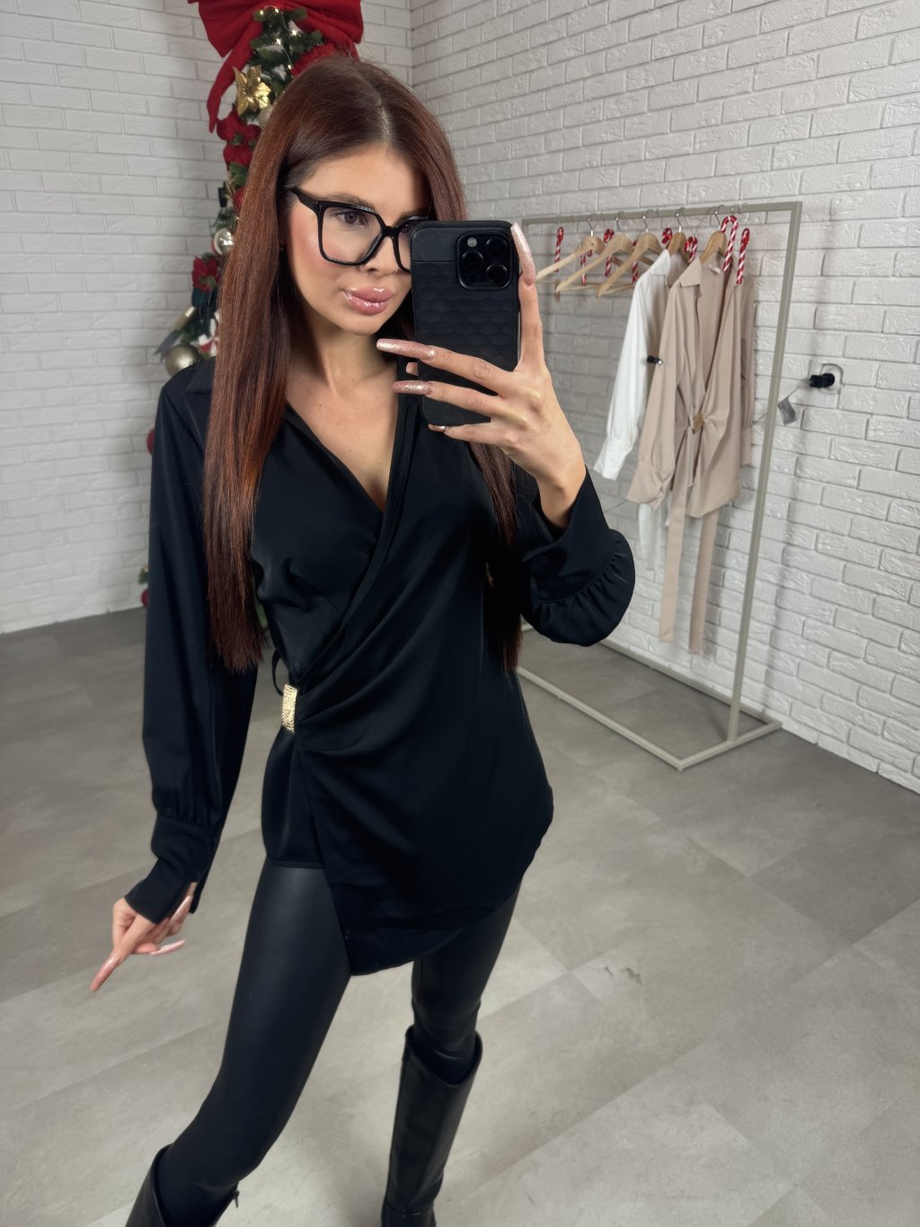 Zavinovacia košeľa TAYLOR má prekladaný strih, so zaväzovaním vzadu. Vďaka strihu sadne na každý obvod hrudníka. Pod dekoltom má riasenie, ozdobená je o zlatú aplikáciu, je vyrobená z hladkého a nadčasového materiálu. Jej asymetrický strih ozvláštni každý outfit. Sadne na konfekčné veľkosti XS až L.