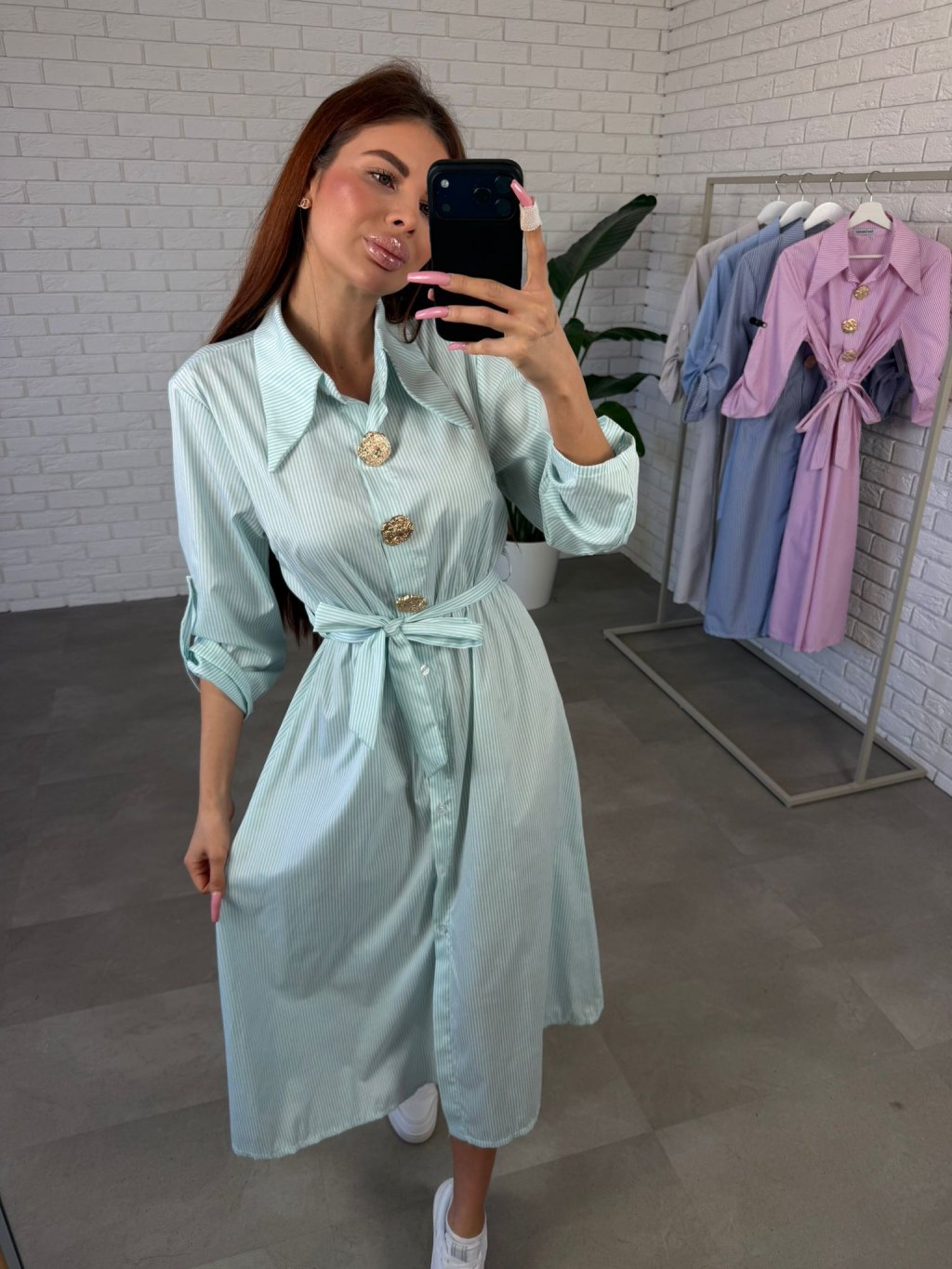 Šaty REMUS sú elegantný košeľový model v midi dĺžke, ktorý pôsobí veľmi žensky a zároveň je mimoriadne pohodlný na nosenie. Voľnejší strih prirodzene splýva na postave a proporčne zakrýva oblasť bokov, pásu, spodného bruška aj zadočku, vďaka čomu vytvára veľmi peknú siluetu. Materiál je ľahký a vzdušný, takže šaty sú ideálne na teplejšie dni. Vzor jemných zvislých prúžkov opticky zoštíhľuje postavu a dodáva modelu upravený, elegantný vzhľad. Vrchnú časť dopĺňa klasický golierik a výrazné zlaté ozdobné brošne, ktoré sú odnímateľné, takže si šaty môžeš prispôsobiť podľa vlastného štýlu. Dlhé rukávy si môžeš pohodlne vyhrnúť podľa potreby. Šaty REMUS sú vhodné najmä pre kočky od výšky približne 165 cm a vďaka voľnému strihu sú ideálne aj pre ženy po pôrode. Veľkostne sadnú na konfekčné veľkosti od S po L.