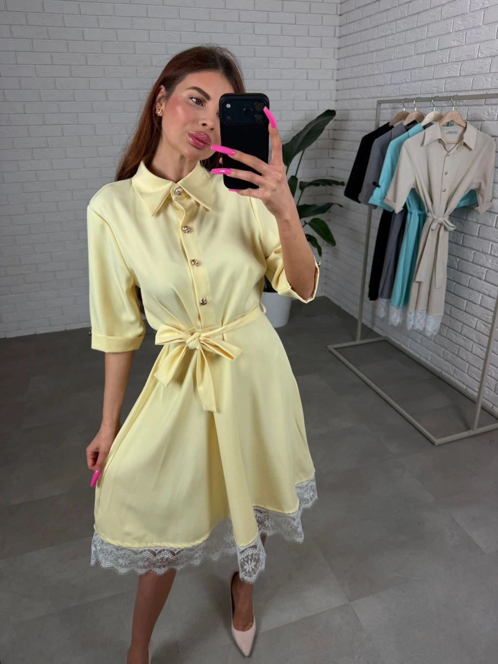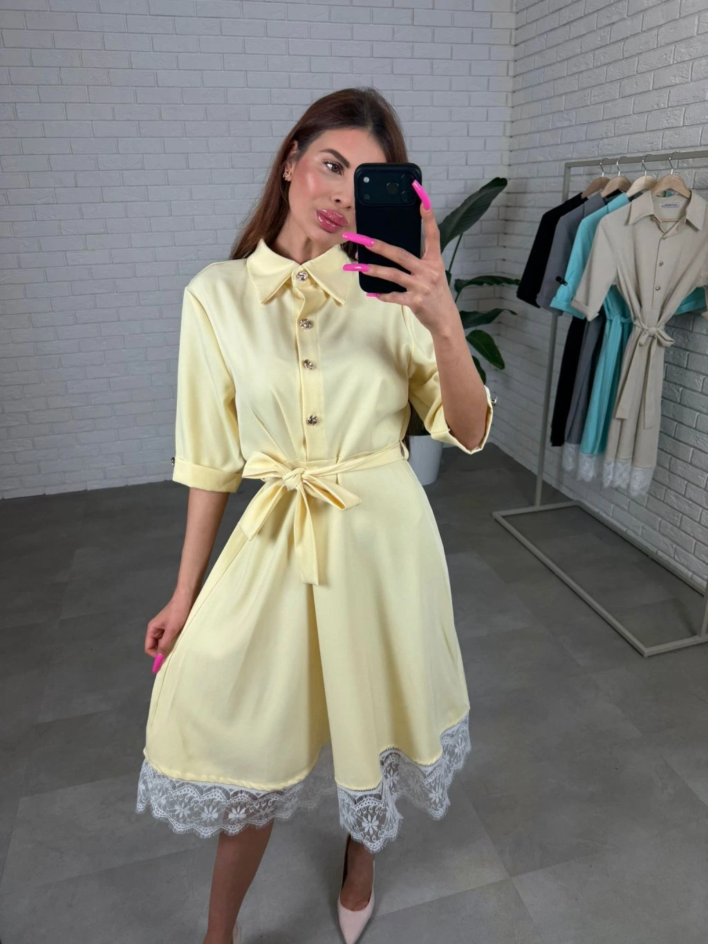 Košeľové šaty s čipkou ELMA žlté
