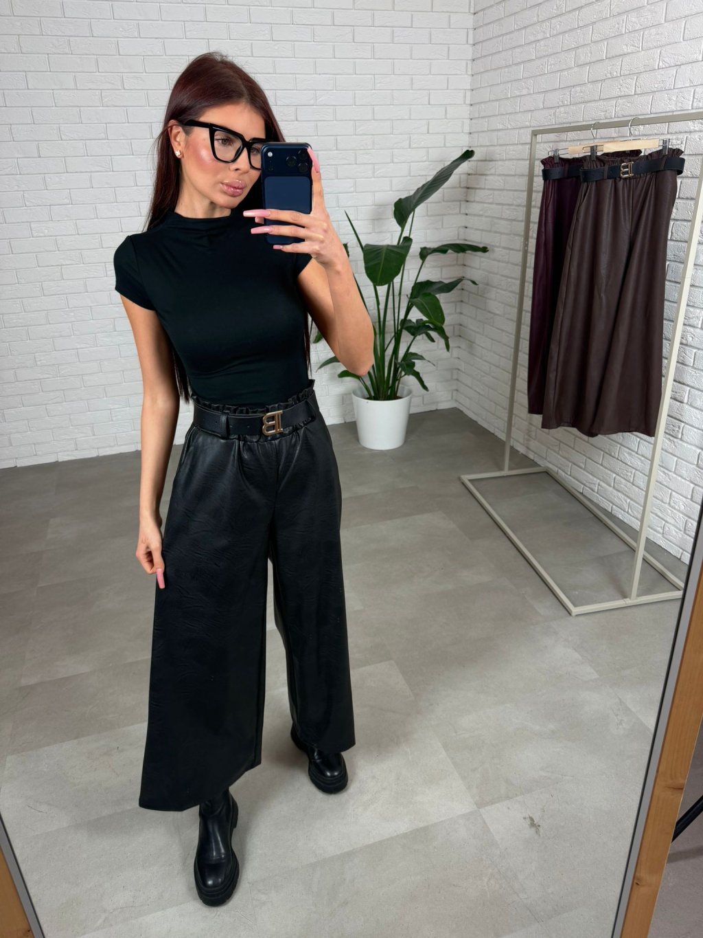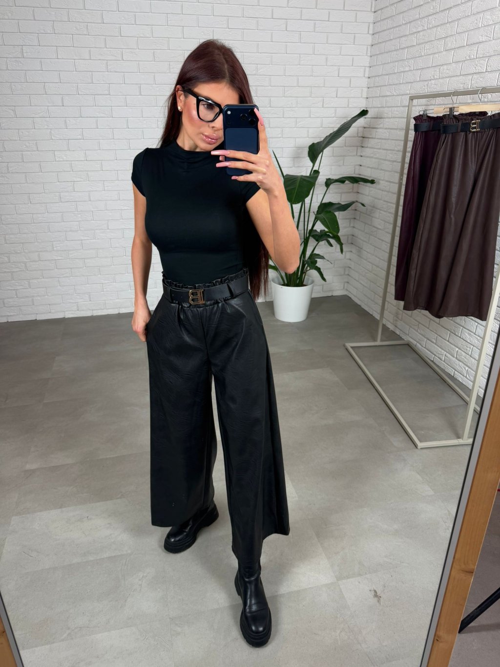 Dokonalé koženkové rozšírené nohavice AZUR ti nesmú chýbať v šatníku. Rozšírený strih a elastická guma v páse zaručí, že budú pôsobiť lichotivo na každej postave. Vnútro je mierne oteplené aby sa pohodlne nosili aj počas chladnejších dní. Matný koženkový materiál pôsobí elegantne a štýlovo. Opasok s detailom je súčasťou. Vhodné sú pre kočky do 170 cm. Veľkosť je UNI od S po XL.