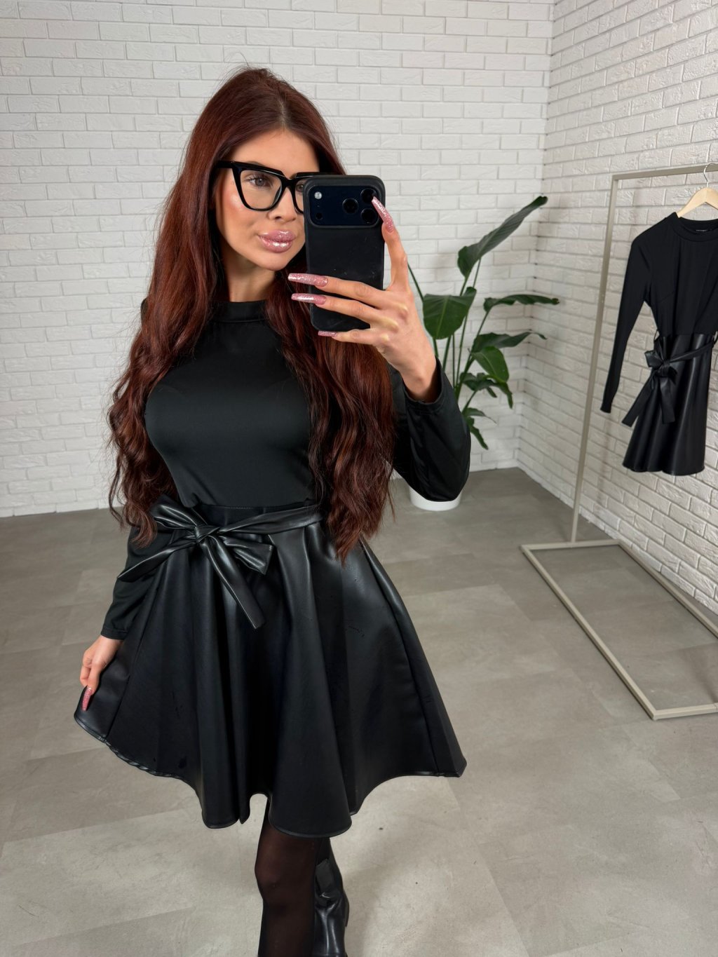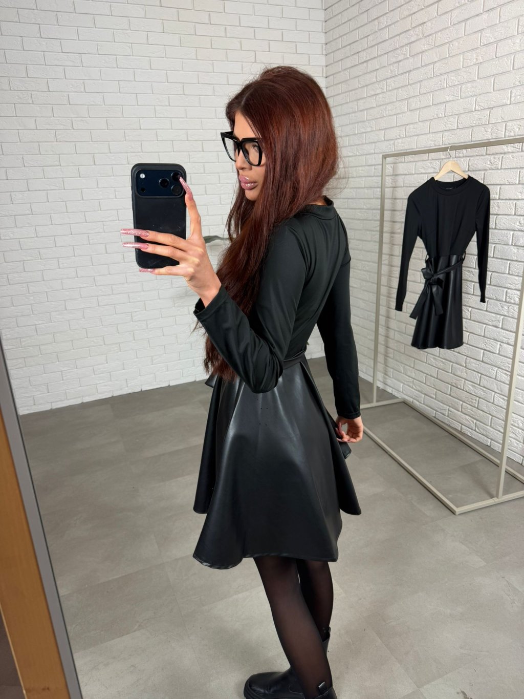 Koženkové šaty Darla s moderným dvojdielnym efektom a áčkovým strihom krásne zvýraznia postavu. Elastický hladký vršok sa pohodlne prispôsobí telu, zatiaľ čo koženková sukňa dodáva štýlový vzhľad. Mašľa na uviazanie v páse podčiarkuje ženskosť a umožňuje úpravu podľa potreby. Veľkosti odporúčame od XS až L a vhodné do 175 cm.