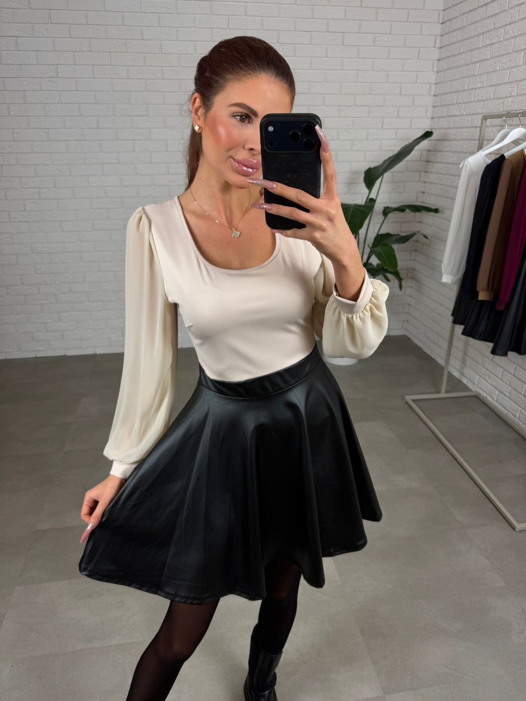 Šaty DIVAL spájajú ženskosť a moderný šmrnc v jednom kúsku, ktorý si oblečieš a okamžite pôsobíš upravene. Vrchná časť je ušitá z veľmi elastického materiálu, takže sa krásne prispôsobí postave, jemne obopne krivky a zároveň zostane pohodlná aj počas celého dňa. Dominantou sú ľahké polotransparentné rukávy s voľnejším strihom, ktoré pôsobia elegantne, vzdušne a bez problémov sadnú na každý obvod ruky, neťahajú, netlačia a krásne zjemnia celkový vzhľad. Spodná časť tvorí áčková sukňa, ktorá vytvára nádhernú siluetu, lichotí pásu a pri pohybe robí krásny nadýchaný efekt. Vďaka dvojdielnemu efektu pôsobia šaty moderne a štýlovo, no stále veľmi žensky. Veľkostne ich odporúčame pre konfekčné veľkosti od XS po L a výškovo sú ideálne pre kočky do 175 cm.
