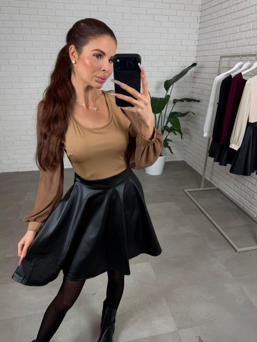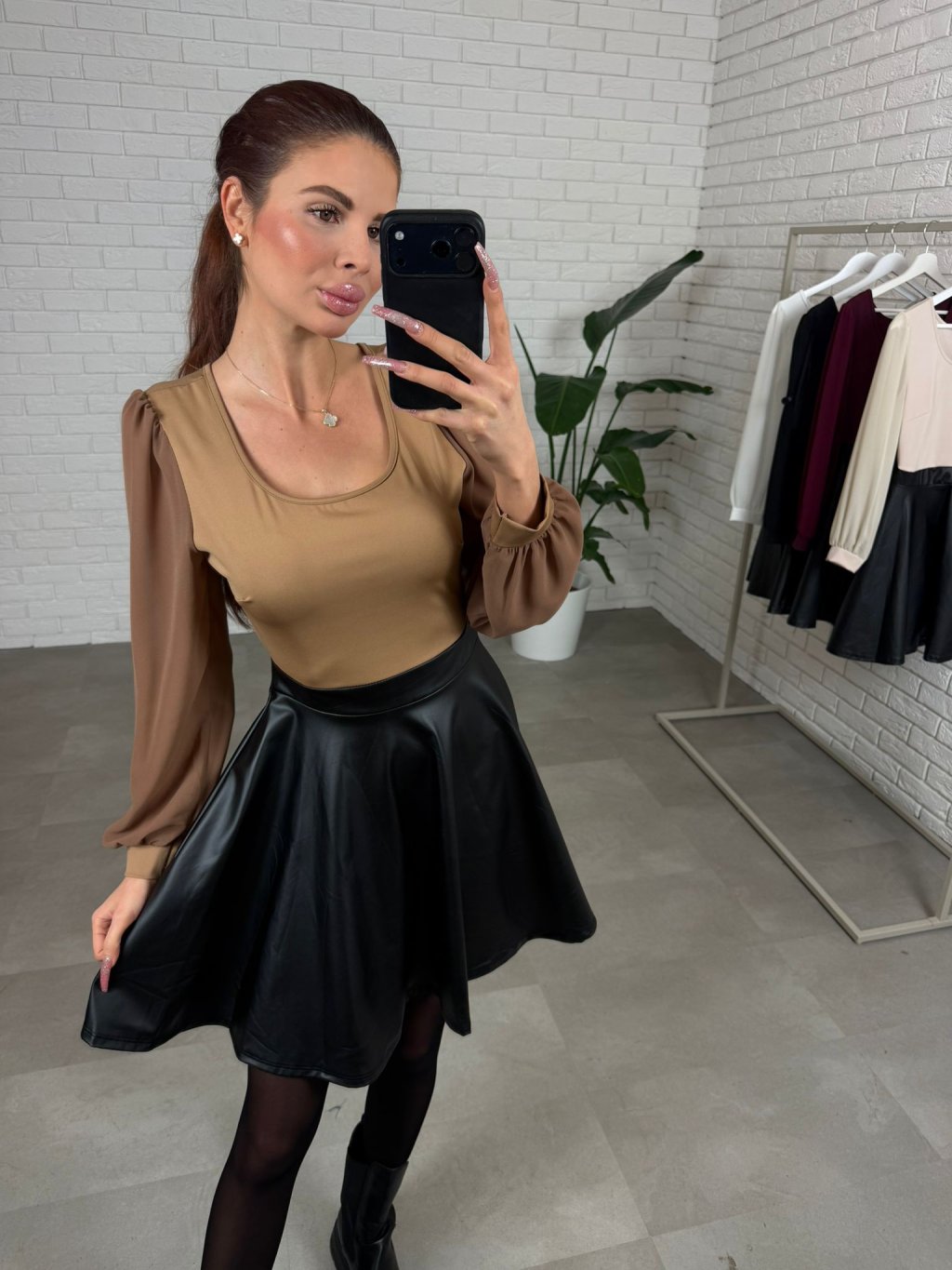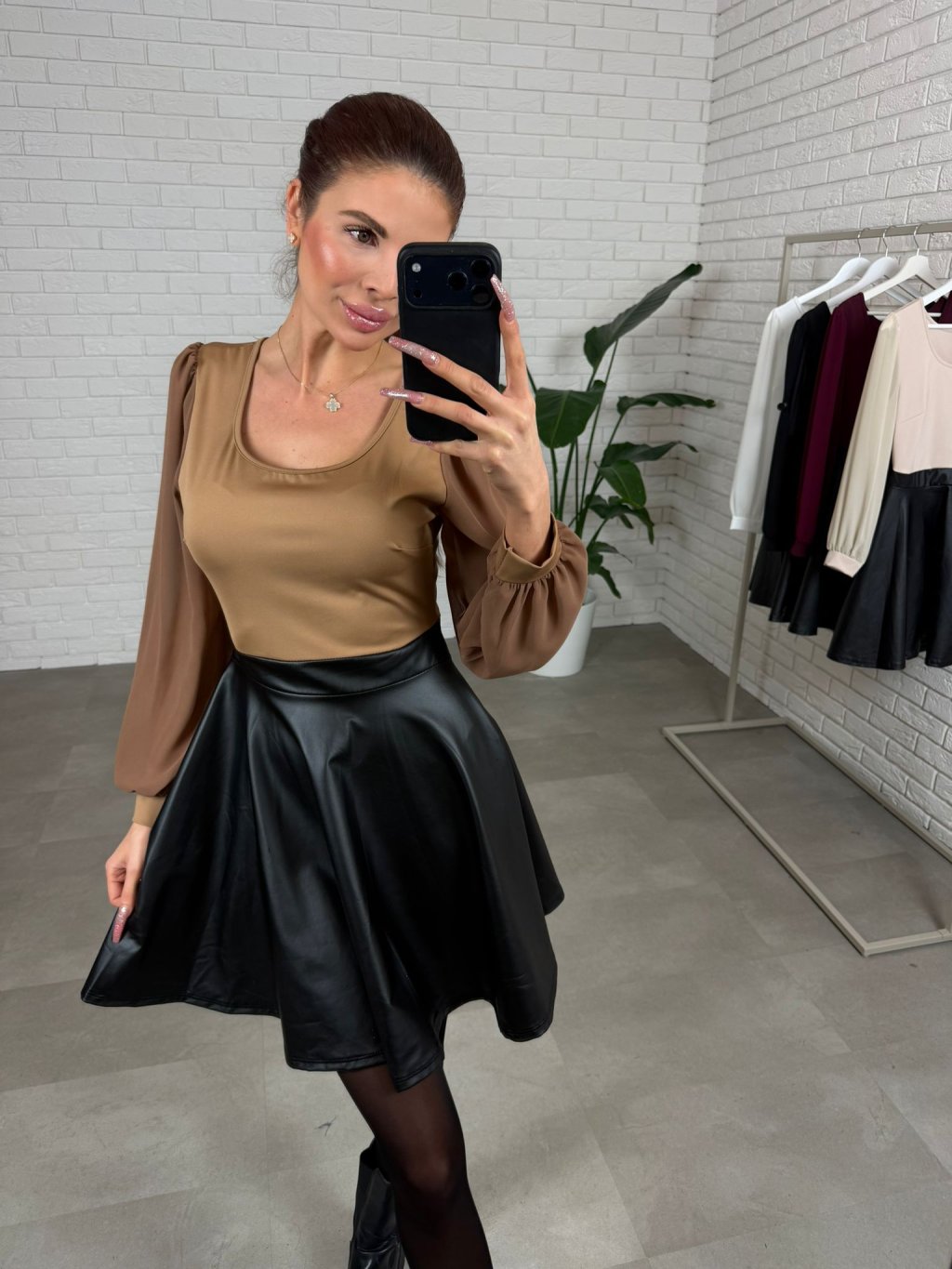 Koženkové šaty DIVAL hnedé