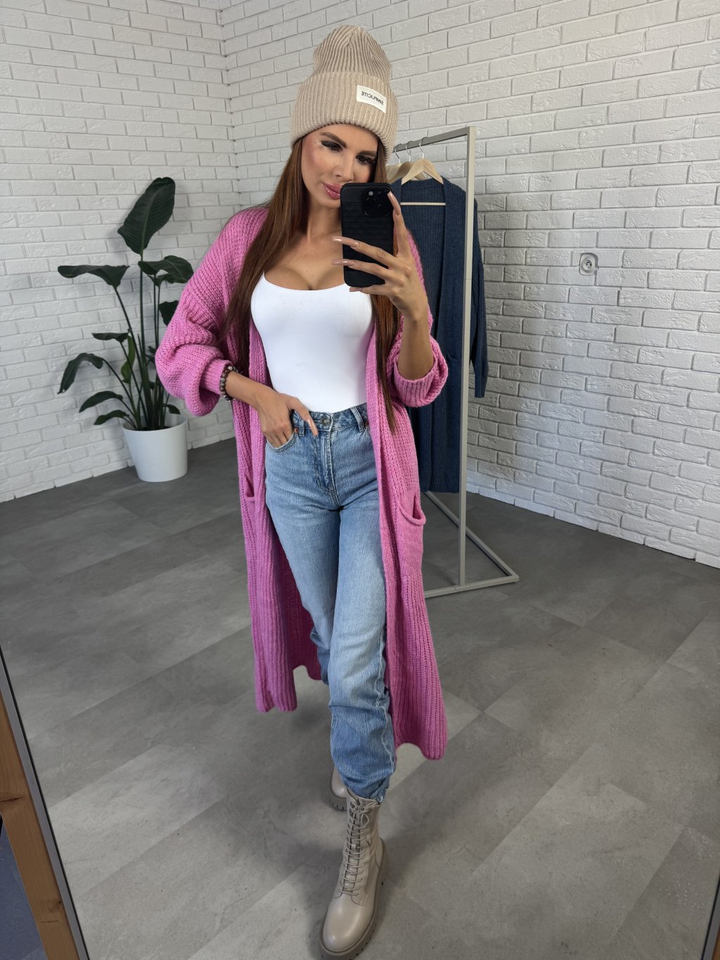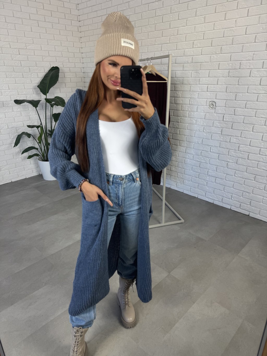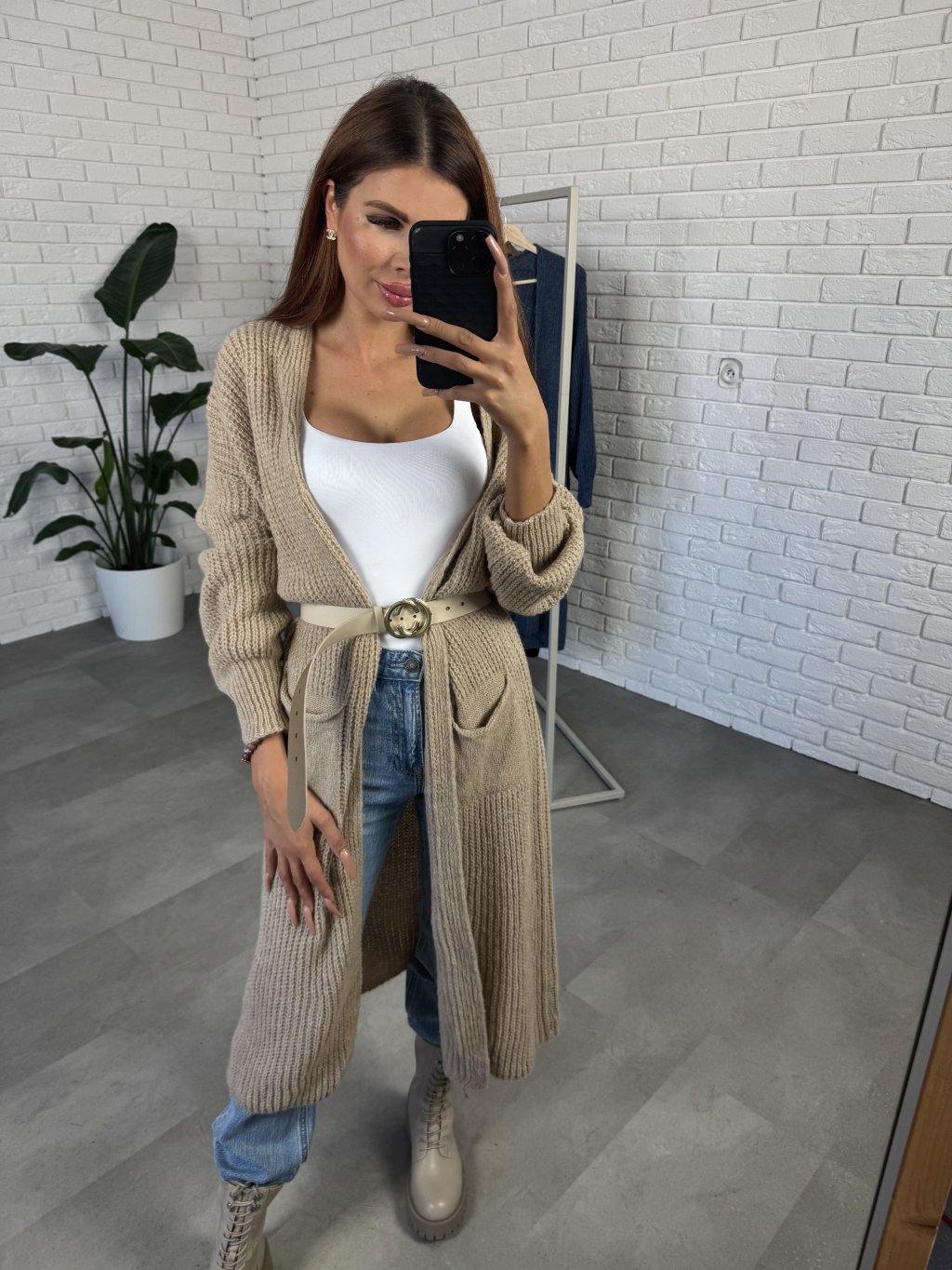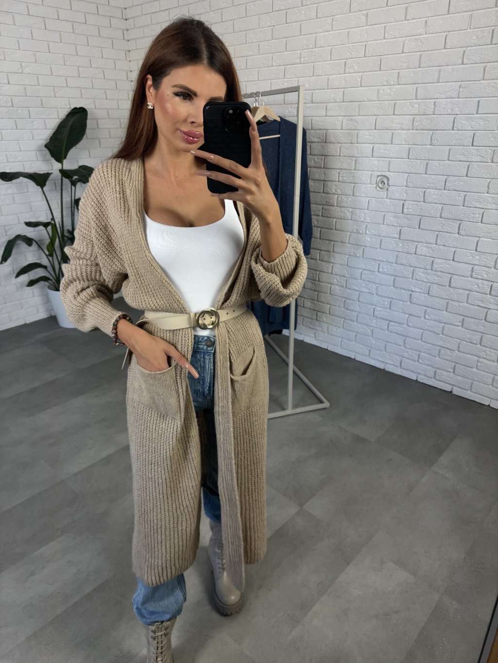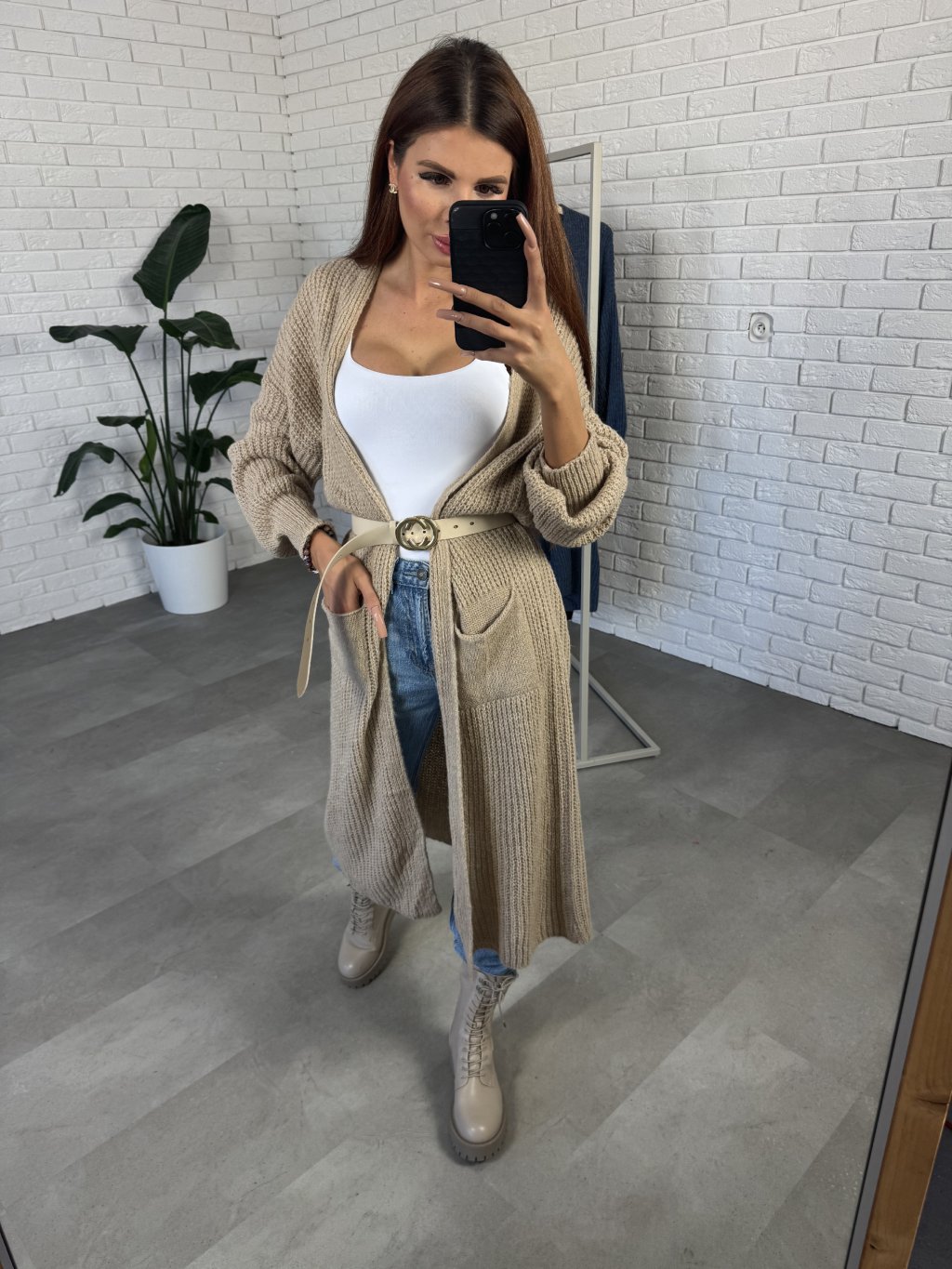 Maxi sveter MIRANDA z veľmi mäkkého príjemného materiálu má otvorený strih, preto sadne na každý typ postavy. Sadne od XS po XL. Možnosť nosenia svetríka aj s opaskom. Opasok nie je súčasťou. Po bokoch sú vrecká. Dĺžka pod kolená. Jednoduchý ľahko kombinovateľný kúsok na jeseň a zimu. Modelka na fotke má 170 cm.