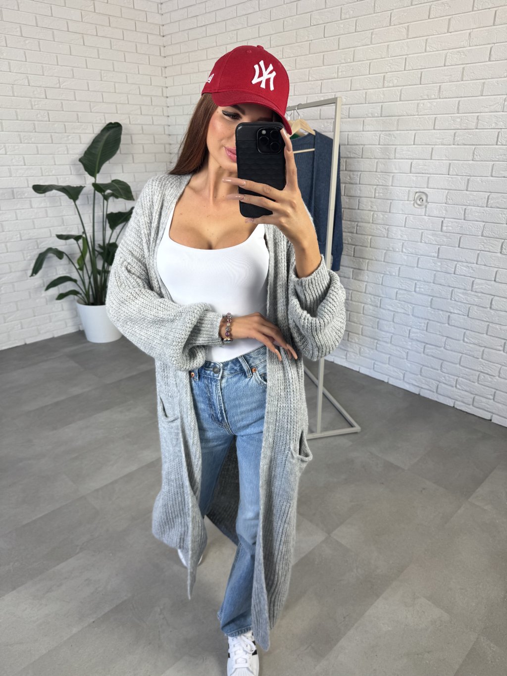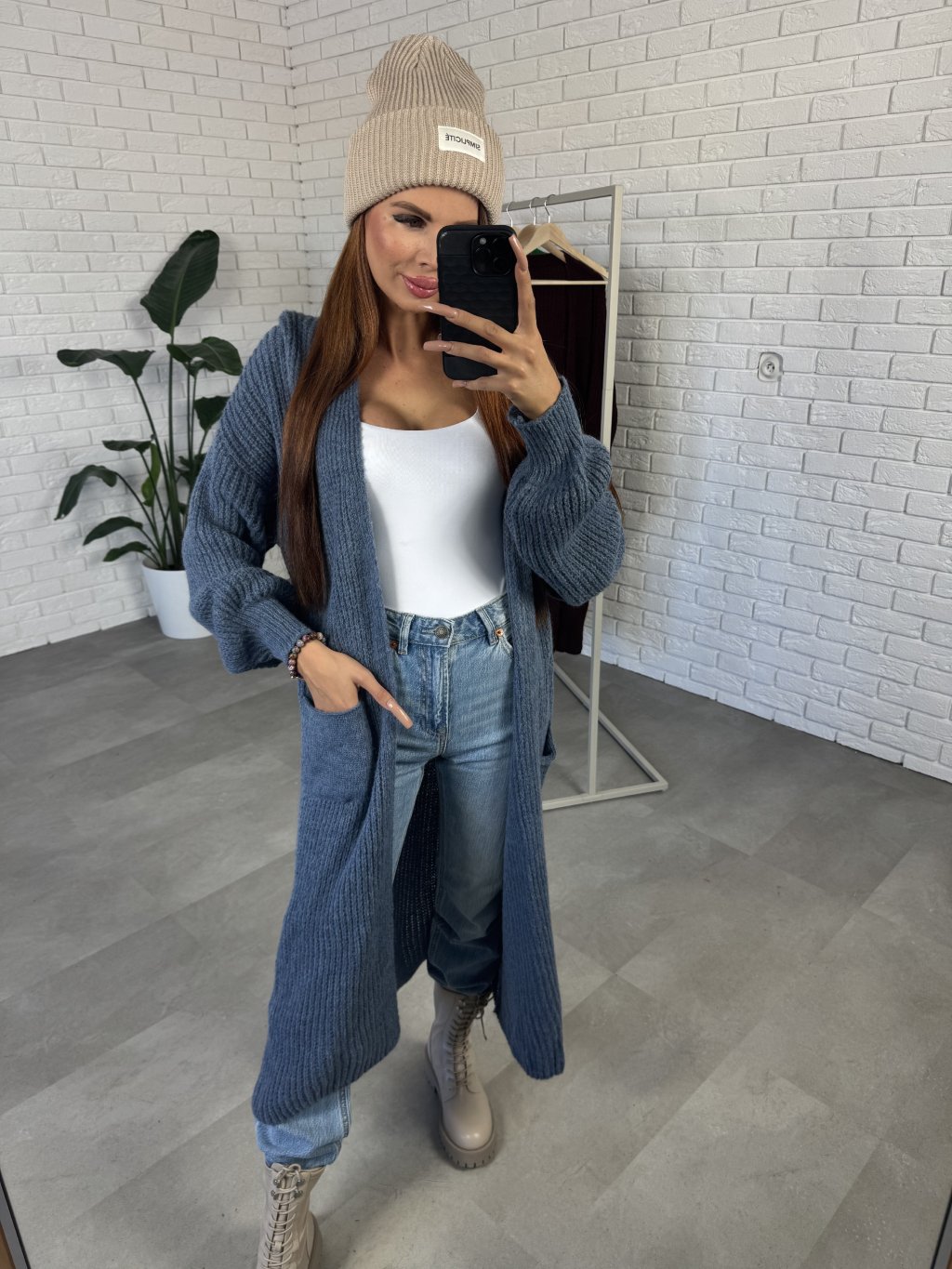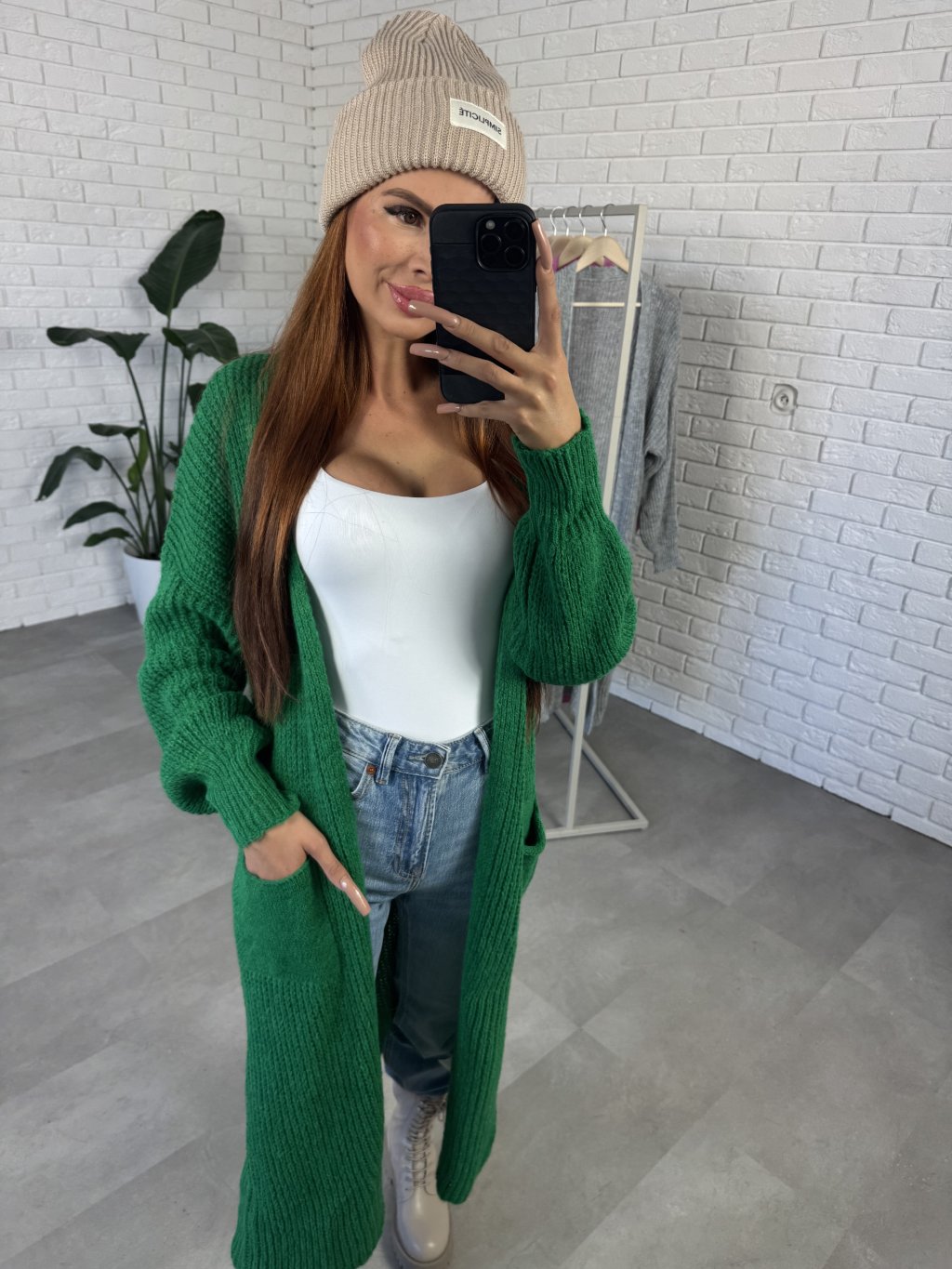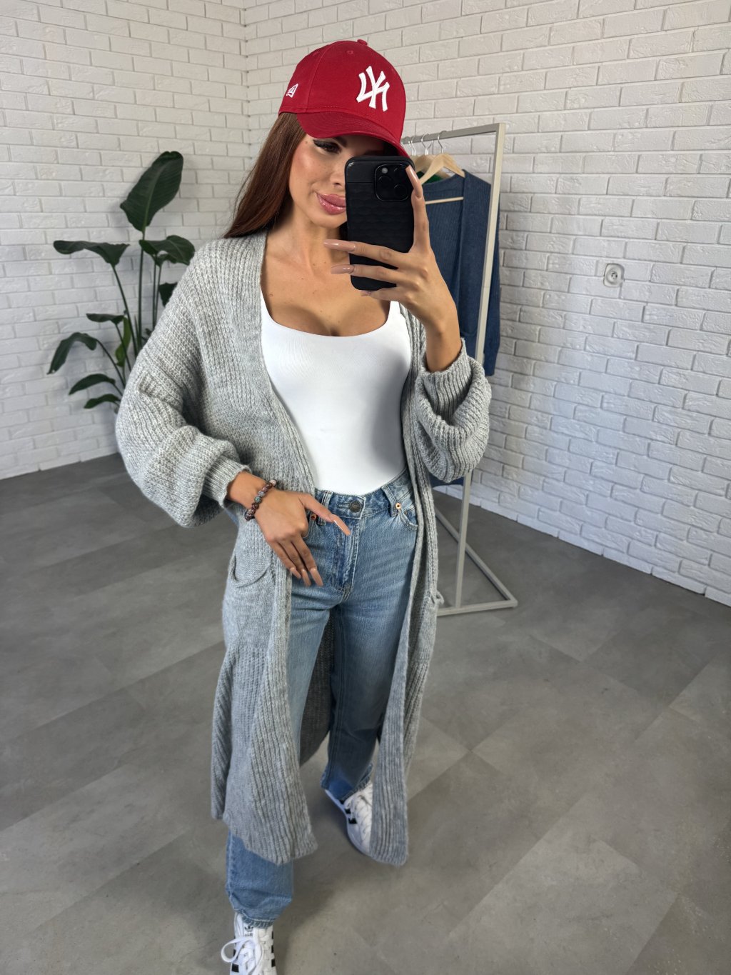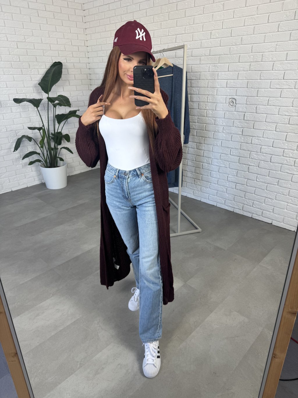 Maxi sveter MIRANDA z veľmi mäkkého príjemného materiálu má otvorený strih, preto sadne na každý typ postavy. Sadne od XS po XL. Možnosť nosenia svetríka aj s opaskom. Opasok nie je súčasťou. Po bokoch sú vrecká. Dĺžka pod kolená. Jednoduchý ľahko kombinovateľný kúsok na jeseň a zimu. Modelka na fotke má 170 cm.