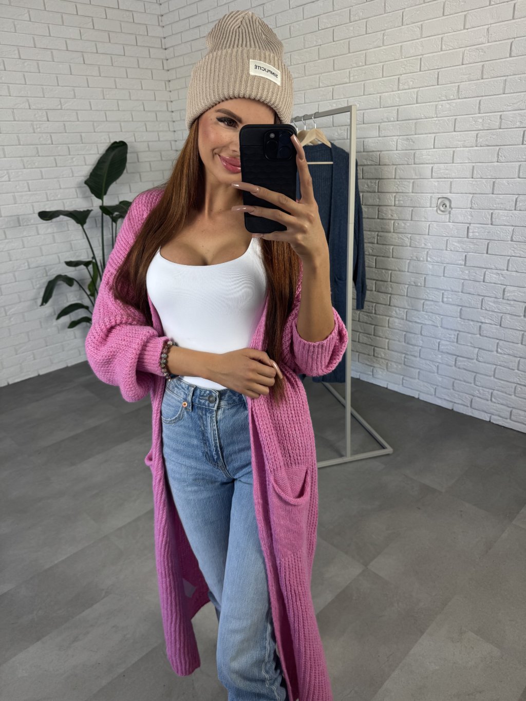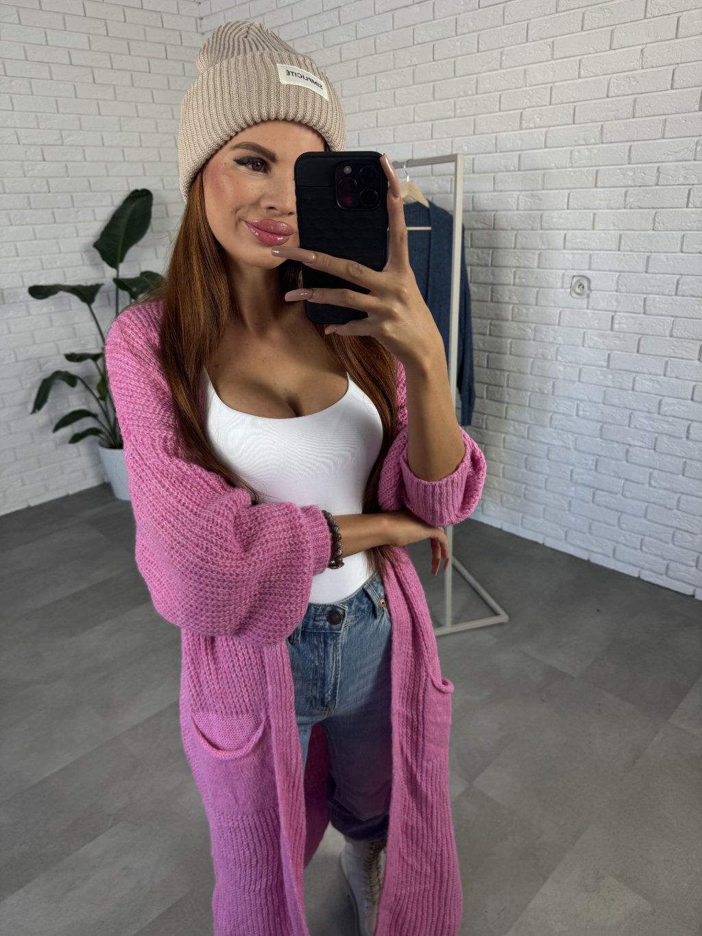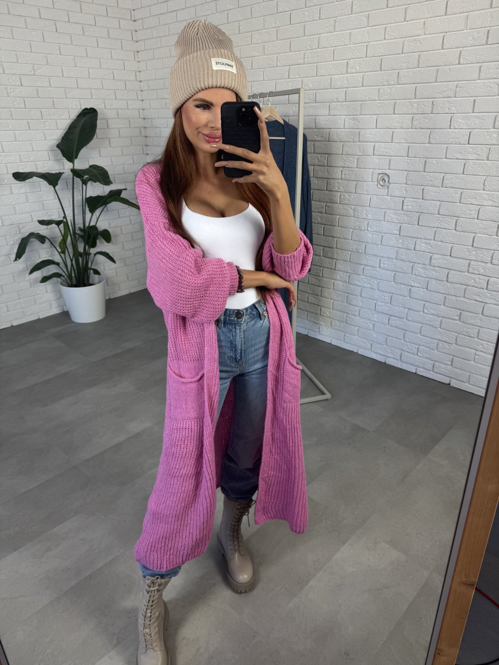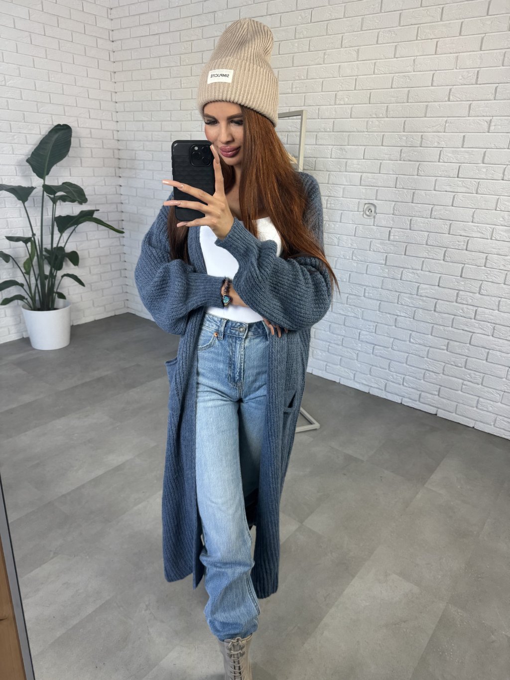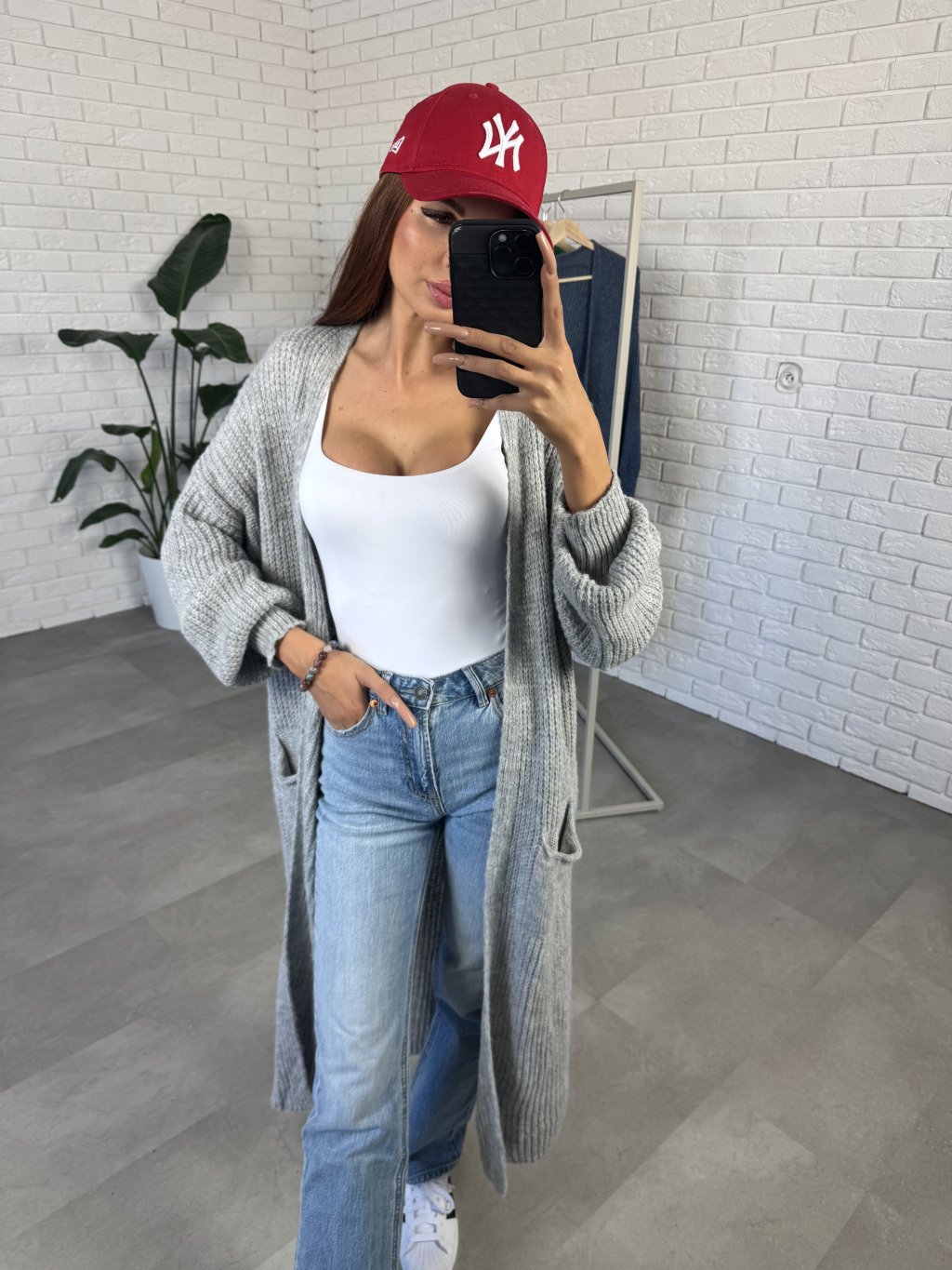 Maxi sveter MIRANDA z veľmi mäkkého príjemného materiálu má otvorený strih, preto sadne na každý typ postavy. Sadne od XS po XL. Možnosť nosenia svetríka aj s opaskom. Opasok nie je súčasťou. Po bokoch sú vrecká. Dĺžka pod kolená. Jednoduchý ľahko kombinovateľný kúsok na jeseň a zimu. Modelka na fotke má 170 cm.