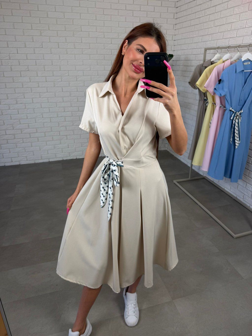 Saténová stuha v páse je zaujímavý detail, ktorým si vieš šaty prispôsobiť podľa seba a zvýrazniť pás. Krátky rukáv je ideálny na teplejšie dni a dopĺňa celkový pohodlný charakter modelu.