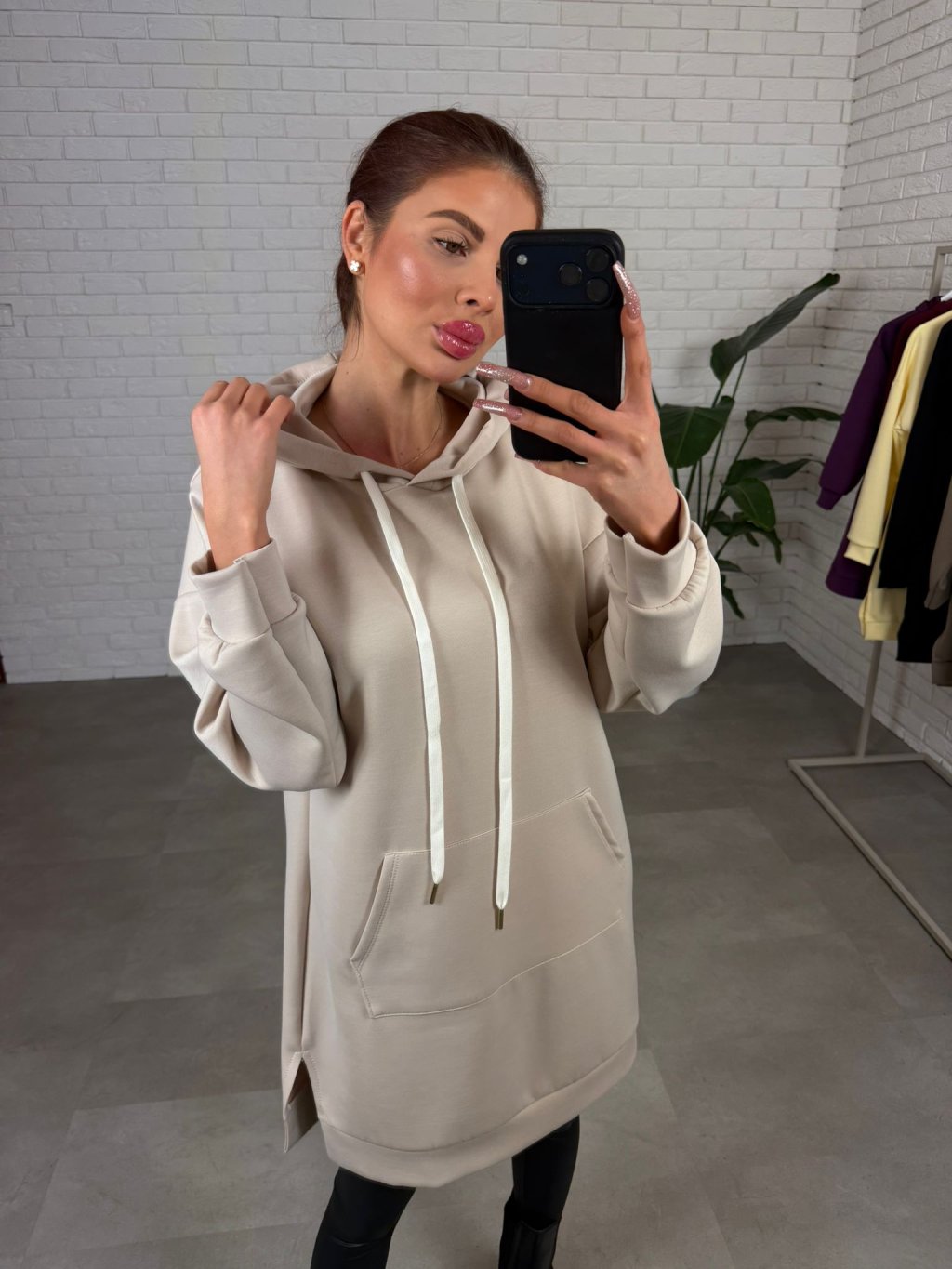 Mikinové šaty DANERO sú ušité z nášho najobľúbenejšieho poloteplákového materiálu, ktorý je príjemný na dotyk, krásne drží tvar a počas dňa pôsobí stále upravene. Voľný ležérny strih ti dopraje maximálne pohodlie a zároveň vytvorí čistú, nenútenú siluetu bez toho, aby ťa kdekoľvek obopínal. Predĺžená dĺžka siaha až ku stehnám a pri menších postavách pokojne aj ku kolenám, takže DANERO môžeš nosiť ako mikinu, šaty alebo tuniku podľa toho, na čo máš práve chuť. Praktická kapucňa so štýlovými šnúrkami dodáva kúsku športovo-mestský vibe a vpredu nájdeš hlboké vrecká, ktoré oceníš každý deň. Stačí pridať legíny, rifle či pančuchy a outfit je hotový bez zbytočného premýšľania – presne ten typ kúsku, ktorý vynosíš stále dookola a nikdy ťa neomrzí. Veľkostne sedia na konfekčné veľkosti od S po XL a výškovo ich odporúčame pre kočky do 175 cm.