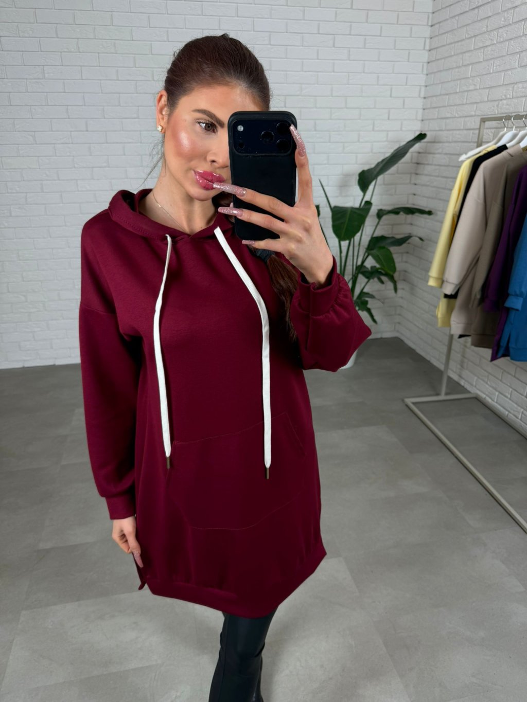 Mikinové šaty DANERO sú ušité z nášho najobľúbenejšieho poloteplákového materiálu, ktorý je príjemný na dotyk, krásne drží tvar a počas dňa pôsobí stále upravene. Voľný ležérny strih ti dopraje maximálne pohodlie a zároveň vytvorí čistú, nenútenú siluetu bez toho, aby ťa kdekoľvek obopínal. Predĺžená dĺžka siaha až ku stehnám a pri menších postavách pokojne aj ku kolenám, takže DANERO môžeš nosiť ako mikinu, šaty alebo tuniku podľa toho, na čo máš práve chuť. Praktická kapucňa so štýlovými šnúrkami dodáva kúsku športovo-mestský vibe a vpredu nájdeš hlboké vrecká, ktoré oceníš každý deň. Stačí pridať legíny, rifle či pančuchy a outfit je hotový bez zbytočného premýšľania – presne ten typ kúsku, ktorý vynosíš stále dookola a nikdy ťa neomrzí. Veľkostne sedia na konfekčné veľkosti od S po XL a výškovo ich odporúčame pre kočky do 175 cm.