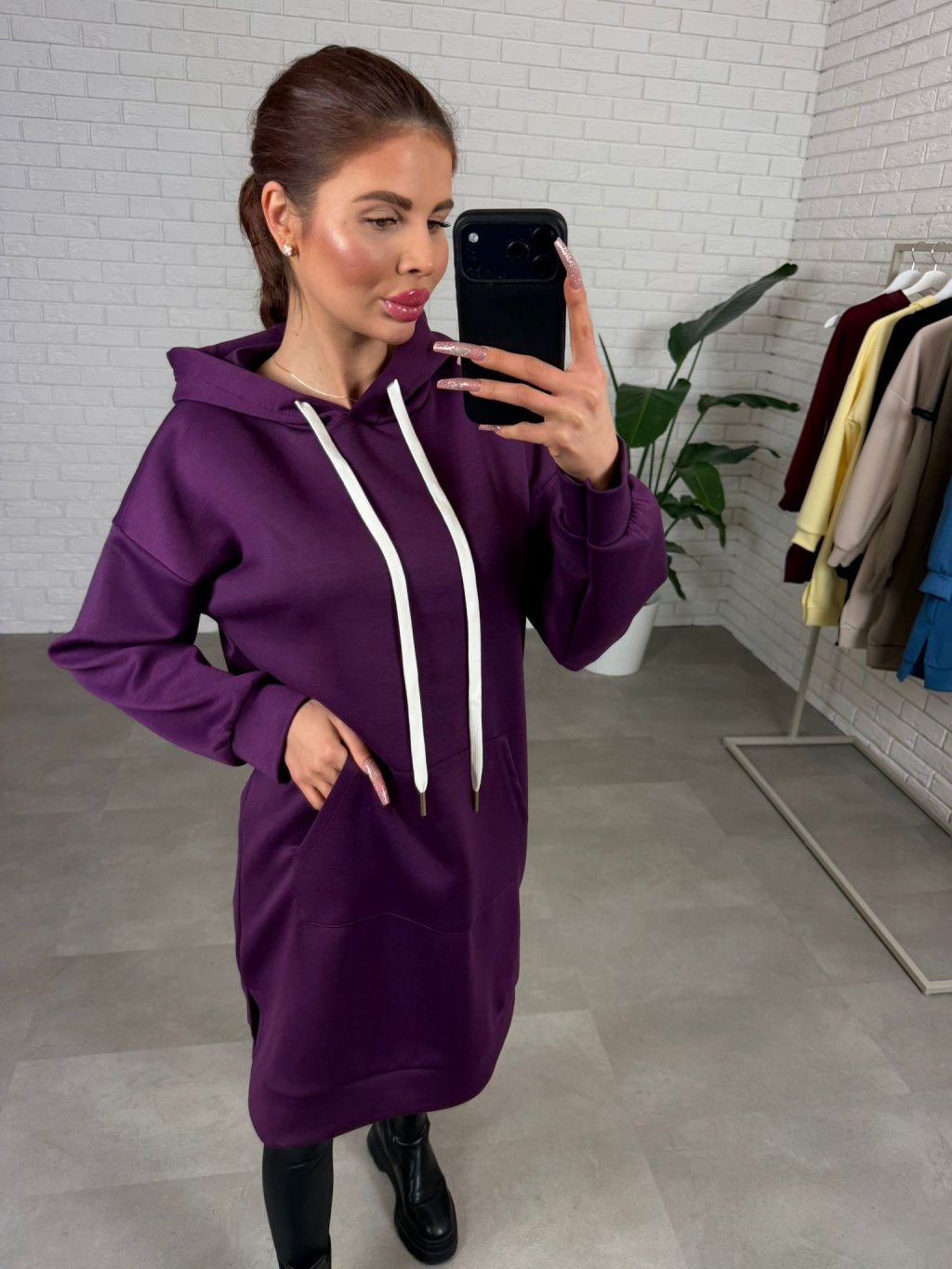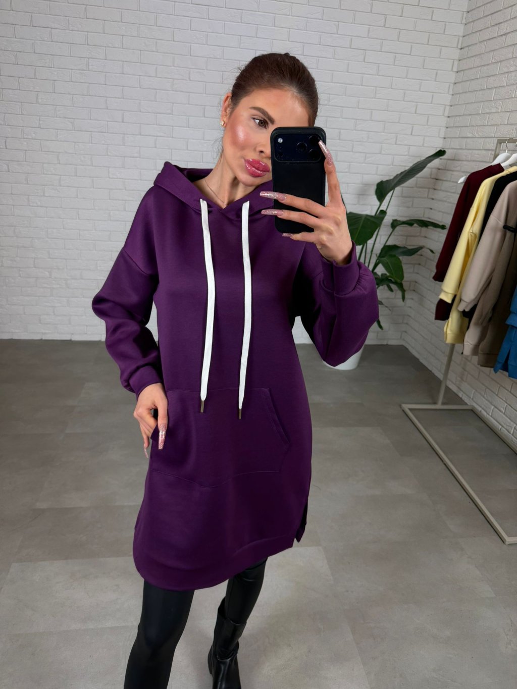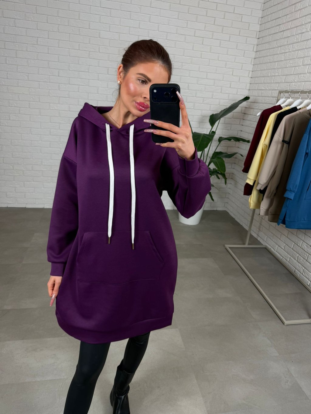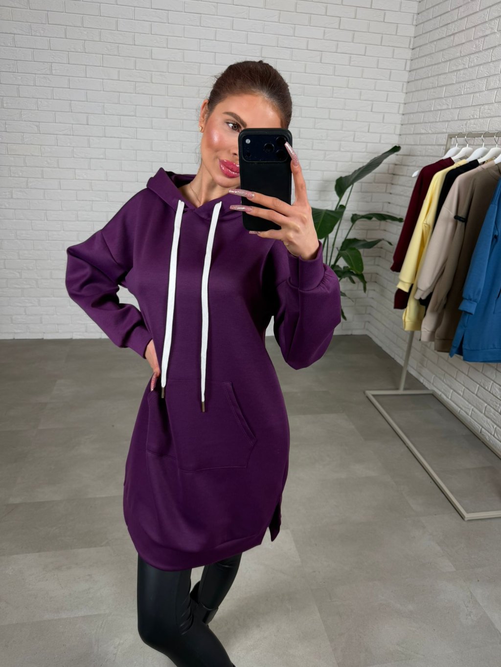 Mikinové šaty DANERO sú ušité z nášho najobľúbenejšieho poloteplákového materiálu, ktorý je príjemný na dotyk, krásne drží tvar a počas dňa pôsobí stále upravene. Voľný ležérny strih ti dopraje maximálne pohodlie a zároveň vytvorí čistú, nenútenú siluetu bez toho, aby ťa kdekoľvek obopínal. Predĺžená dĺžka siaha až ku stehnám a pri menších postavách pokojne aj ku kolenám, takže DANERO môžeš nosiť ako mikinu, šaty alebo tuniku podľa toho, na čo máš práve chuť. Praktická kapucňa so štýlovými šnúrkami dodáva kúsku športovo-mestský vibe a vpredu nájdeš hlboké vrecká, ktoré oceníš každý deň. Stačí pridať legíny, rifle či pančuchy a outfit je hotový bez zbytočného premýšľania – presne ten typ kúsku, ktorý vynosíš stále dookola a nikdy ťa neomrzí. Veľkostne sedia na konfekčné veľkosti od S po XL a výškovo ich odporúčame pre kočky do 175 cm.