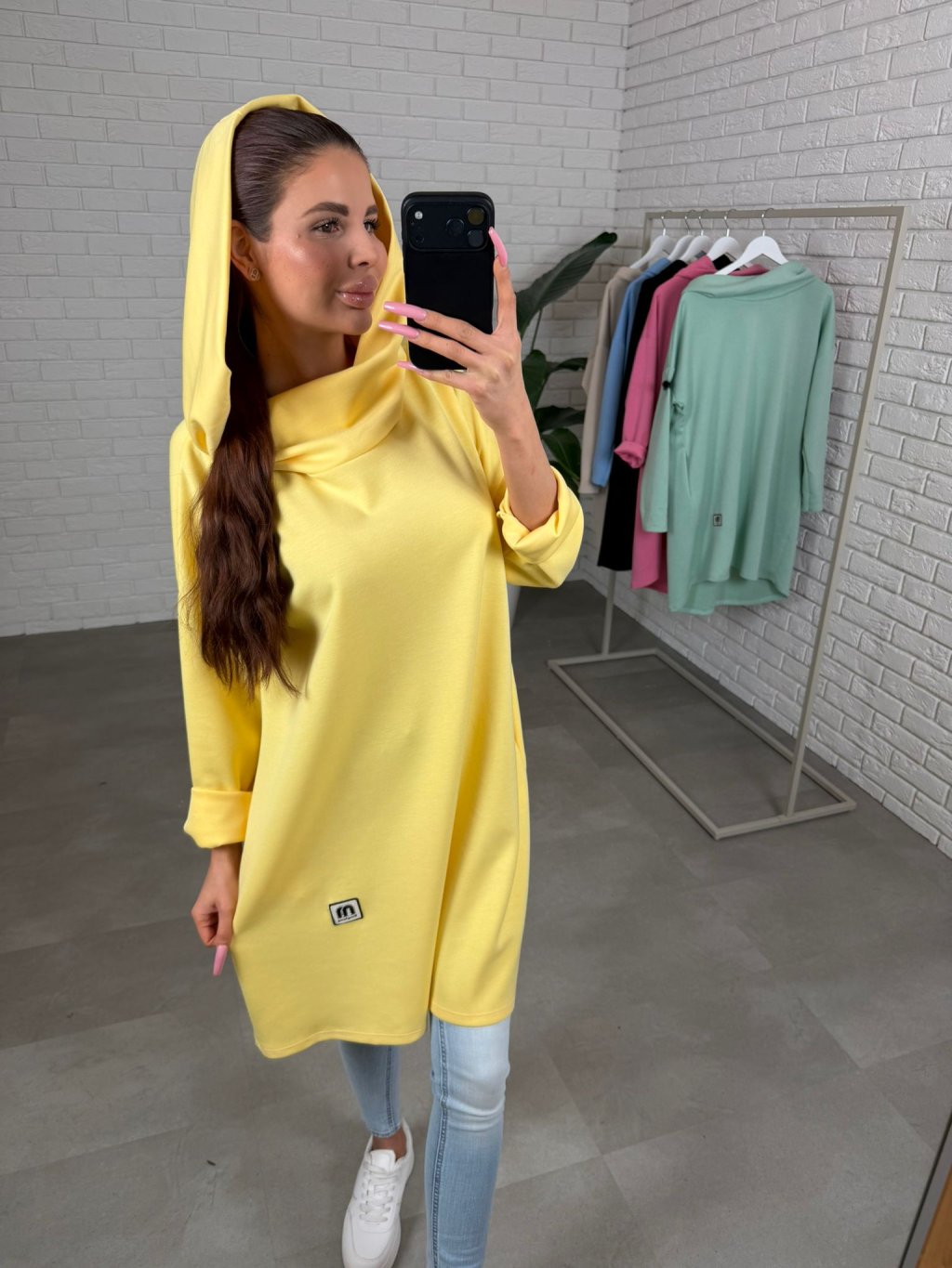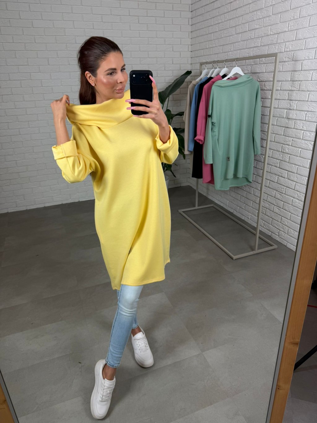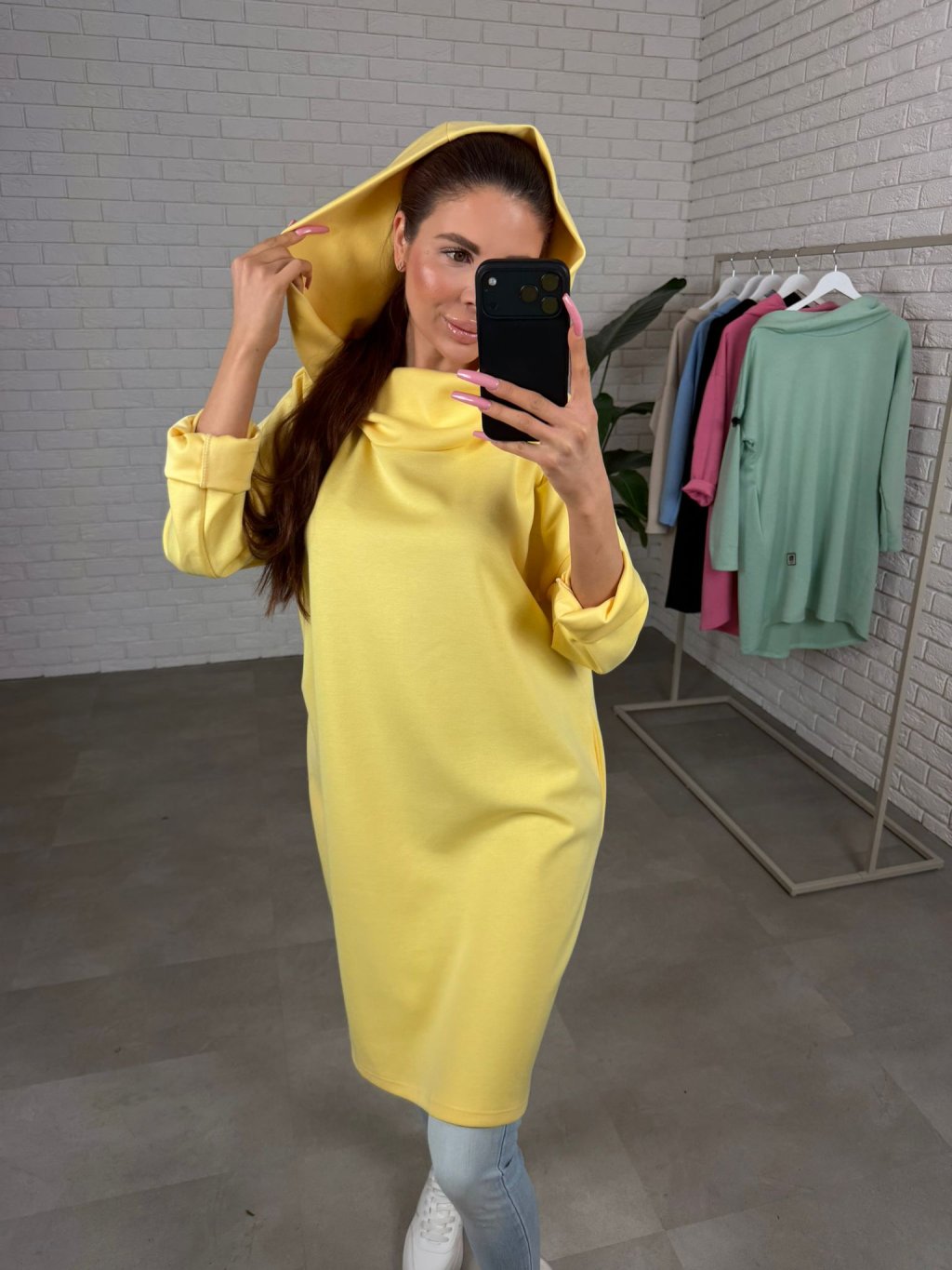 Strih je voľný a ležérny, takže pohodlne sadne na konfekčné veľkosti od M až po XXL. Po bokoch sa nachádzajú hlboké vrecká, ktoré sú praktické a zároveň dotvárajú uvoľnený mestský vzhľad. Šaty môžeš nosiť samostatne alebo ich skombinovať napríklad s rifľami či legínami.