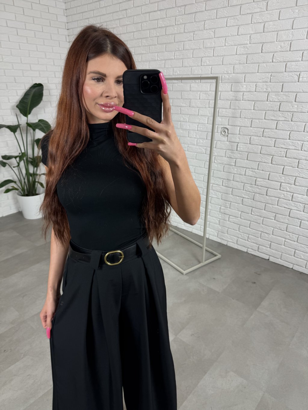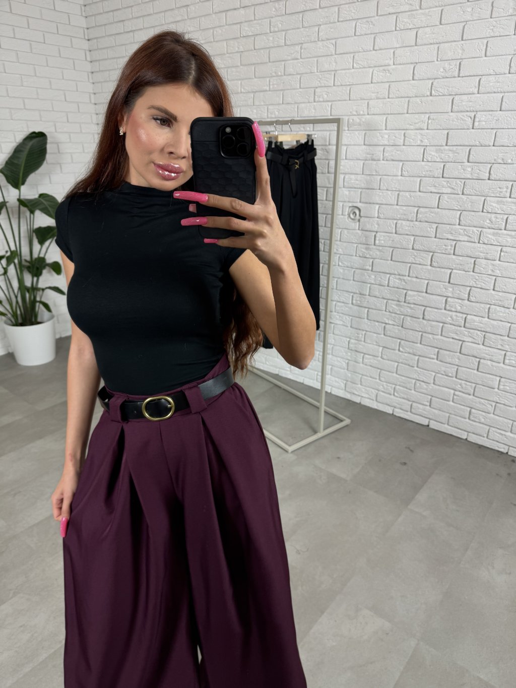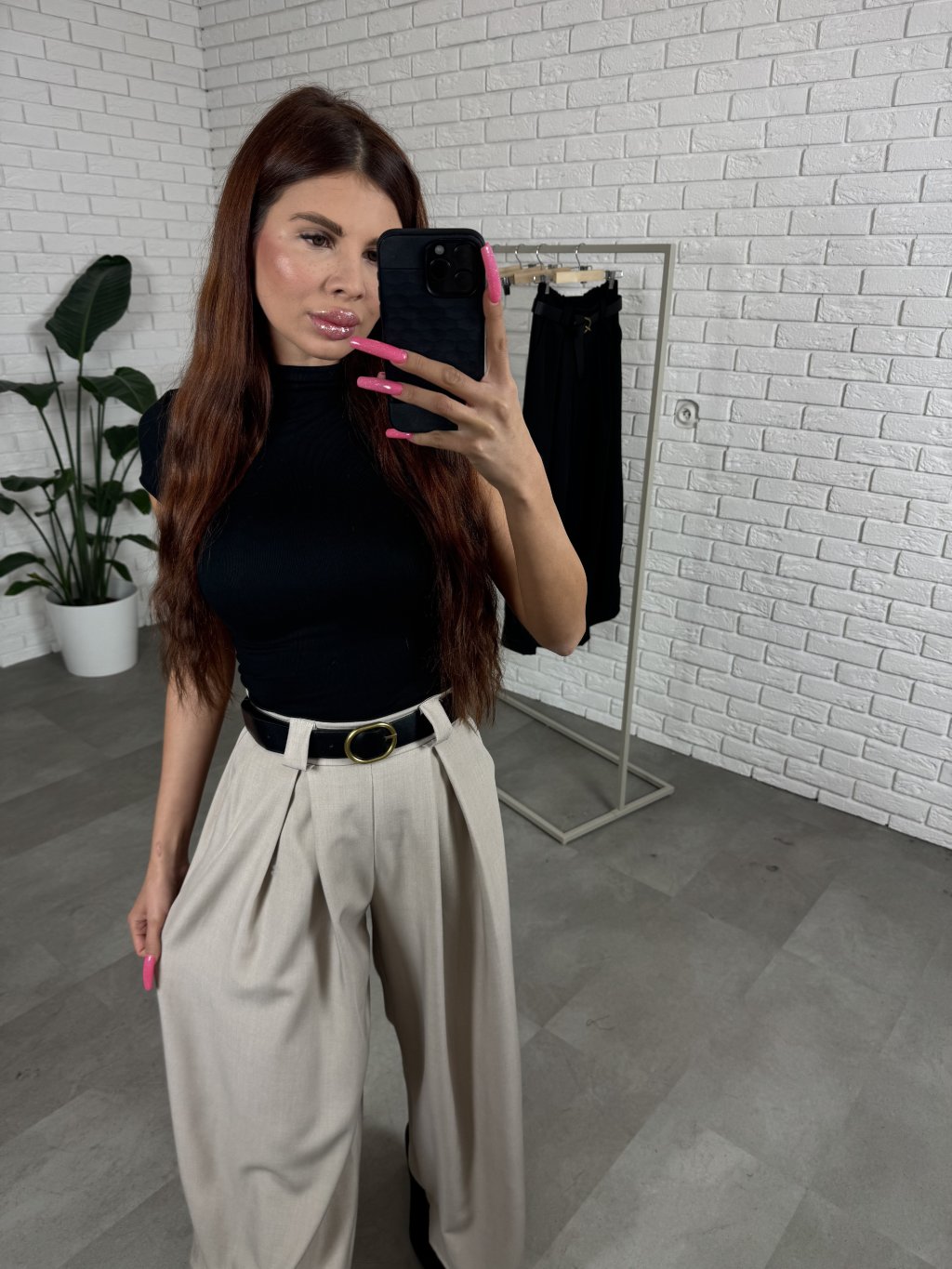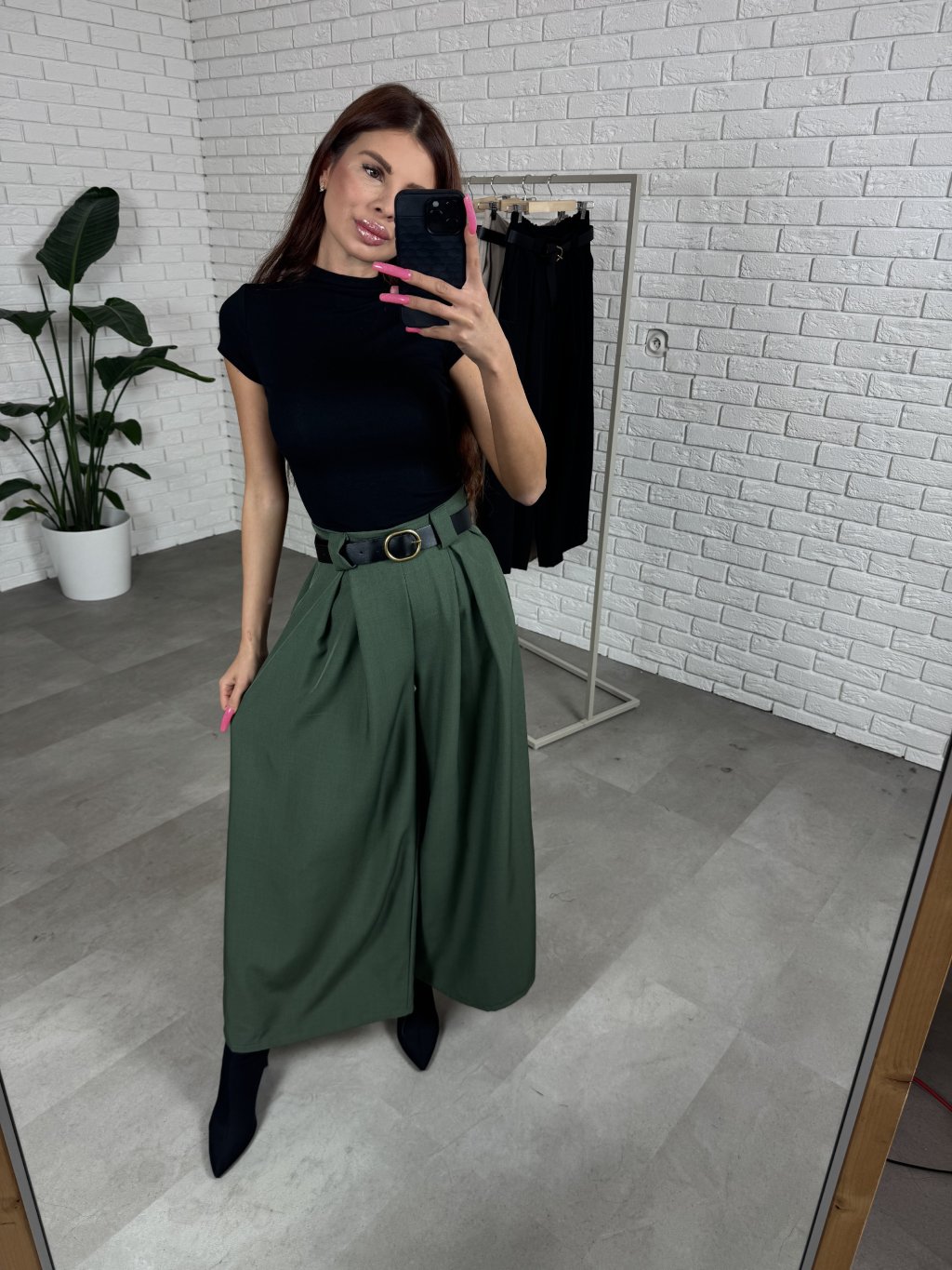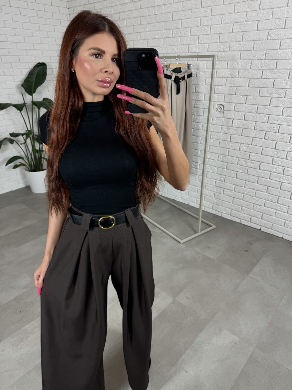 Nohavice ALMONA v rozšírenom strihu. Materiál je hrubší a nekrčivý. Vhodné na jeseň aj na zimu. Vzadu v páse elastická gumka. Po bokoch hlboké vrecká. Opasok je súčasťou nohavíc. Na opasku je zlatá spona. Vpredu majú prekladaný detail. Nohavice sú elastické, takže sadnú od XS po L. Výškovo sadnú od 160cm do 170cm. Modelka na fotke ma 170 cm.