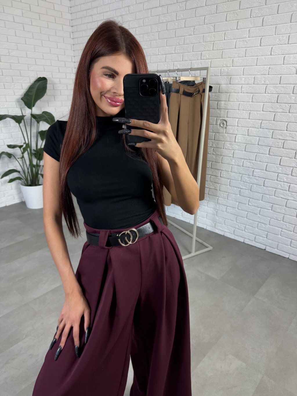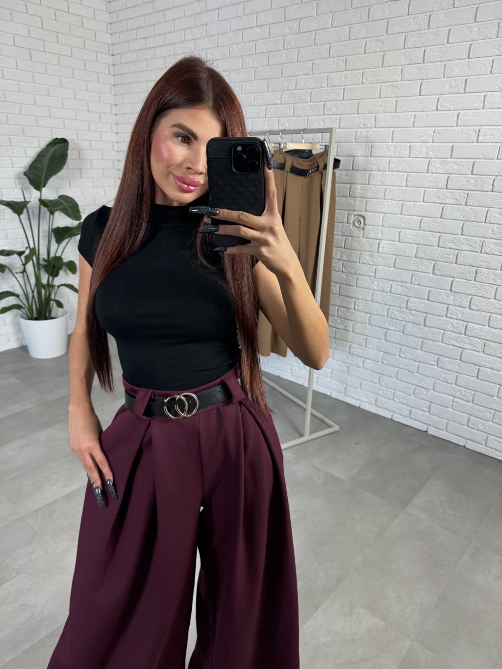 Nohavice ANORA v rozšírenom strihu. Materiál je hrubší a nekrčivý. Vhodné na jeseň aj na zimu. Vzadu v páse elastická gumka. Po bokoch hlboké vrecká. Opasok je súčasťou nohavíc. Vpredu majú prekladaný detail. Nohavice sú elastické, takže sadnú od XS po L. Výškovo sadnú od 160cm do 170cm.