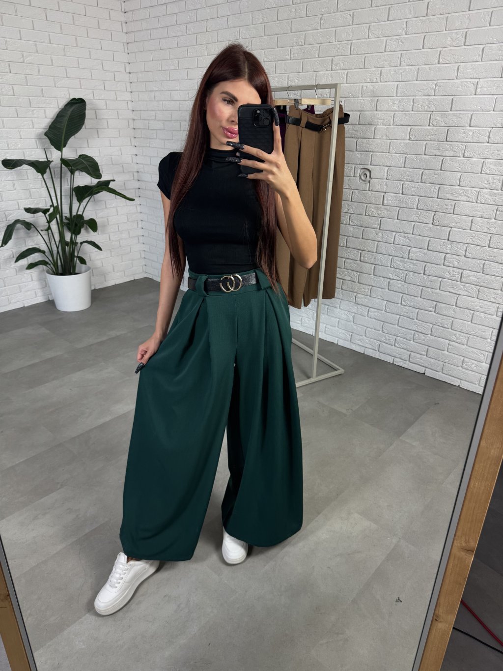 Nohavice ANORA v rozšírenom strihu. Materiál je hrubší a nekrčivý. Vhodné na jeseň aj na zimu. Vzadu v páse elastická gumka. Po bokoch hlboké vrecká. Opasok je súčasťou nohavíc. Vpredu majú prekladaný detail. Nohavice sú elastické, takže sadnú od XS po L. Výškovo sadnú od 160cm do 170cm.