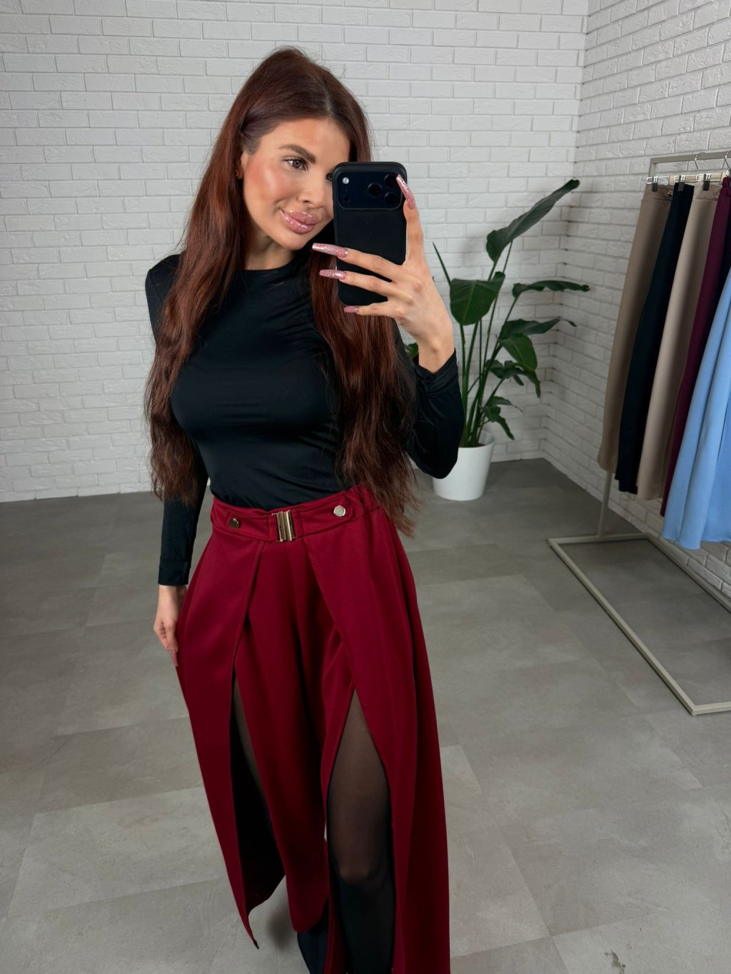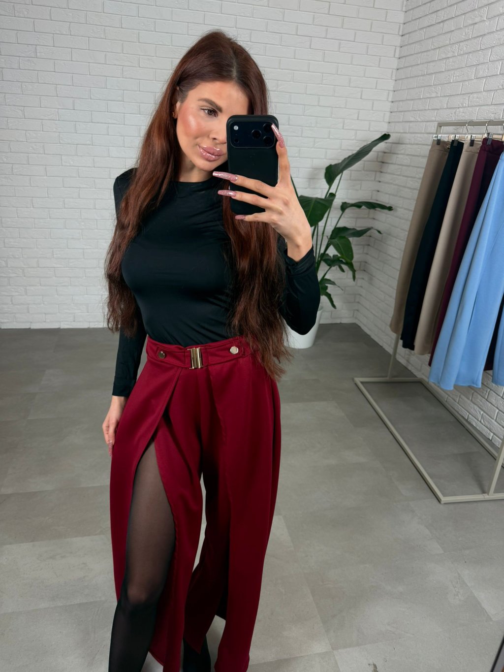 Originálne nohavice DARA s otvoreným strihom, sú jedným z našich bestsellerov, ktoré zaručene oživia každý tvoj outfit. Tento kúsok s netopierím strihom je vyrobený z jemného poloteplákového nekrčivého materiálu. Strih pôsobí žensky a elegantne, Univerzálna veľkosť sedí od XS po L a strih funguje na nižšej aj vyššej postave do 180 cm. Otvorený strih pridá outfitu ľahkosť a ženskosť pri chôdzi. Zlaté elementy na páse sú malým detailom, ktorý kúsok oživia a tvoj outfit doladia. Na jar a leto sú DARA presne ten typ nohavíc, v ktorých máš ľahkosť v pohybe, vzduch na nohách a upravený dojem bez toho, aby si čokoľvek riešila. Vieš ich nosiť športovo aj elegantne, bez problémov ich skombinuješ s pančuškami aj bez. Vynosíš ich s teniskami na bežný deň alebo s lodičkami na špeciálnu príležitosť. Strih funguje na rôznych typoch postáv, dáva priestor bokom aj zadku a drží čistú, vyváženú siluetu bez zbytočného riešenia.