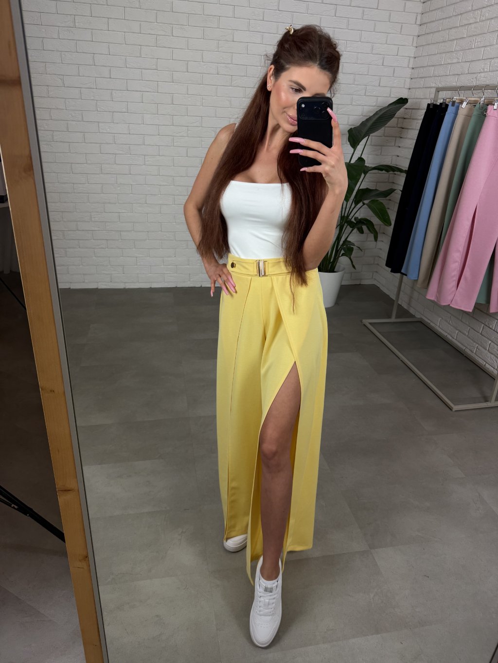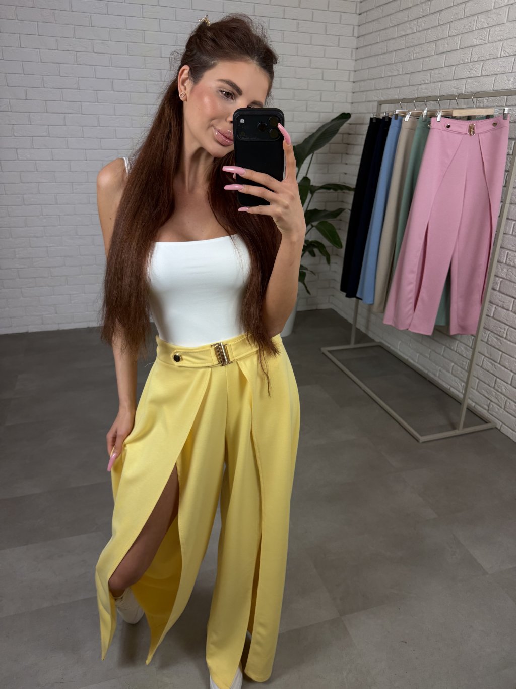 Originálne nohavice DARA s otvoreným strihom, sú jedným z našich bestsellerov, ktoré zaručene oživia každý tvoj outfit. Tento kúsok s netopierím strihom je vyrobený z jemného poloteplákového nekrčivého materiálu. Otvorený strih pridá outfitu ľahkosť a ženskosť pri chôdzi. Zlaté elementy na páse sú malým detailom, ktorý kúsok oživia a tvoj outfit doladia.Tento bestsellerový kúsok je ideálny keď hľadáš jedinečný a pohodlný kúsok na jarné a letné dni. Vieš ich nosiť športovo aj elegantne, bez problémov ich skombinuješ s pančuškami aj bez. Vynosíš ich s teniskami na bežný deň alebo s lodičkami na špeciálnu príležitosť. Strih pôsobí žensky a elegantne, no zároveň sa nemusíš báť, že budú príliš odhaľujúce – otvorenie je riešené tak, aby pri pohybe vytváralo ľahkosť, ale stále zakrylo všetko, čo má.