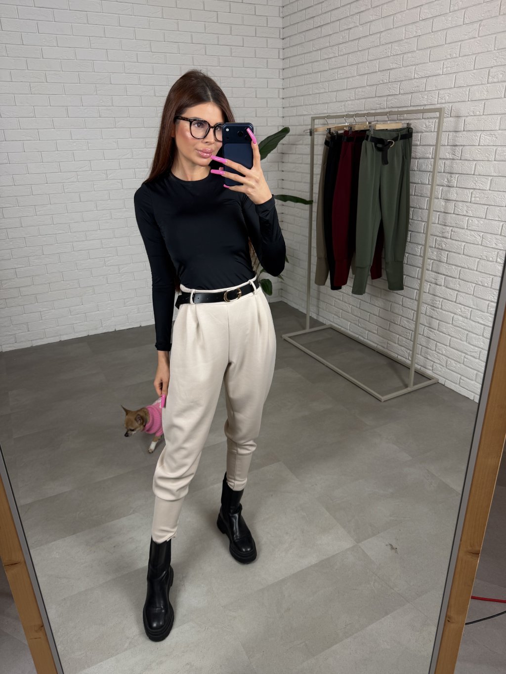 Nohavice DAVONA vďaka pudlovému strihu ideálne maskujú oblasť zadočku, stehien a bokov. Vyrobené sú z nášho bestsellerového poloteplákového materiálu, v ktorom sa budeš cítiť pohodlne v práci, ale aj na kávičke. Po bokoch majú praktické hlboké vrecká. Majú vysoký pás, ktorý lemuje opasok čiernej farby so zlatou prackou. Na spodu sú zúžené, vďaka čomu sa dobre kombinujú s čižmami. Sadnú na konfekčnú veľkosť od XS po XL, na kočky vysoké maximálne 175 cm.