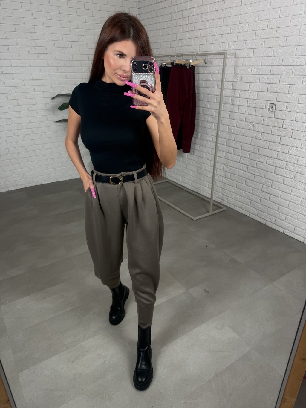 Nohavice DAVONA vďaka pudlovému strihu ideálne maskujú oblasť zadočku, stehien a bokov. Vyrobené sú z nášho bestsellerového poloteplákového materiálu, v ktorom sa budeš cítiť pohodlne v práci, ale aj na kávičke. Po bokoch majú praktické hlboké vrecká. Majú vysoký pás, ktorý lemuje opasok čiernej farby so zlatou prackou. Na spodu sú zúžené, vďaka čomu sa dobre kombinujú s čižmami. Sadnú na konfekčnú veľkosť od XS po XL, na kočky vysoké maximálne 175 cm.