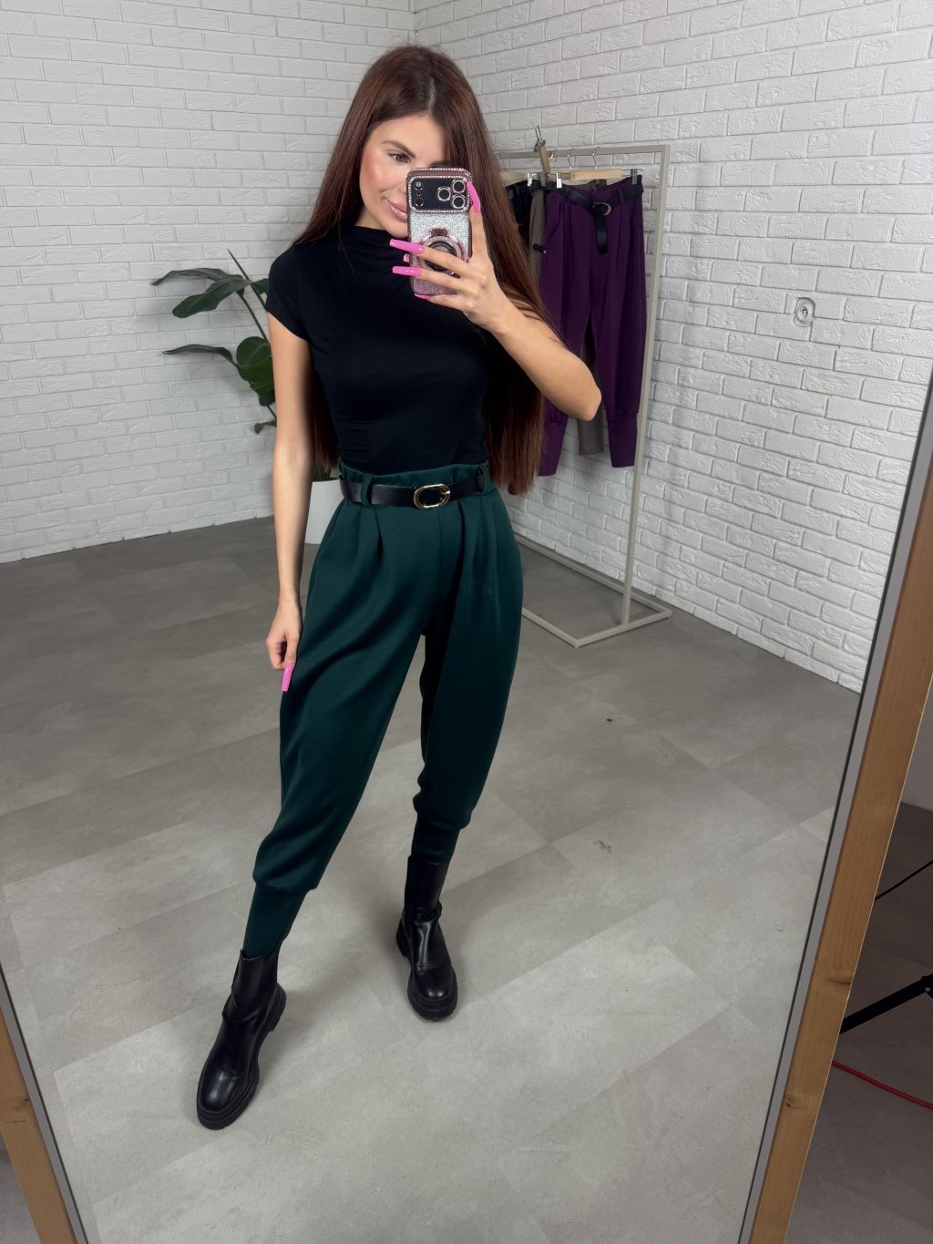 Nohavice DAVONA vďaka pudlovému strihu ideálne maskujú oblasť zadočku, stehien a bokov. Vyrobené sú z nášho bestsellerového poloteplákového materiálu, v ktorom sa budeš cítiť pohodlne v práci, ale aj na kávičke. Po bokoch majú praktické hlboké vrecká. Majú vysoký pás, ktorý lemuje opasok čiernej farby so zlatou prackou. Na spodu sú zúžené, vďaka čomu sa dobre kombinujú s čižmami. Sadnú na konfekčnú veľkosť od XS po XL, na kočky vysoké maximálne 175 cm.