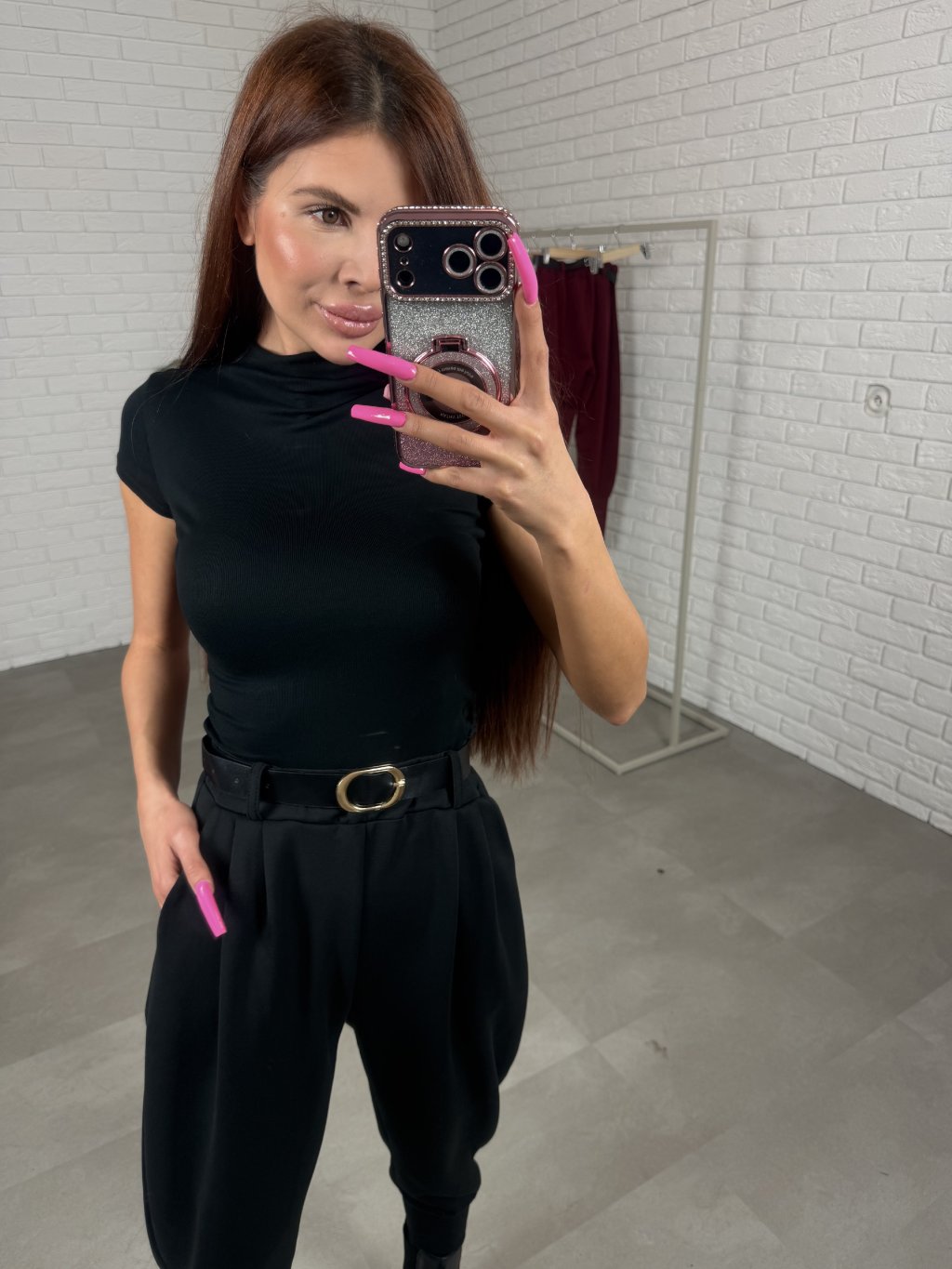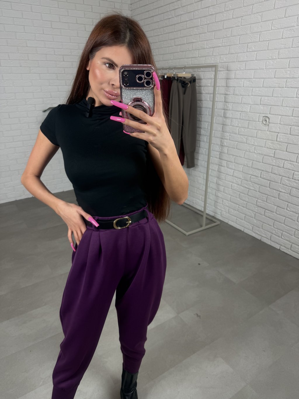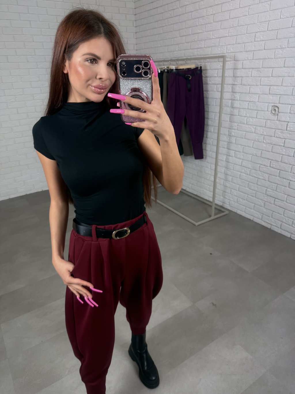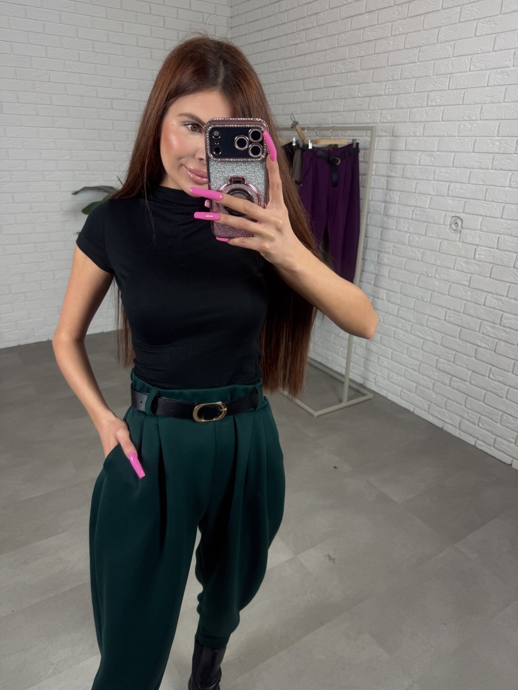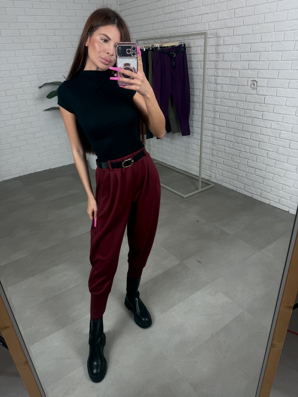 Nohavice DAVONA vďaka pudlovému strihu ideálne maskujú oblasť zadočku, stehien a bokov. Vyrobené sú z nášho bestsellerového poloteplákového materiálu, v ktorom sa budeš cítiť pohodlne v práci, ale aj na kávičke. Po bokoch majú praktické hlboké vrecká. Majú vysoký pás, ktorý lemuje opasok čiernej farby so zlatou prackou. Na spodu sú zúžené, vďaka čomu sa dobre kombinujú s čižmami. Sadnú na konfekčnú veľkosť od XS po XL, na kočky vysoké minimálne 175 cm.
