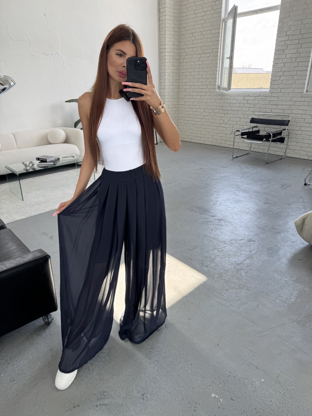 Nohavice DETER ako unikátny produkt od Lucie z Wearmee , extravagantný , no decentný letný kúsok , nohavice zo šifónového materiálu , plísovaný , dlhšia dĺžka , aby vyzerali naozaj pompézne , na vrchnej časti podšité , aby zakryli zadok , kraťasky voľné , pre každý obvod stehna , elastická guma na páse , sadnú od XS po L , jedinečné letné nohavice
