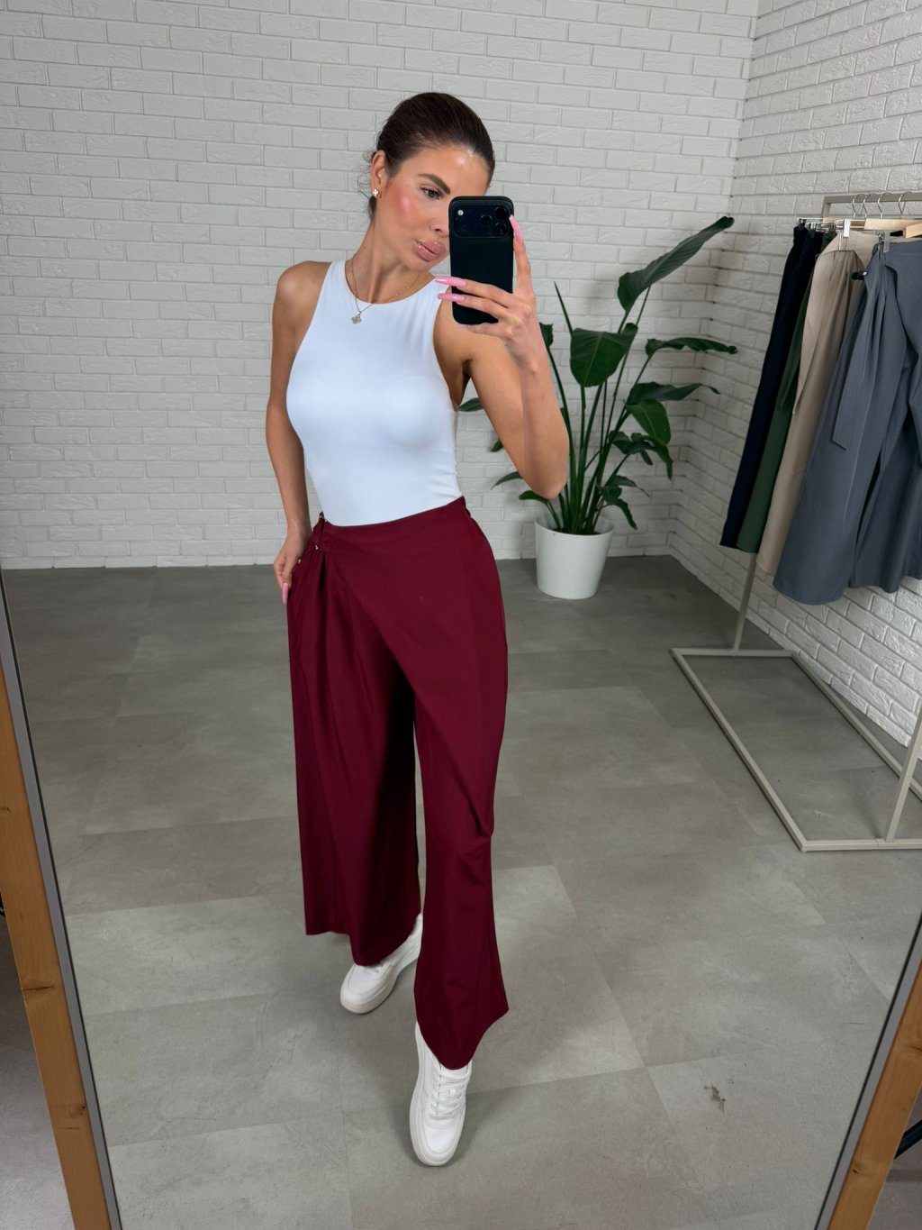 Nohavice ELZA sú vyrobené z kvalitného nekrčivého materiálu, ktorý si drží svoj tvar a pôsobí upravene počas celého dňa. Voľný ležérny strih prirodzene splýva na postave a vytvára vyváženú siluetu bez zbytočného obopínania. Prekladaný detail v prednej časti elegantne zakrýva oblasť bruška a opticky zoštíhľuje pás, vďaka čomu sú ideálne najmä pre postavu typu jablko alebo pre každú ženu, ktorá chce zakryť bruško. Elastická guma v páse sa pohodlne prispôsobí postave a regulovateľný opasok umožní prispôsobiť nohavice presne podľa potreby. Tento model je vhodný na každodenné nosenie aj elegantnejšie kombinácie a výškovo sadne do 175 cm, veľkostne od S po XL.