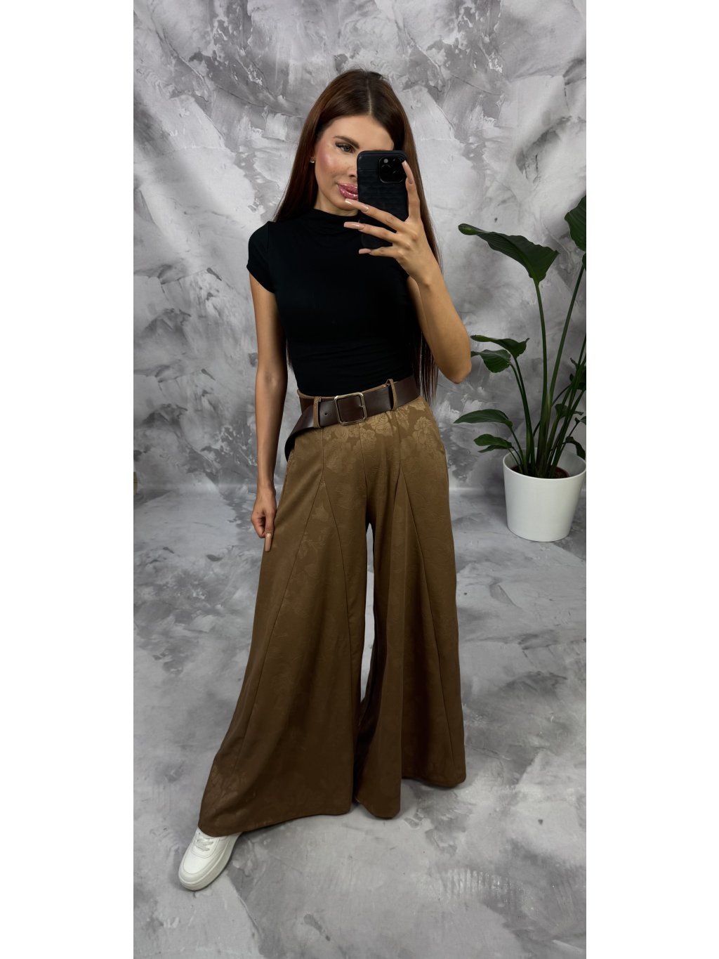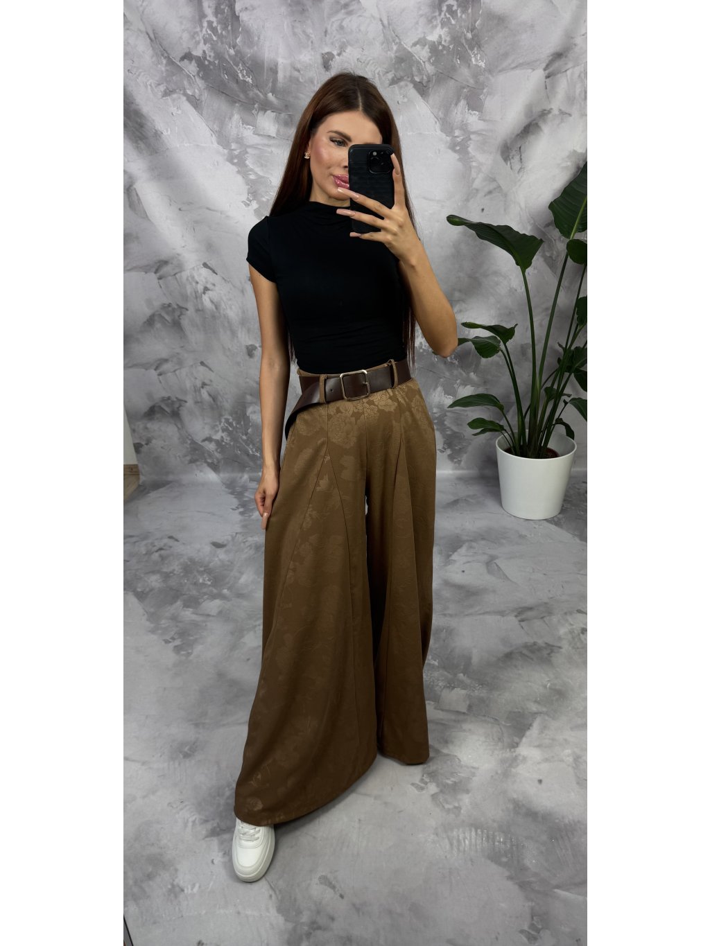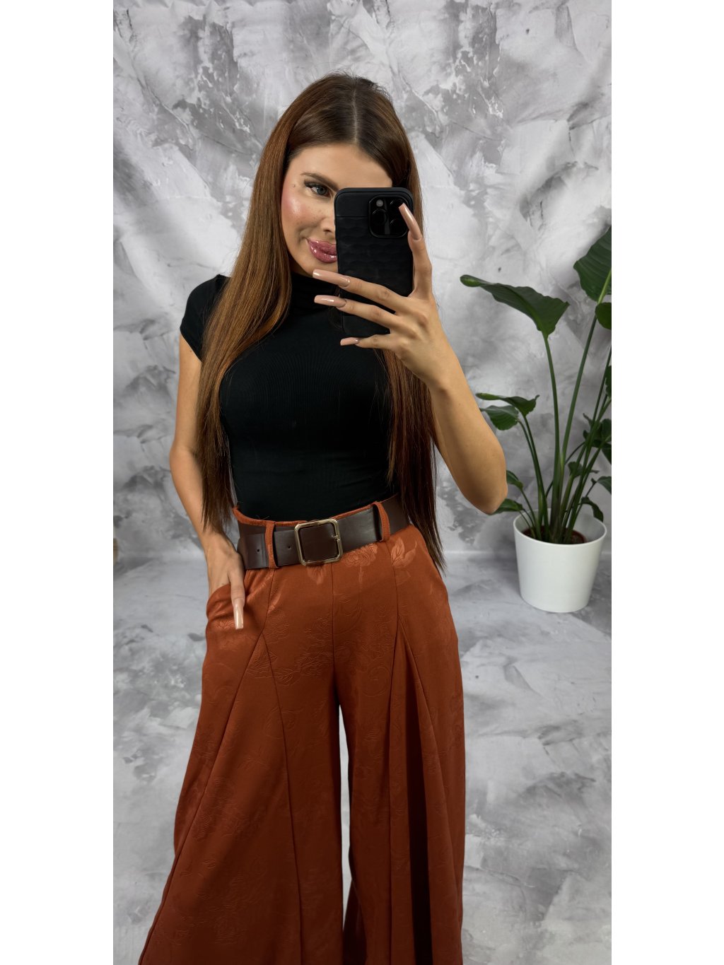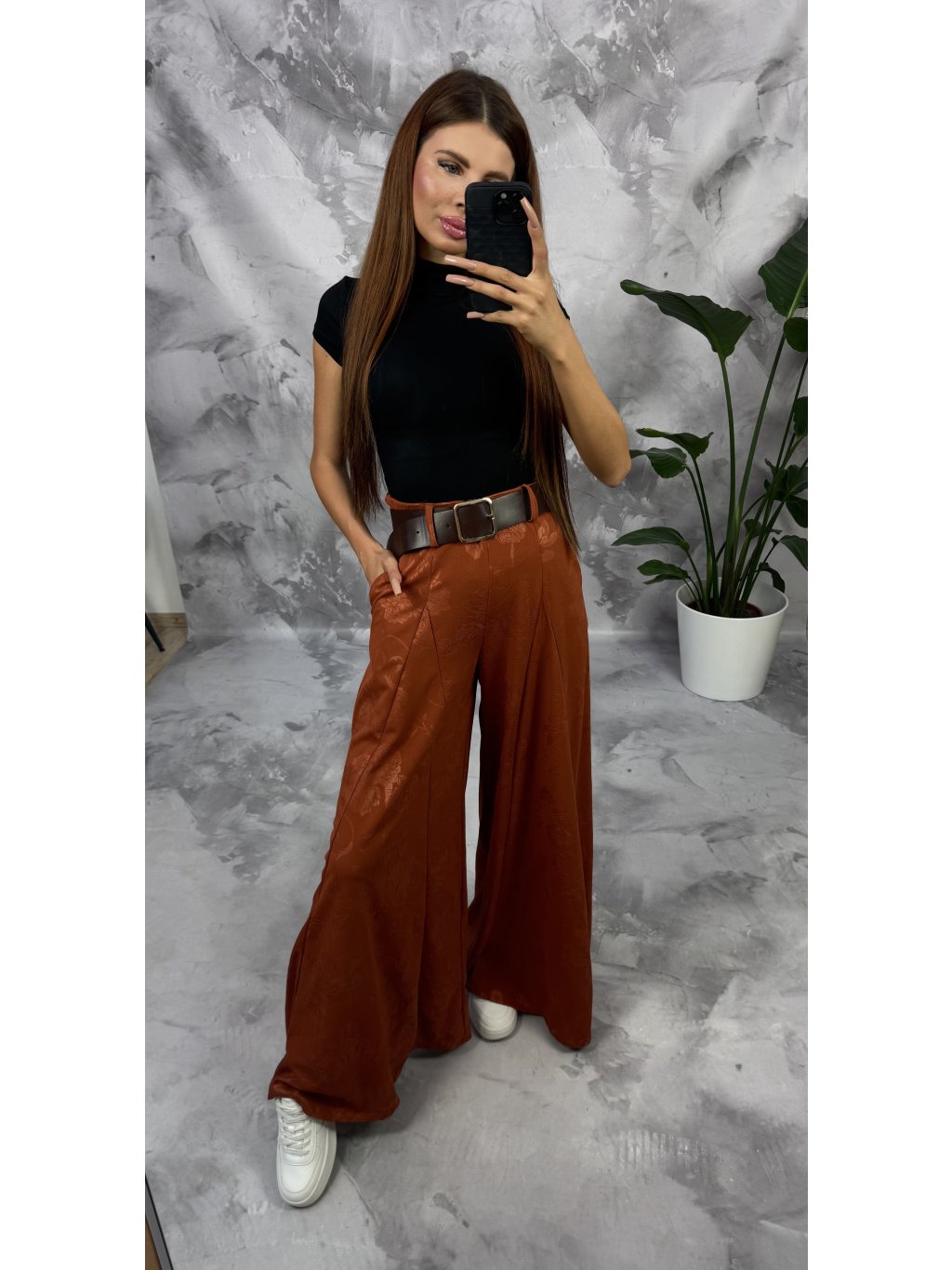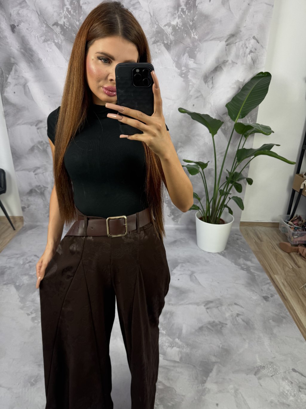 Nohavice HELEN, obľúbený široký model s netradičným vzorom. Jednoduchý model, ale zároveň romantický a elegantný vďaka kvetinovej potlači. Po bokoch praktické vrecká. Súčasťou nohavíc je aj opasok. Dostupné v niekoľkých atraktívnych farbách. Príjemný, ležérny strih. Vhodné do výšky 175cm.