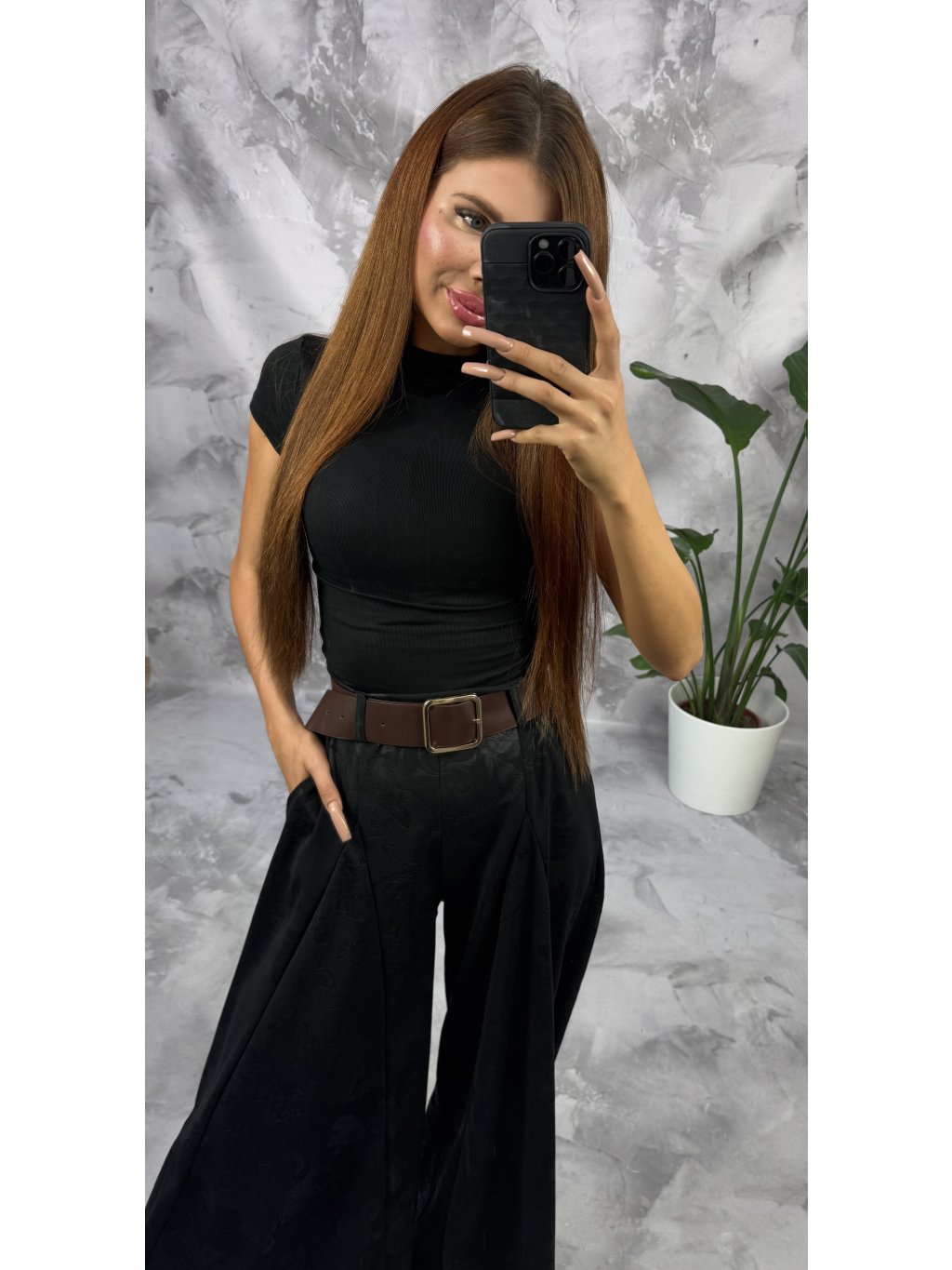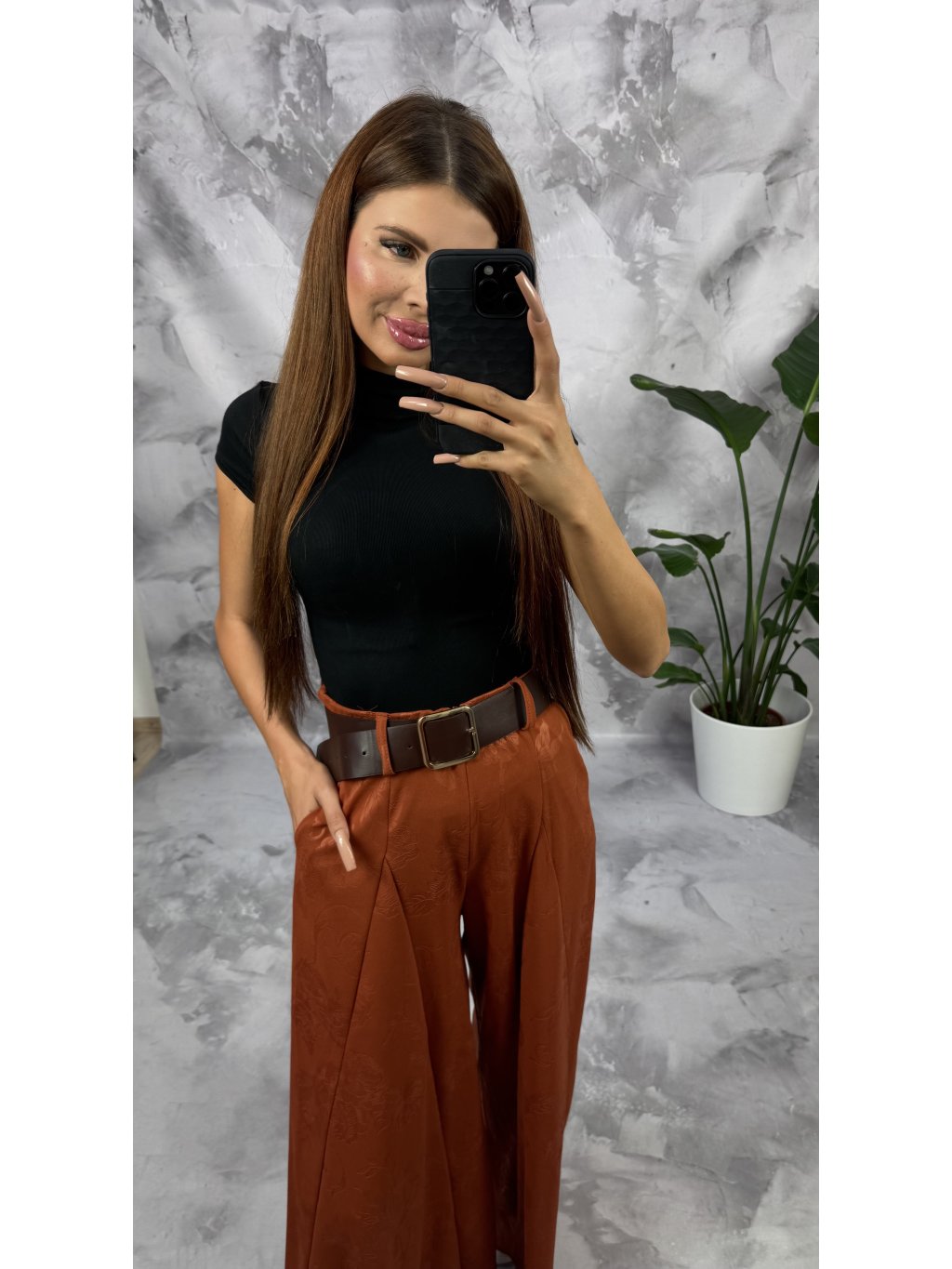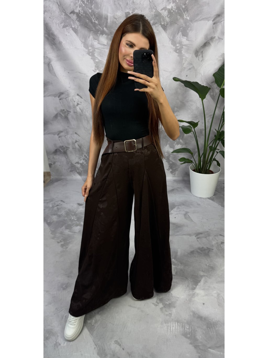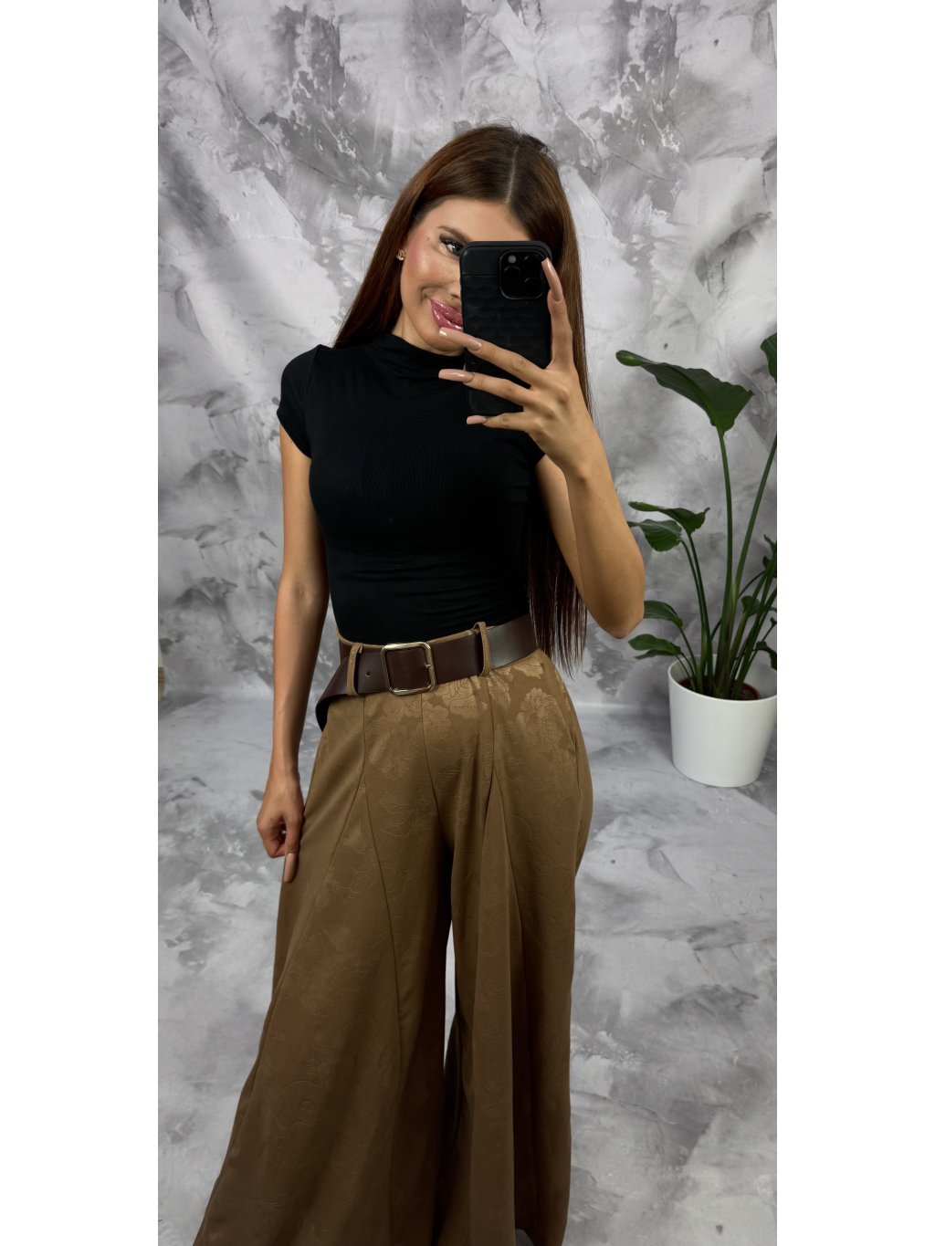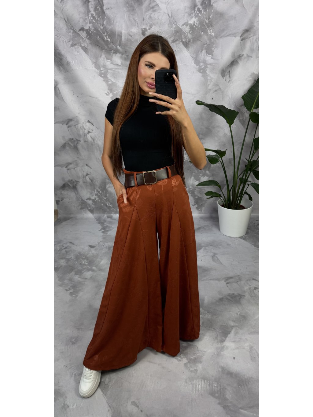 Nohavice HELEN, obľúbený široký model s netradičným vzorom. Jednoduchý model, ale zároveň romantický a elegantný vďaka kvetinovej potlači. Po bokoch praktické vrecká. Súčasťou nohavíc je aj opasok. Dostupné v niekoľkých atraktívnych farbách. Príjemný, ležérny strih. Vhodné do výšky 175cm.