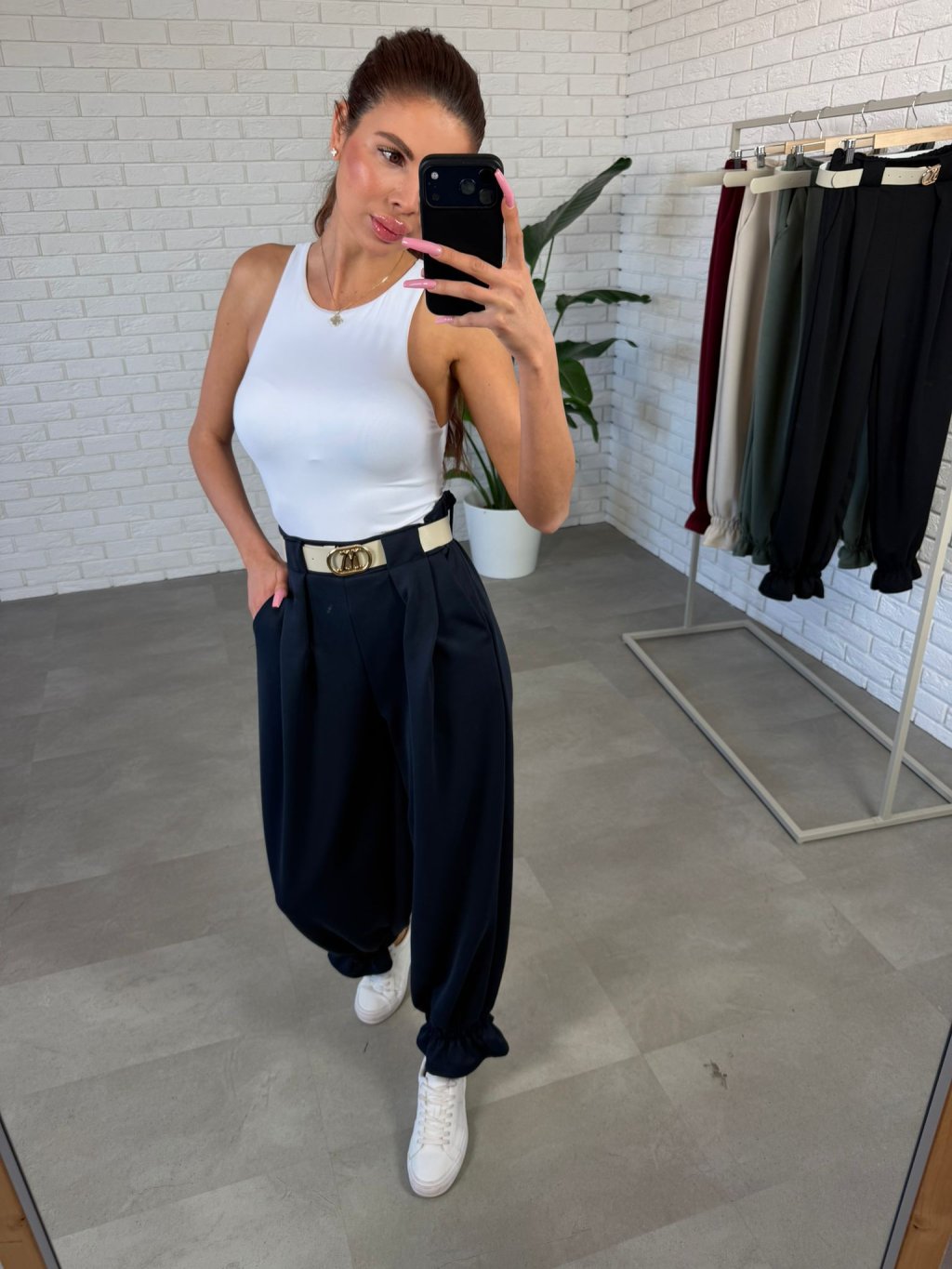 Nohavice sú navrhnuté tak, aby poskytli maximálne pohodlie a zároveň vytvorili krásne vyváženú siluetu. Vyrobené sú z obľúbeného poloteplákového materiálu, ktorý je mäkký, príjemný na dotyk a ideálny na každodenné nosenie. Elastický pás sa dokonale prispôsobí postave bez nepríjemného tlačenia a zabezpečí komfort počas celého dňa. Voľnejší ležérny strih elegantne splýva na postave a pomáha zakryť oblasť pásu, bokov aj zadočka. Spodná časť nohavíc je zakončená gumičkovým patentom s jemne nariaseným volánikom, ktorý dodáva nohaviciam moderný a štýlový vzhľad. Nohavice sú ideálne na bežné nosenie, do práce aj na voľný čas. Výškovo sú vhodné pre postavy do 175 cm a veľkostne sadnú od S po XL.
