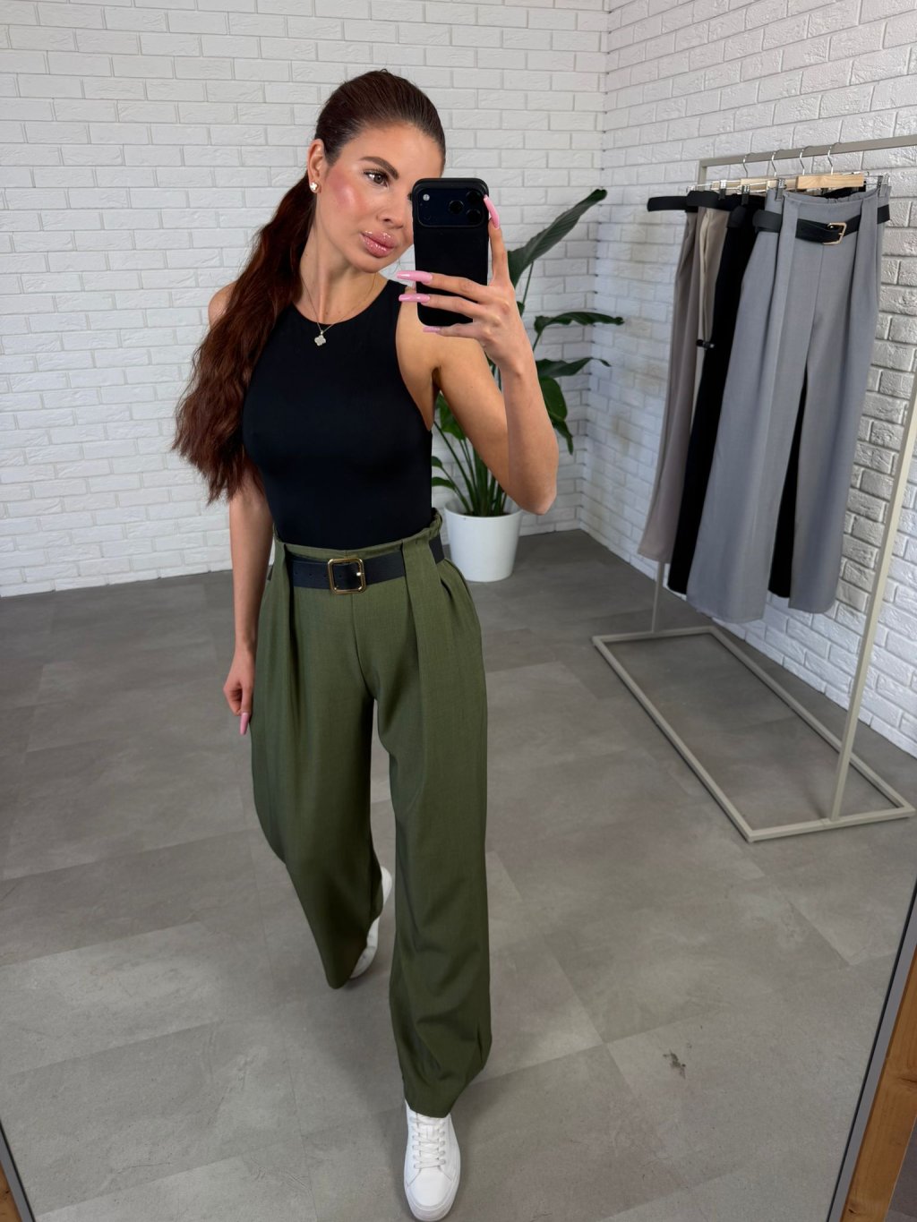 Elegantné nohavice sú navrhnuté tak, aby krásne zvýraznili pás a zároveň vytvorili predĺženú siluetu. Vysoký pás opticky zoštíhľuje postavu a dodáva outfitu upravený a moderný vzhľad, ktorý pôsobí žensky a sebavedomo pri každom kroku. Materiál je kvalitný, nekrčivý a príjemný na dotyk, takže nohavice si zachovávajú svoj elegantný vzhľad počas celého dňa. Voľnejší strih prirodzene splýva na postave, poskytuje pohodlie a zároveň pôsobí veľmi štýlovo. Praktické hlboké vrecká po bokoch dodávajú nohaviciam funkčný detail, ktorý oceníš pri každodennom nosení. Tento model je ideálny na bežné dni, do práce aj na elegantnejšie príležitosti, stačí ich doplniť s body, topom alebo košeľou a vytvoríš nadčasový outfit. Výškovo sú vhodné pre postavy až do 180 cm a veľkostne sadnú od S po L.
