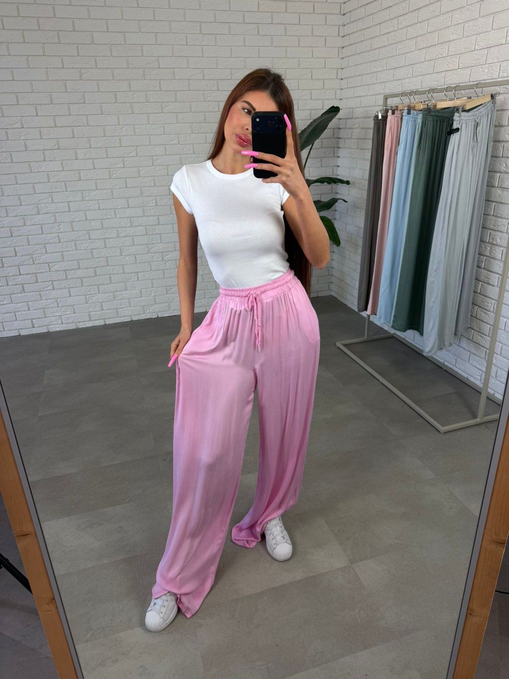 Materiál je jeden z našich najobľúbenejších – ľahký, vzdušný a veľmi príjemný na dotyk, ideálny najmä na teplejšie dni. V páse sa nachádza elastická guma spolu so šnúrkou, vďaka čomu sa nohavice prispôsobia každej postave – sadnú na rôzne typy pása aj bokov bez pocitu stiahnutia.