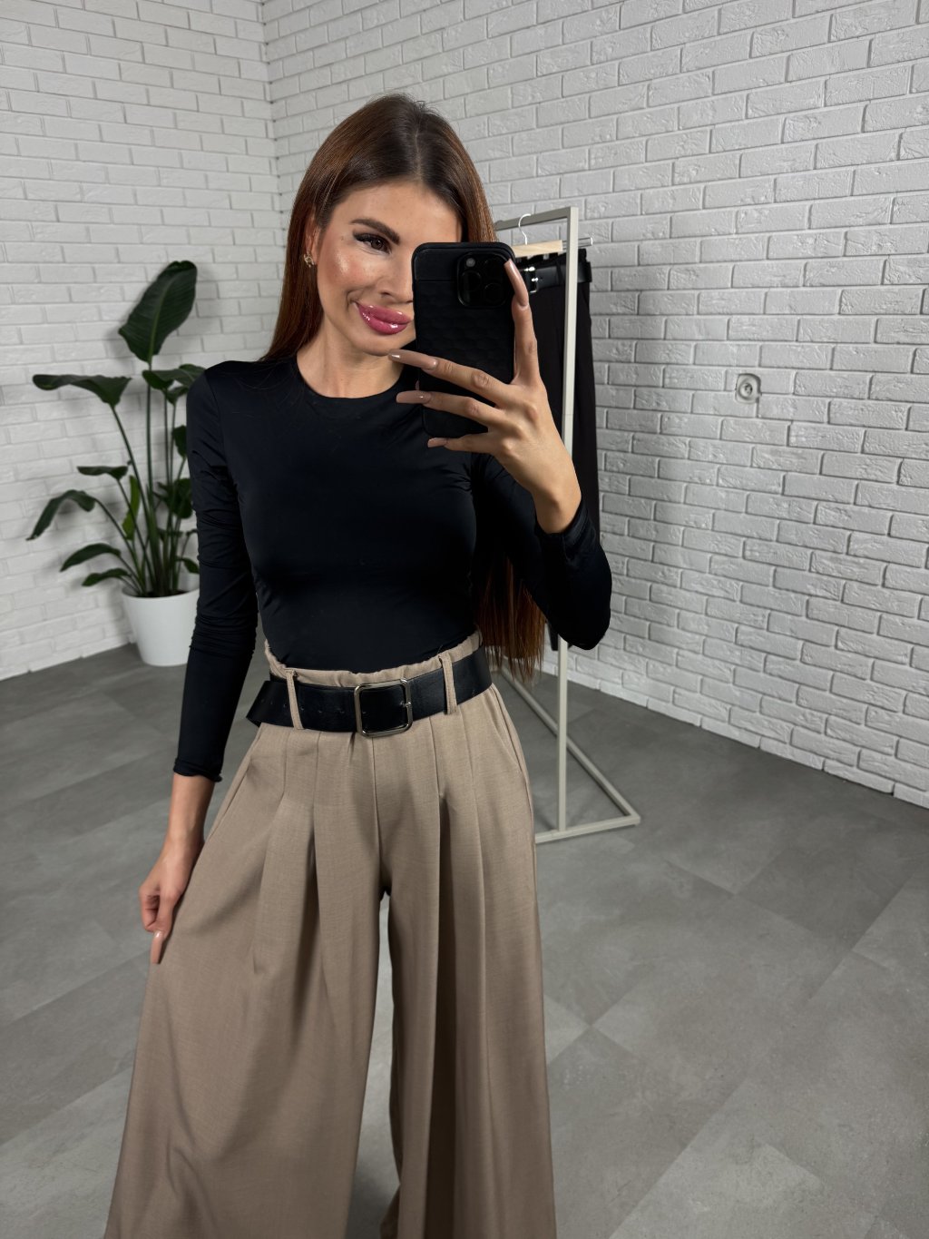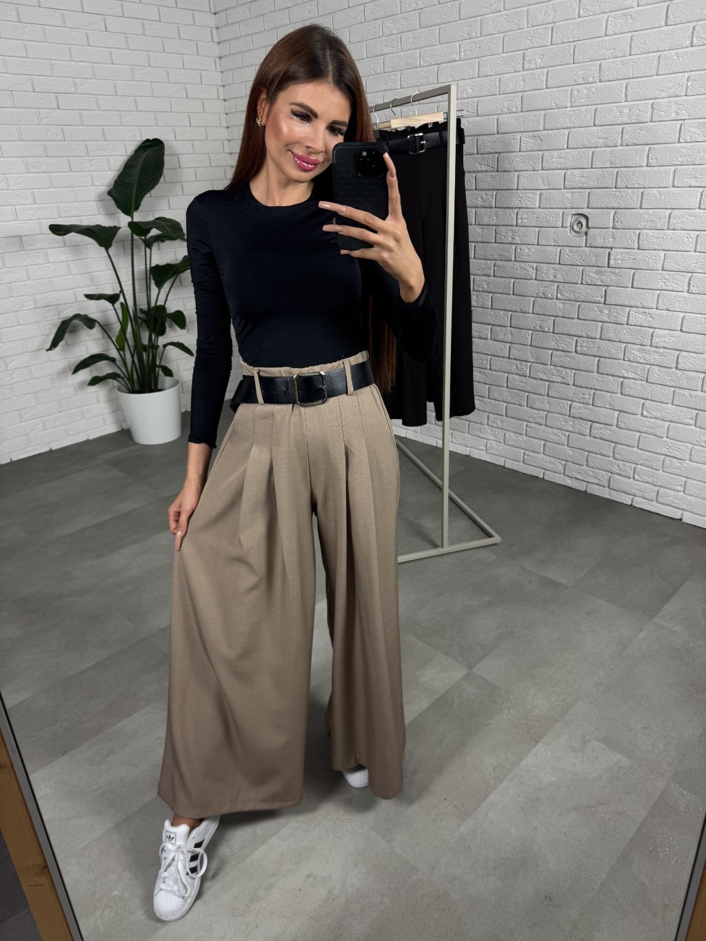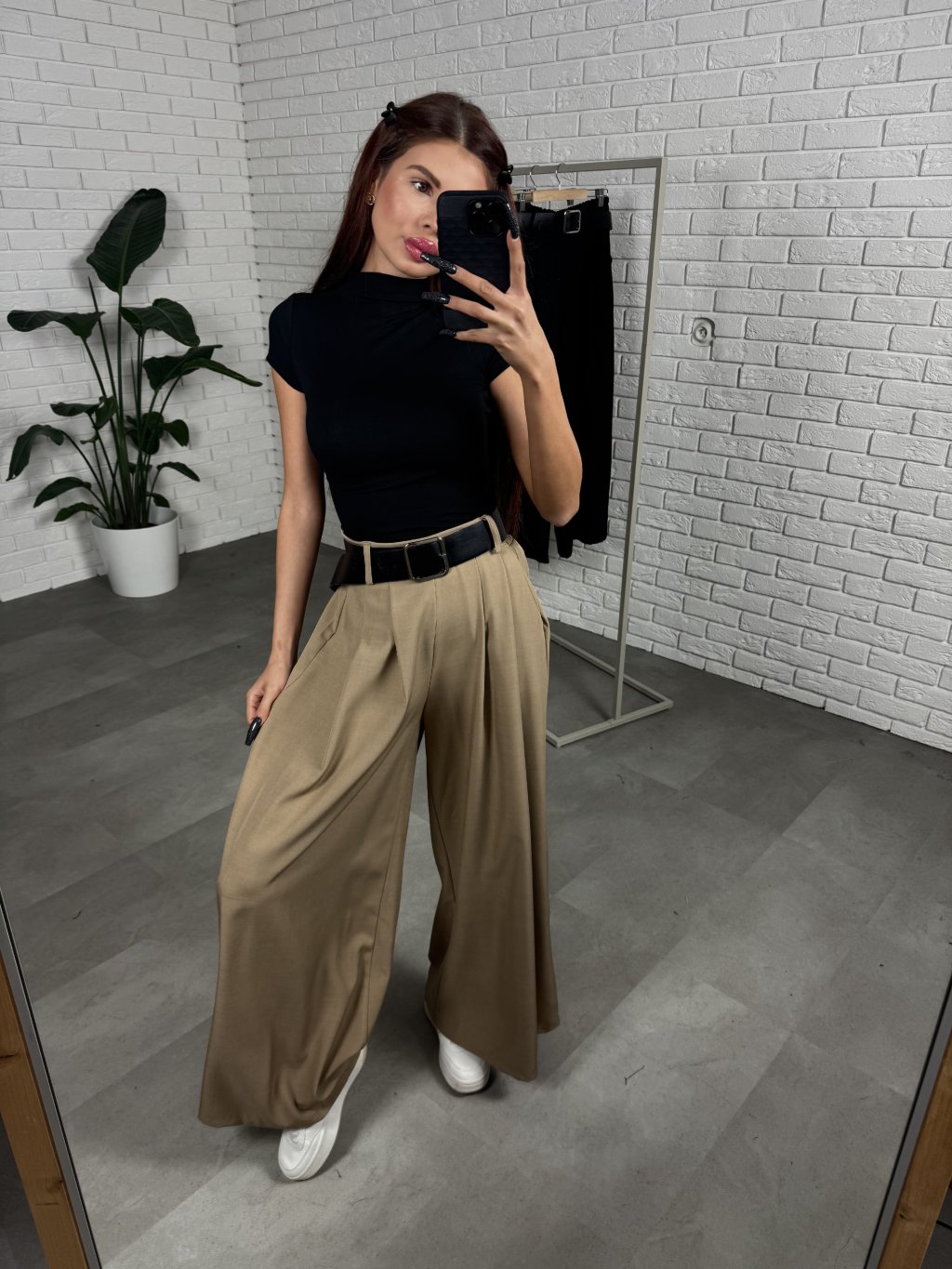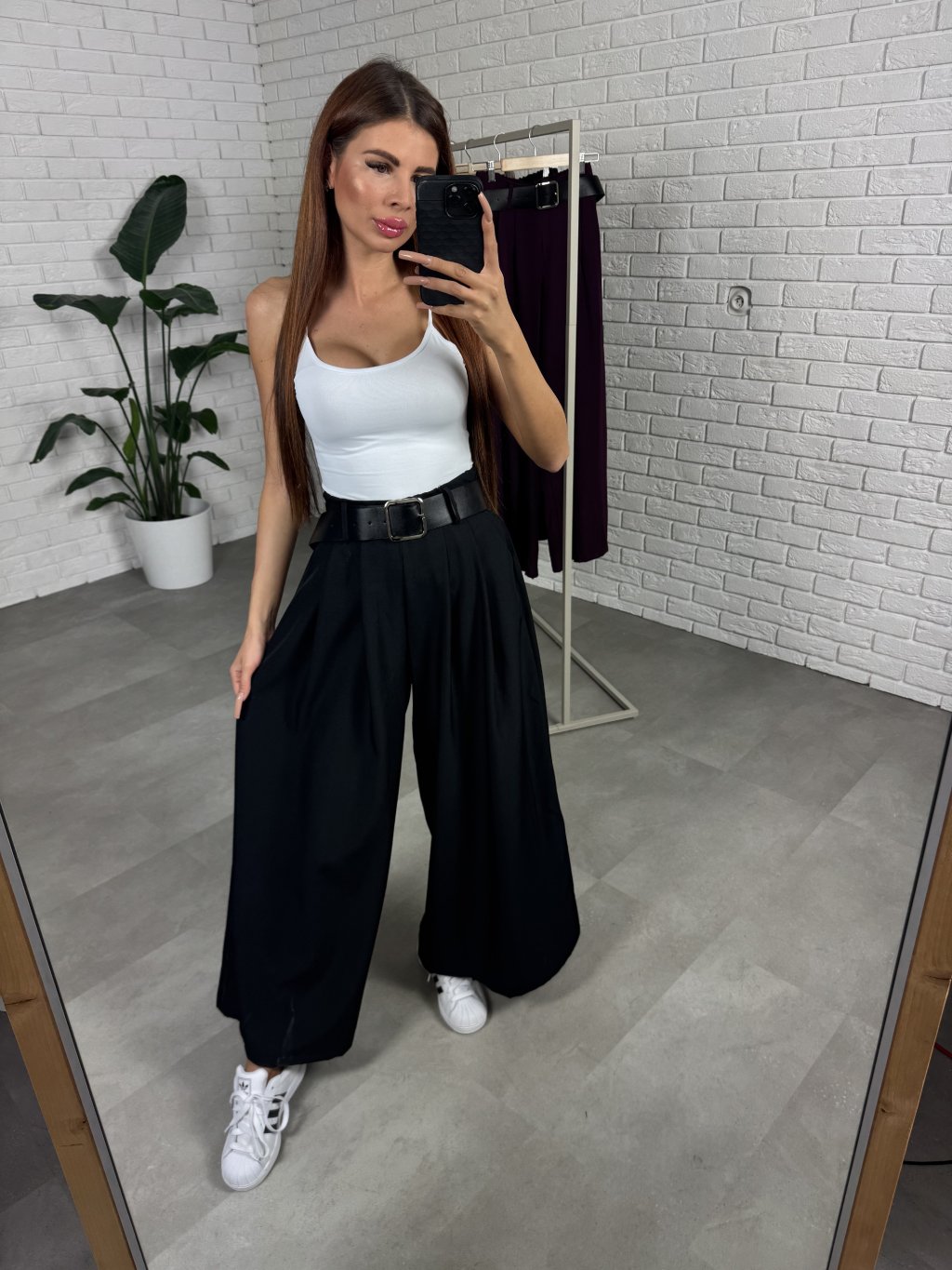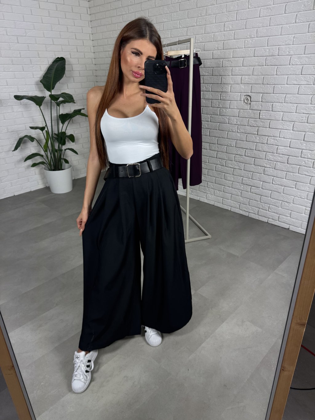 Nohavice ORIN ako univerzálny kúsok v športovo elegantnom prevedení , super nekrčivý materiál, rozšírený voľný ležérny strih , opasok súčasťou , vysoký pás , v páse elastická guma , vďaka ktorej sadnú dokonale na každý pás , tento model krásne sadne aj vyšším postavám, vyzerajú skvele k lodičkám , k teniskám , k akejkoľvek obuvi , od XS po L , od 160 po 170cm