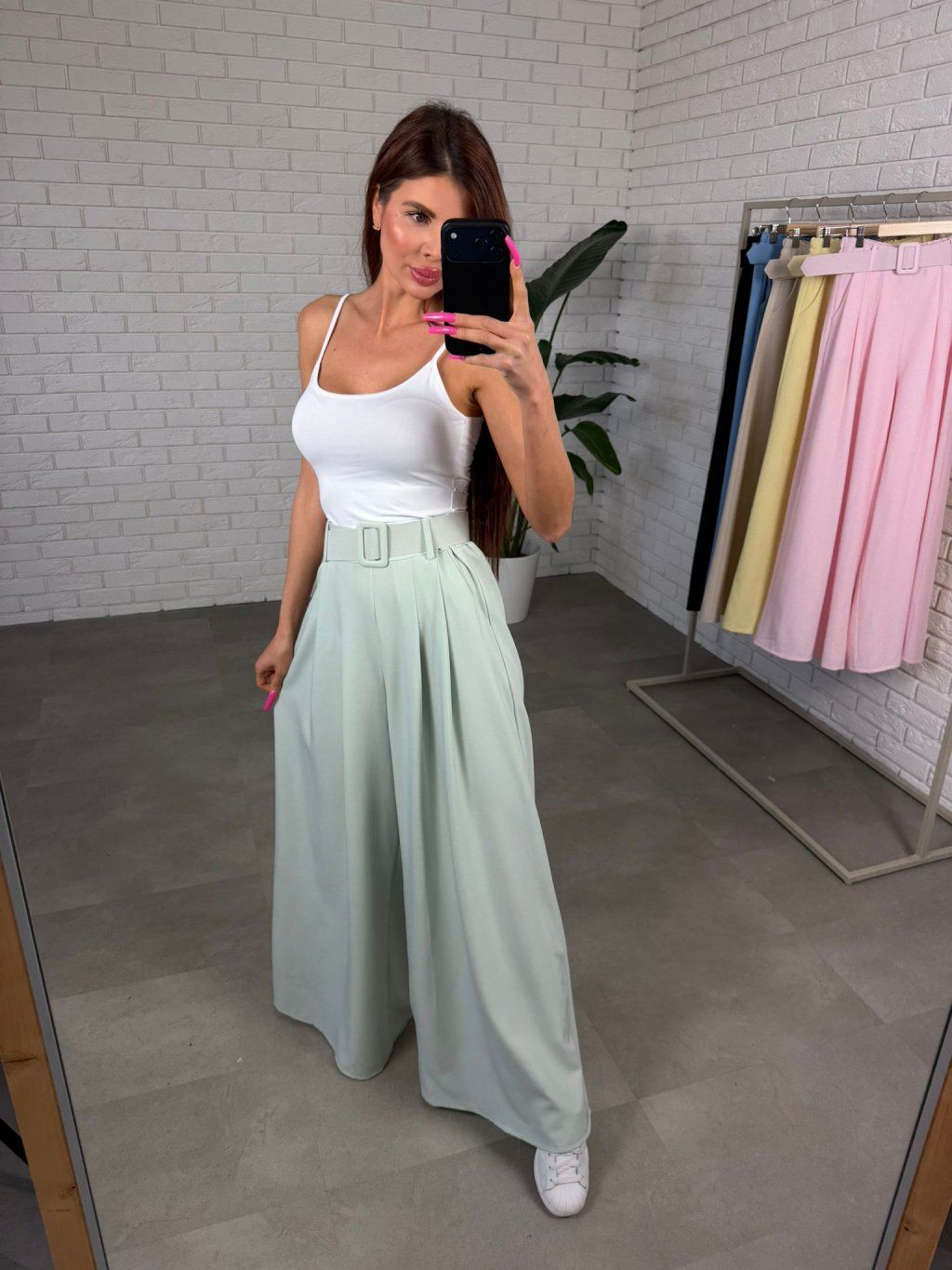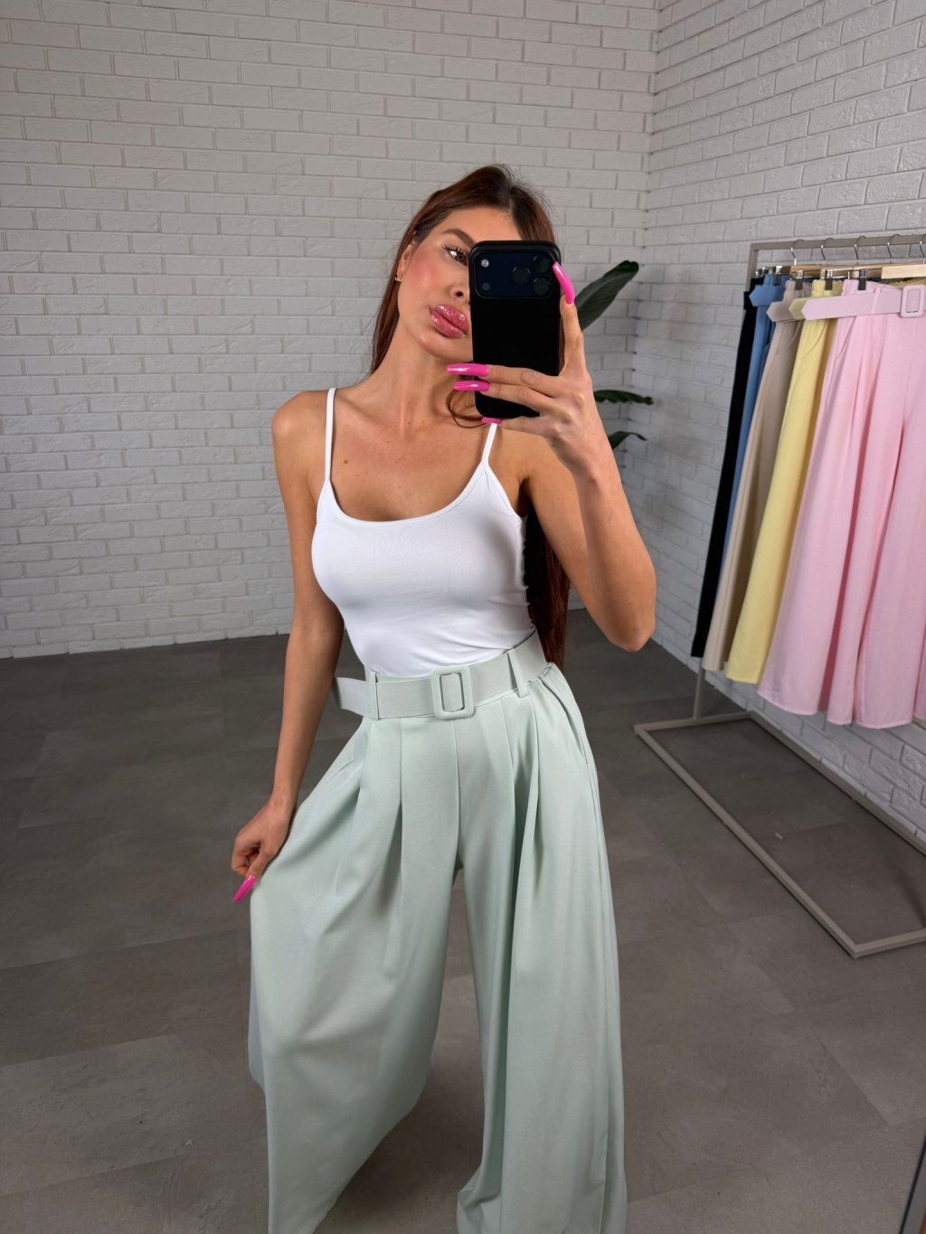 Vysoký pás spolu s opaskom v rovnakom materiáli a farbe vytvára peknú líniu v páse a umožňuje prispôsobiť nohavice presne podľa postavy. Po bokoch sa nachádzajú praktické vrecká, ktoré oceníš pri bežnom nosení.