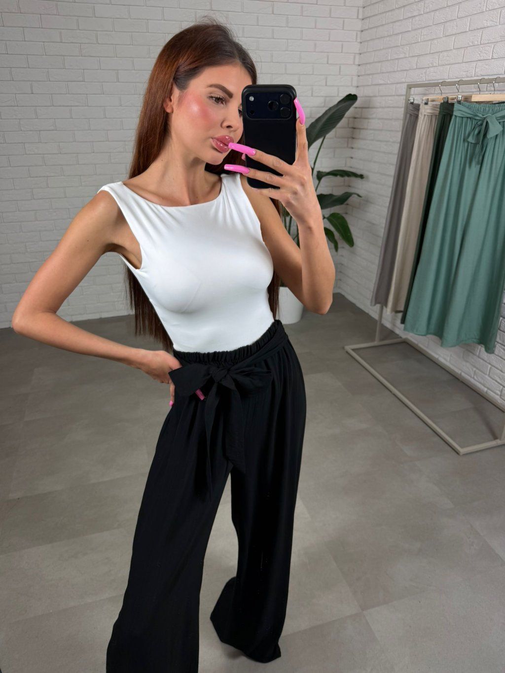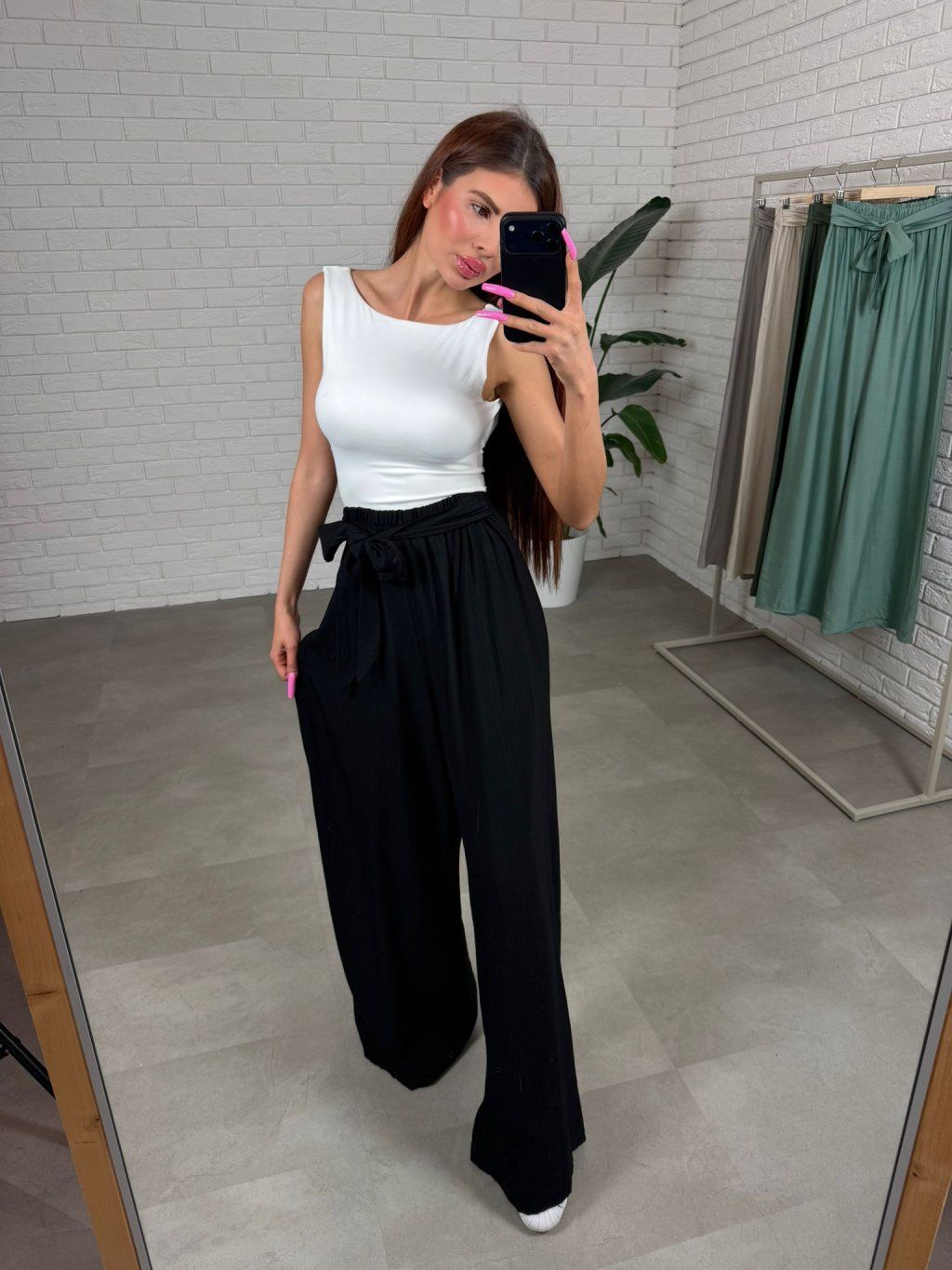 Vysoký elastický pás sa pohodlne prispôsobí každému brušku, vrátane tehotenského, a zabezpečí komfort počas celého dňa. V páse sa nachádza štýlová mašľa na zaviazanie, ktorá dodáva nohaviciam ženský detail a umožní ti jemne zvýrazniť siluetu. Materiál je ľahký, prírodný a vzdušný, ideálny na jar a leto, takže sa v nich budeš cítiť príjemne aj počas teplejších dní. Nohavice LILIANA veľkostne sadnú od S po L.