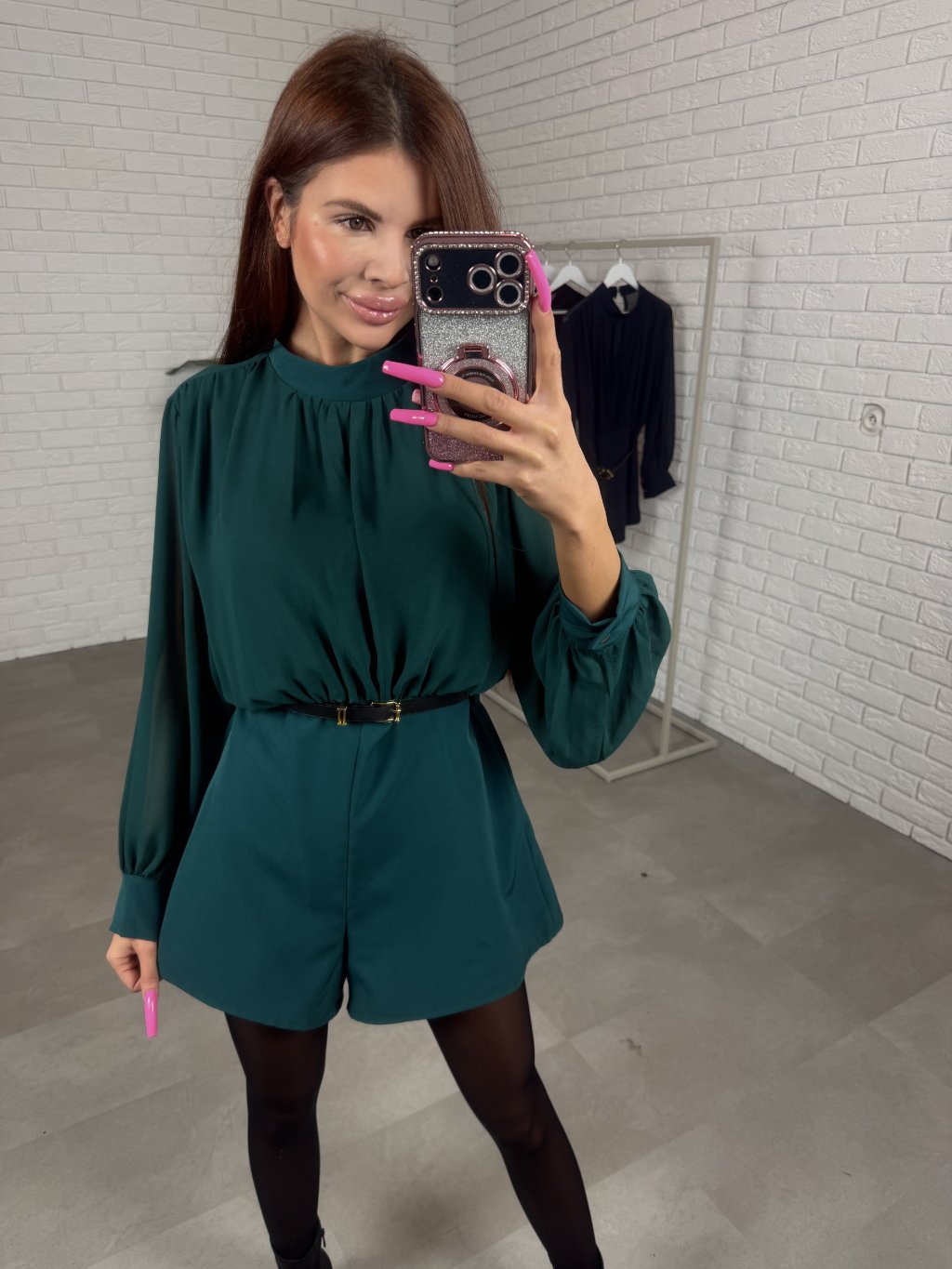 Overal BENATA je vhodný pre všetky dievčatá, ktoré milujú eleganciu. Sadne až po výšku 175cm, konfekčné veľkosti od XS po M alebo menšie L. Overal má dvojdielny efekt. Skladá sa zo šifónového vrchu, ktorý je podšitý až dva-krát, aby nikde nepresvital. Rukávy aj kraťasky sú voľnejšie, aby pôsobili ležérne na každej postave. Opasok je súčasťou overalu. (modelka má 170cm.)